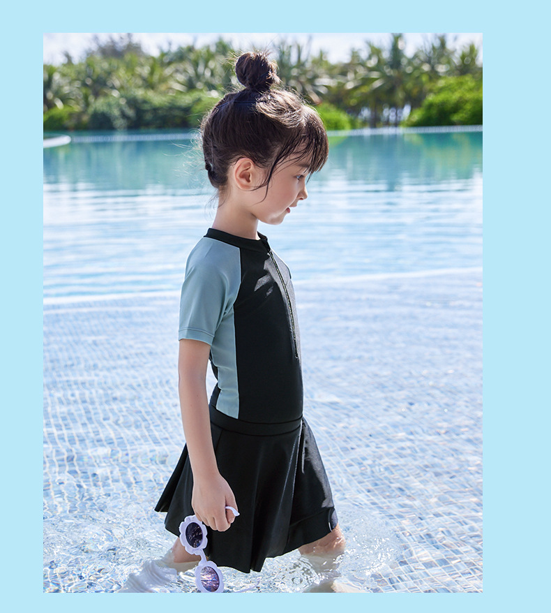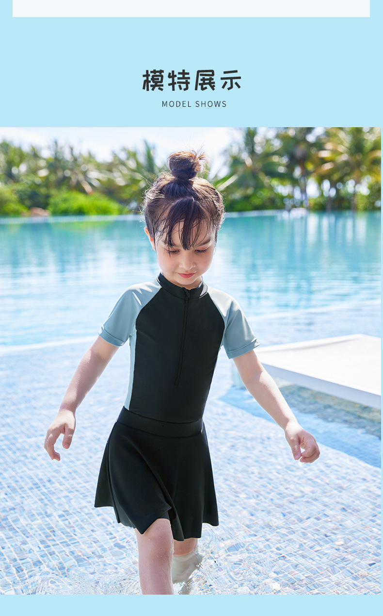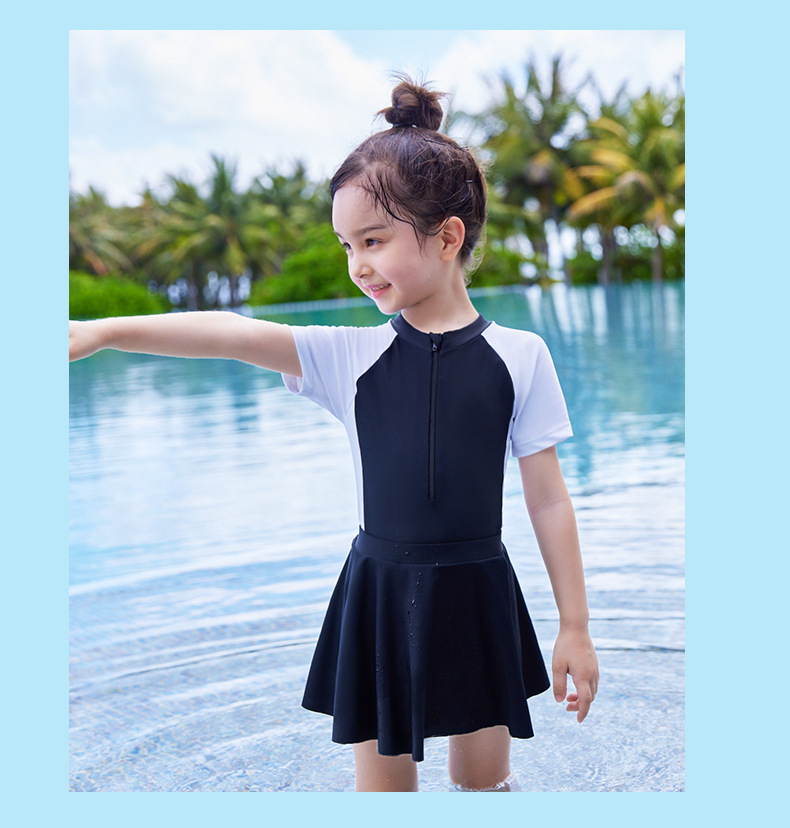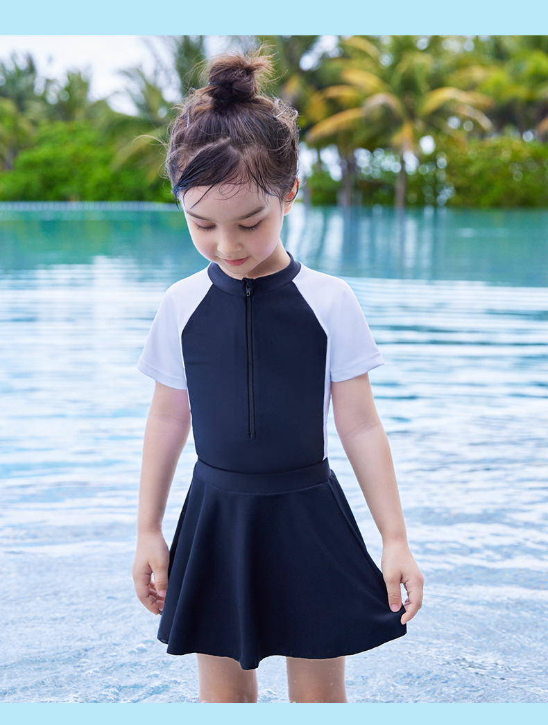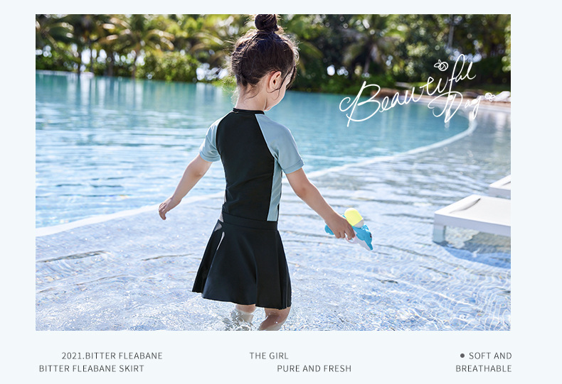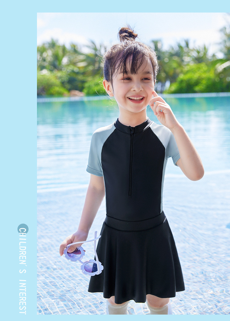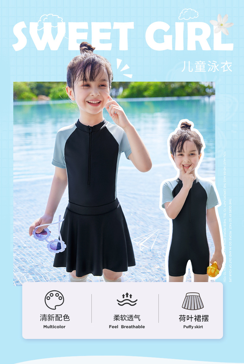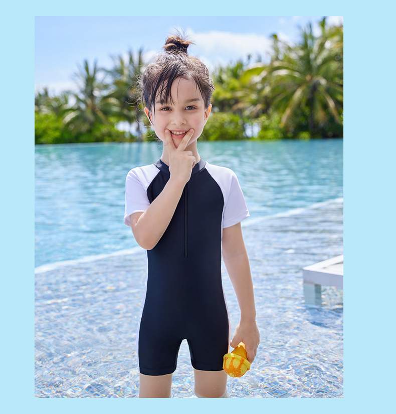 어린이 수영복 2023 여름 패션 새로운 소형, 중형 및 대형 어린이 소녀의 아기 소녀의 색상 일치 원피스 온천 수영복