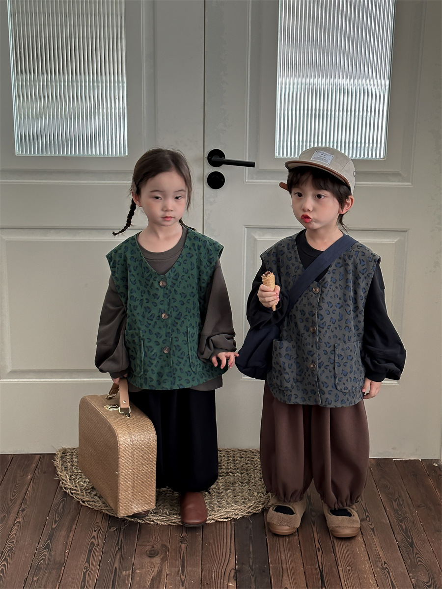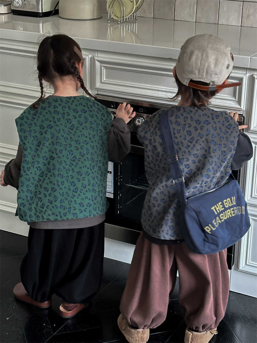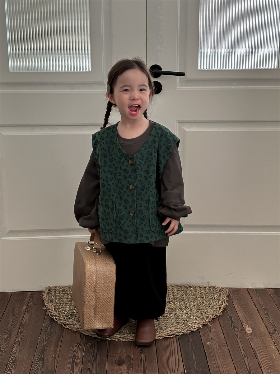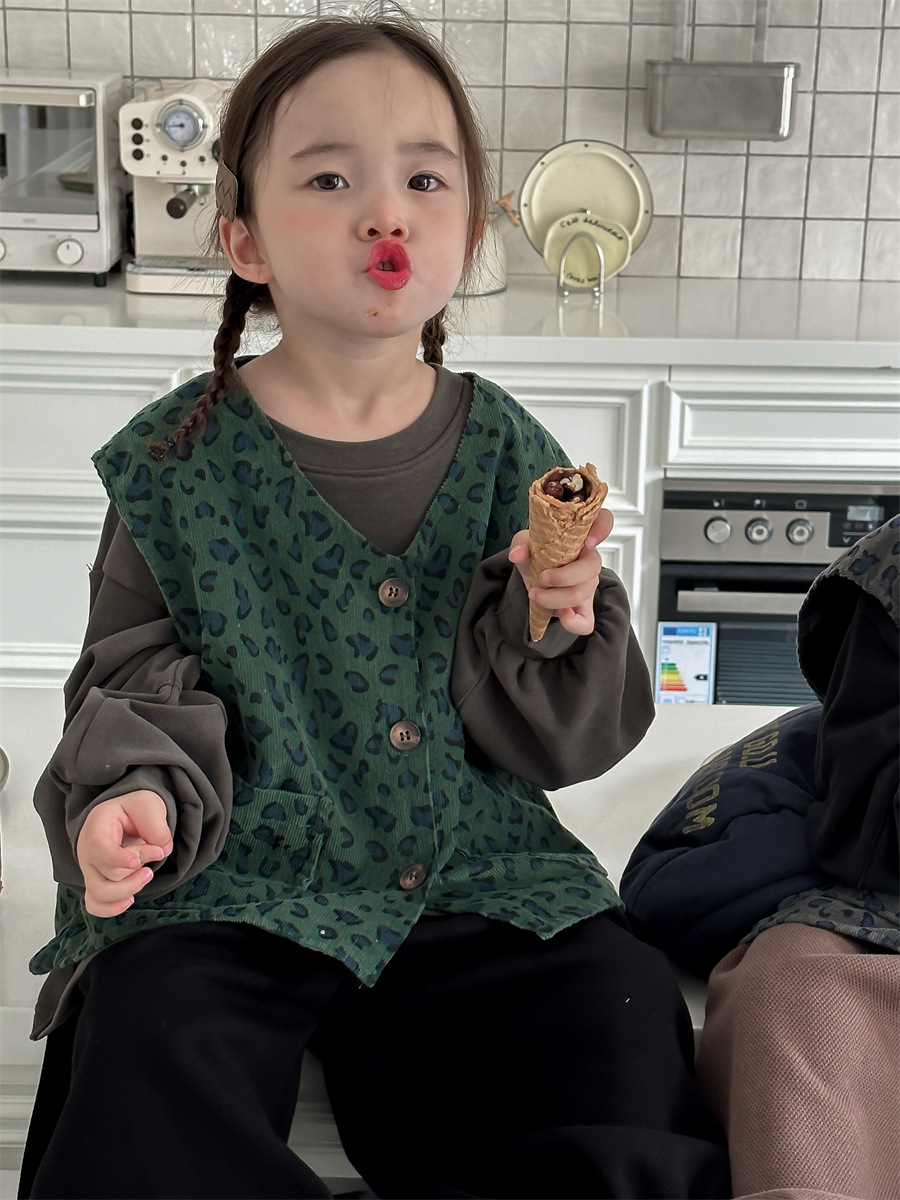 JiaYe 어린이 제품 2025 어린이 가을 레이온 레오파드 무늬 조끼 남녀 아기용 숲 스타일 루즈핏 코트 조끼