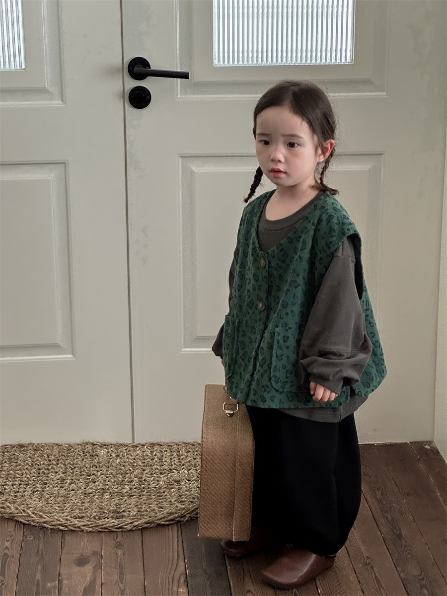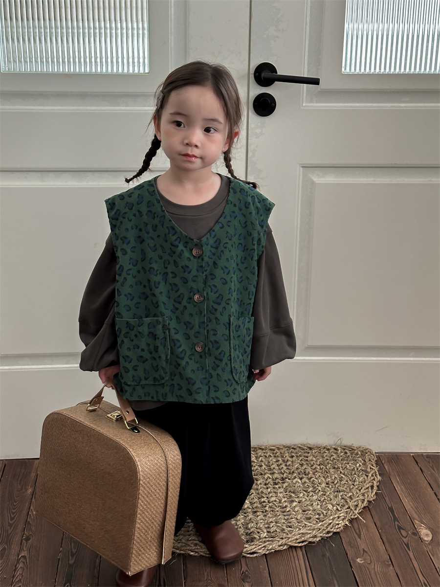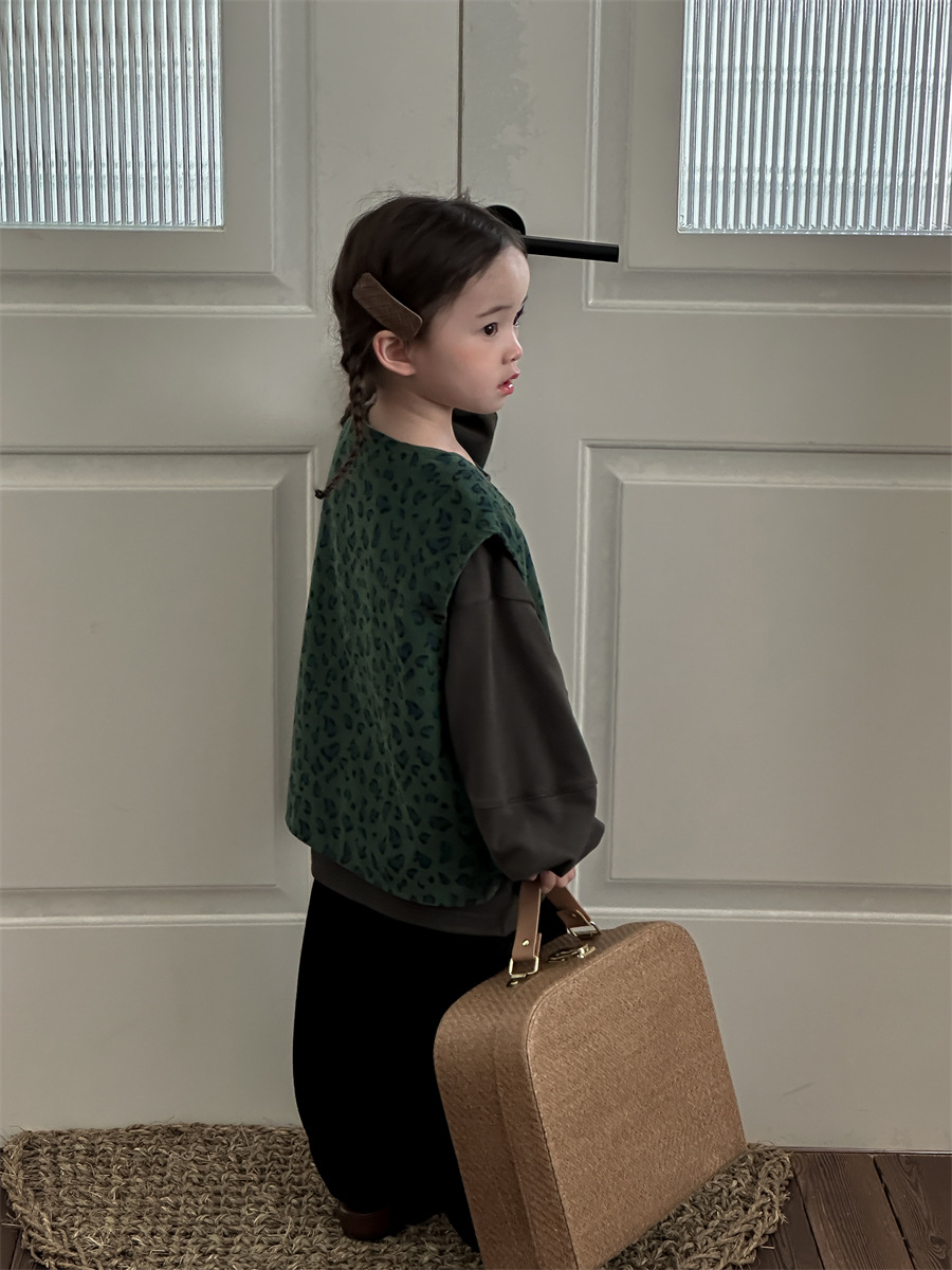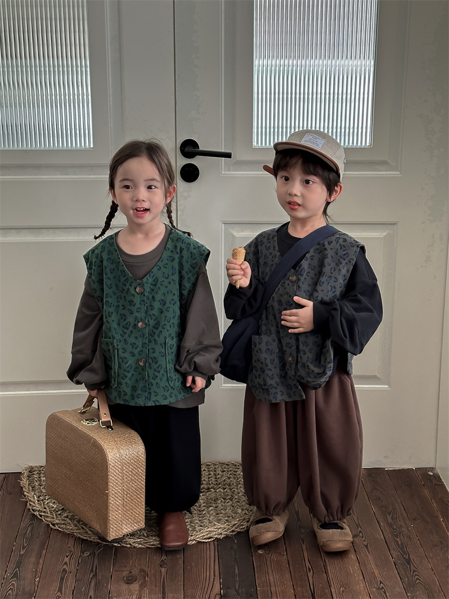 JiaYe 어린이 제품 2025 어린이 가을 레이온 레오파드 무늬 조끼 남녀 아기용 숲 스타일 루즈핏 코트 조끼