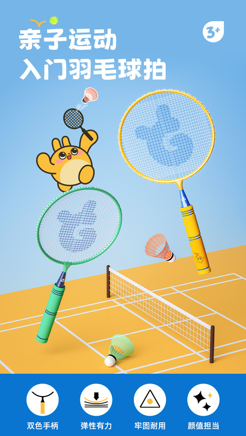 어린이 배드민턴 라켓 초경량 세트 더블 비트 엔트리 타입 부모-자식 인터랙티브 야외 스포츠 장난감 5-12 세스토어 가기