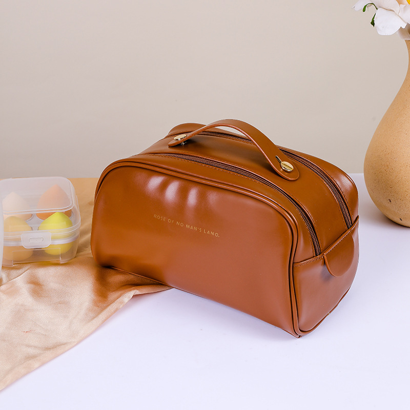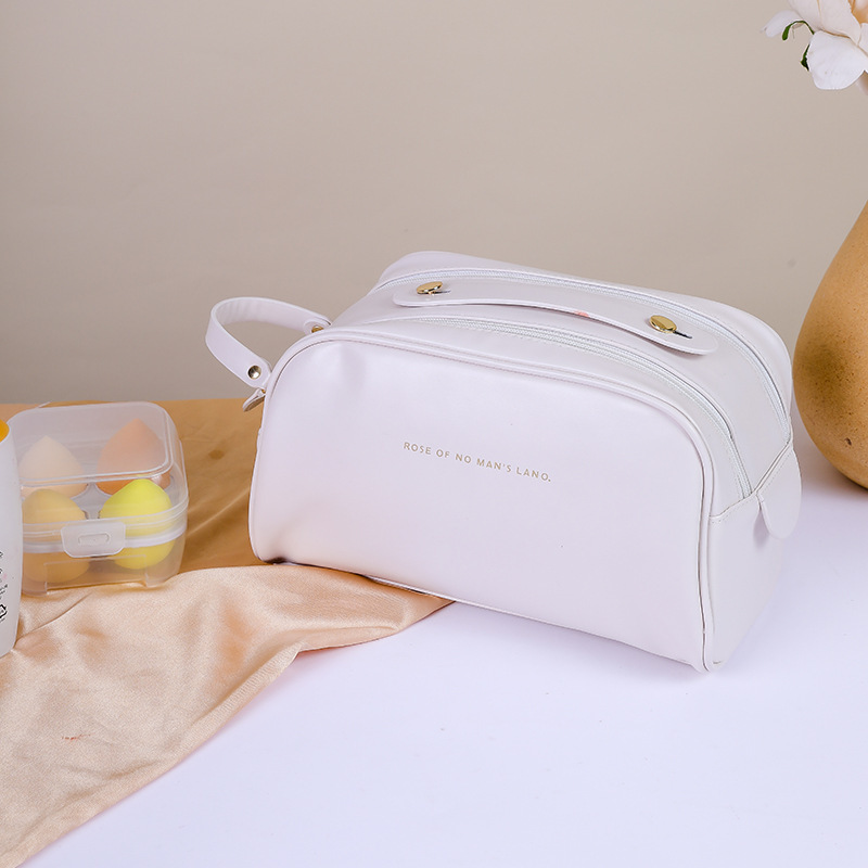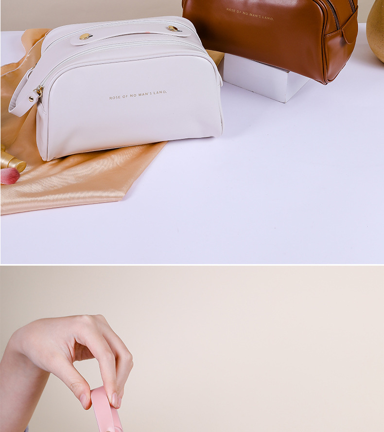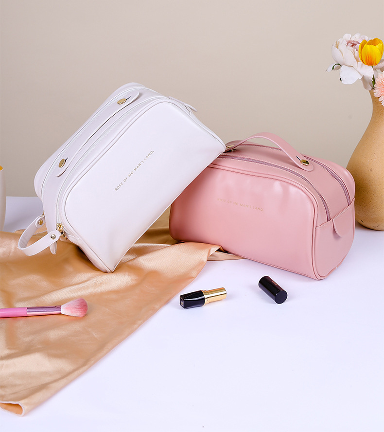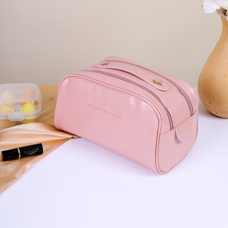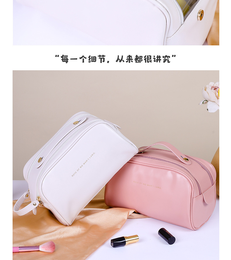 더블 휴대용 화장품 가방 높은 아름다움 가치 휴대용 PU 대용량 더블 지퍼 여행 화장품 세척 보관 가방