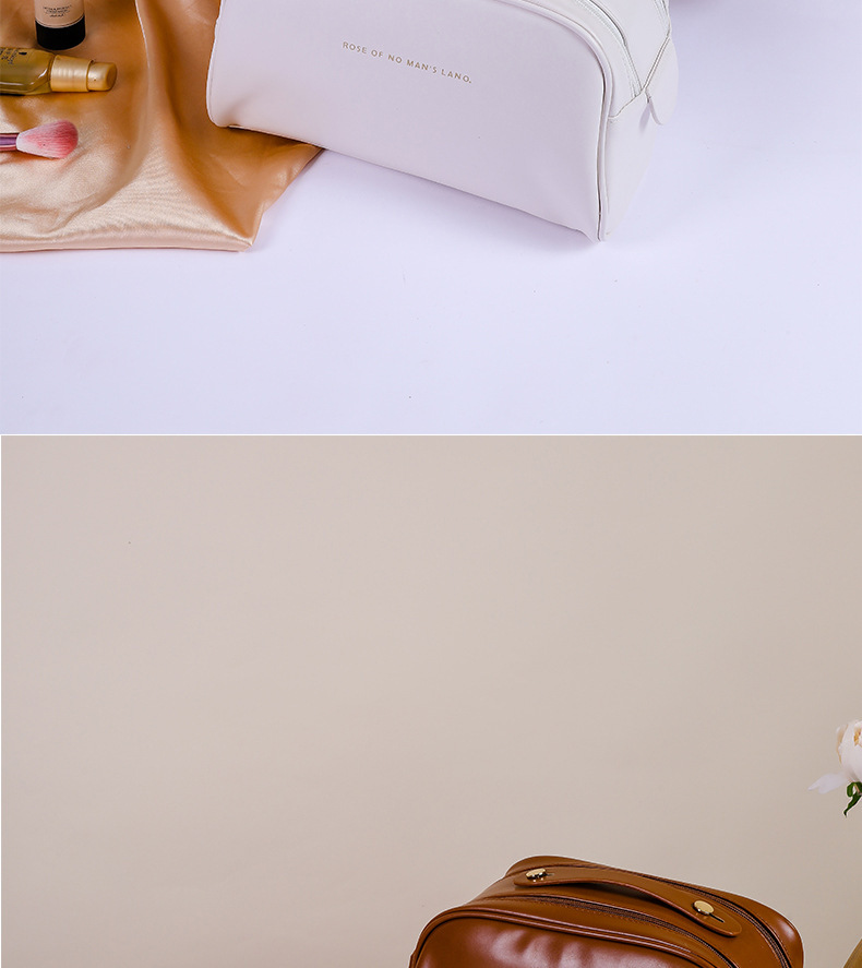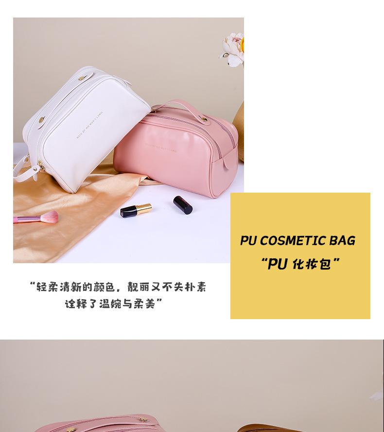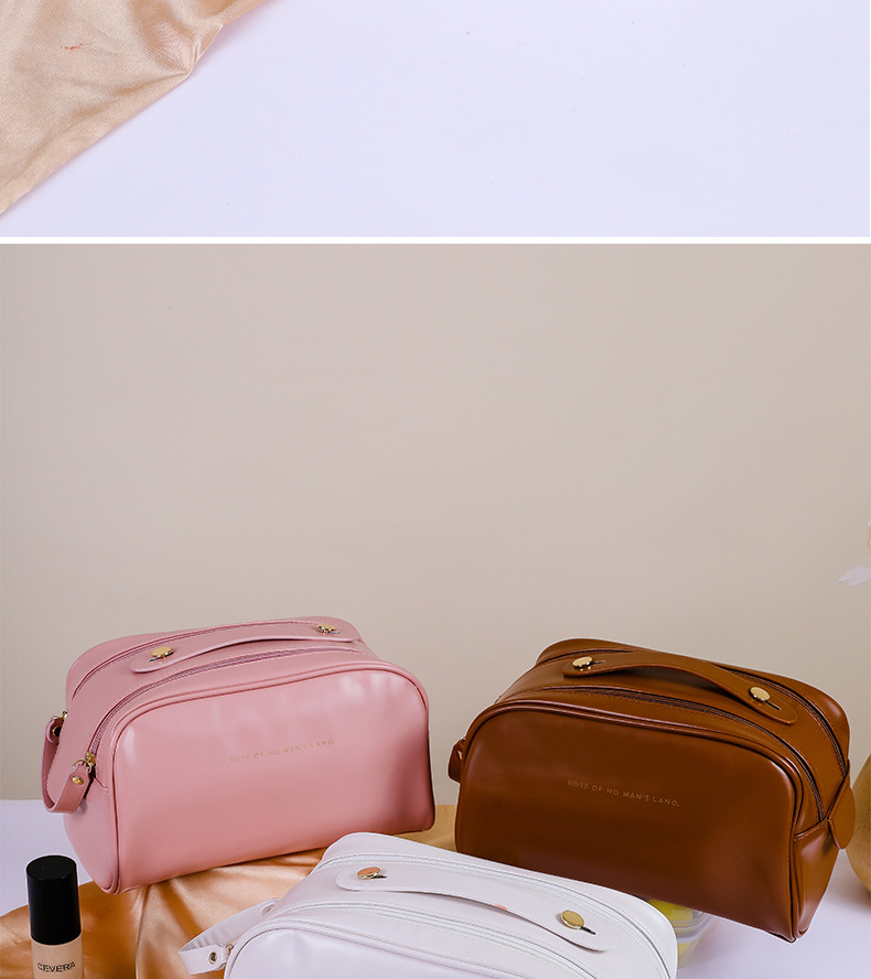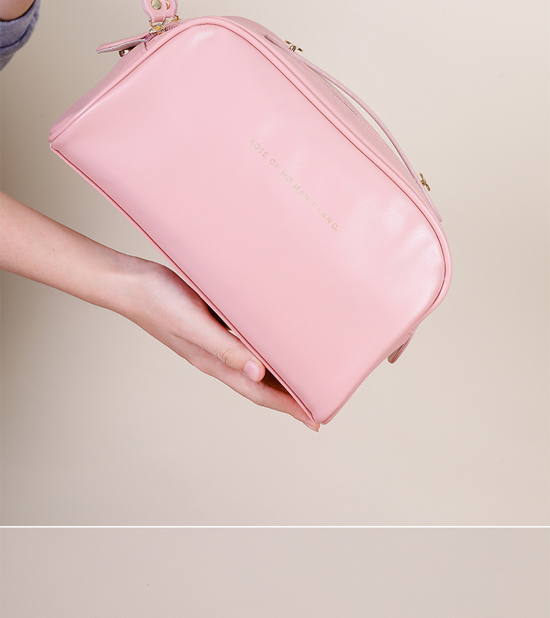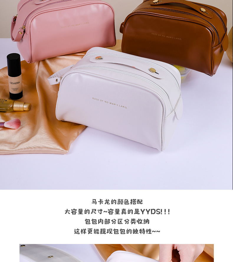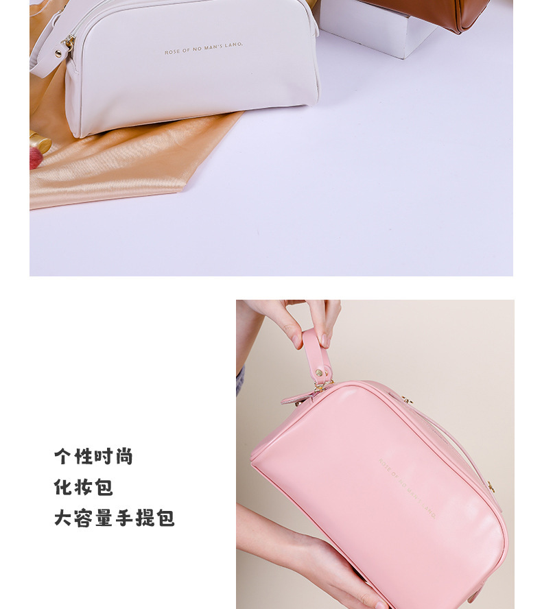 더블 휴대용 화장품 가방 높은 아름다움 가치 휴대용 PU 대용량 더블 지퍼 여행 화장품 세척 보관 가방