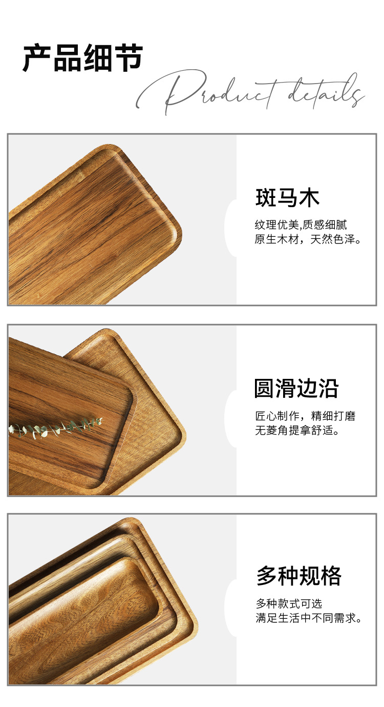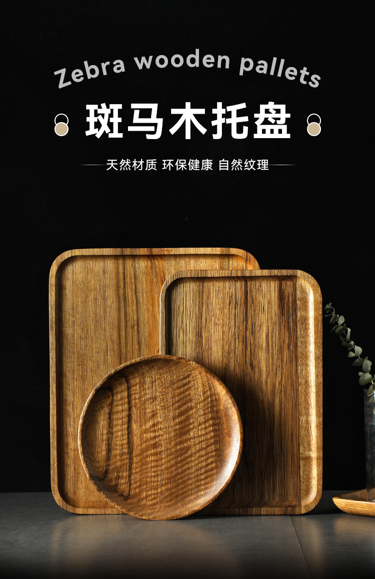 가정용 얼룩말 나무 단단한 직사각형 트레이 나무 컵 홀더 물 컵 차 컵 트레이 보관 트레이 저녁 식사 트레이 레터링