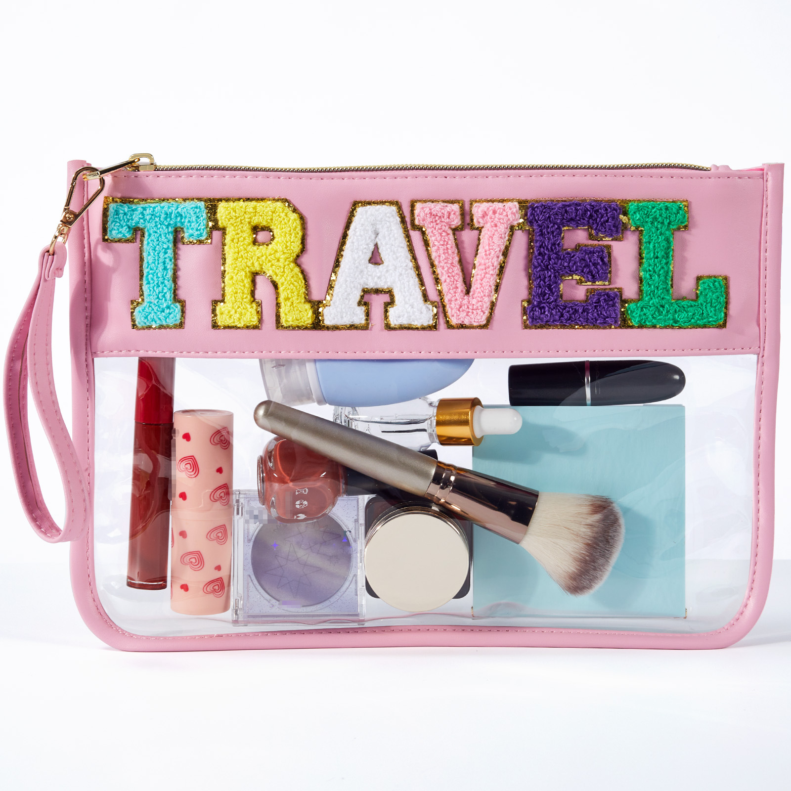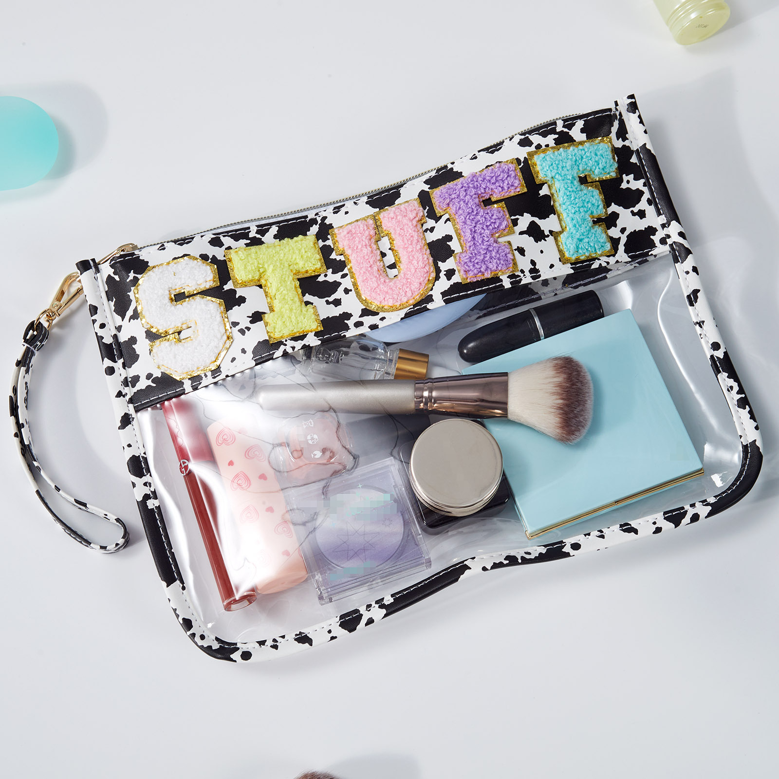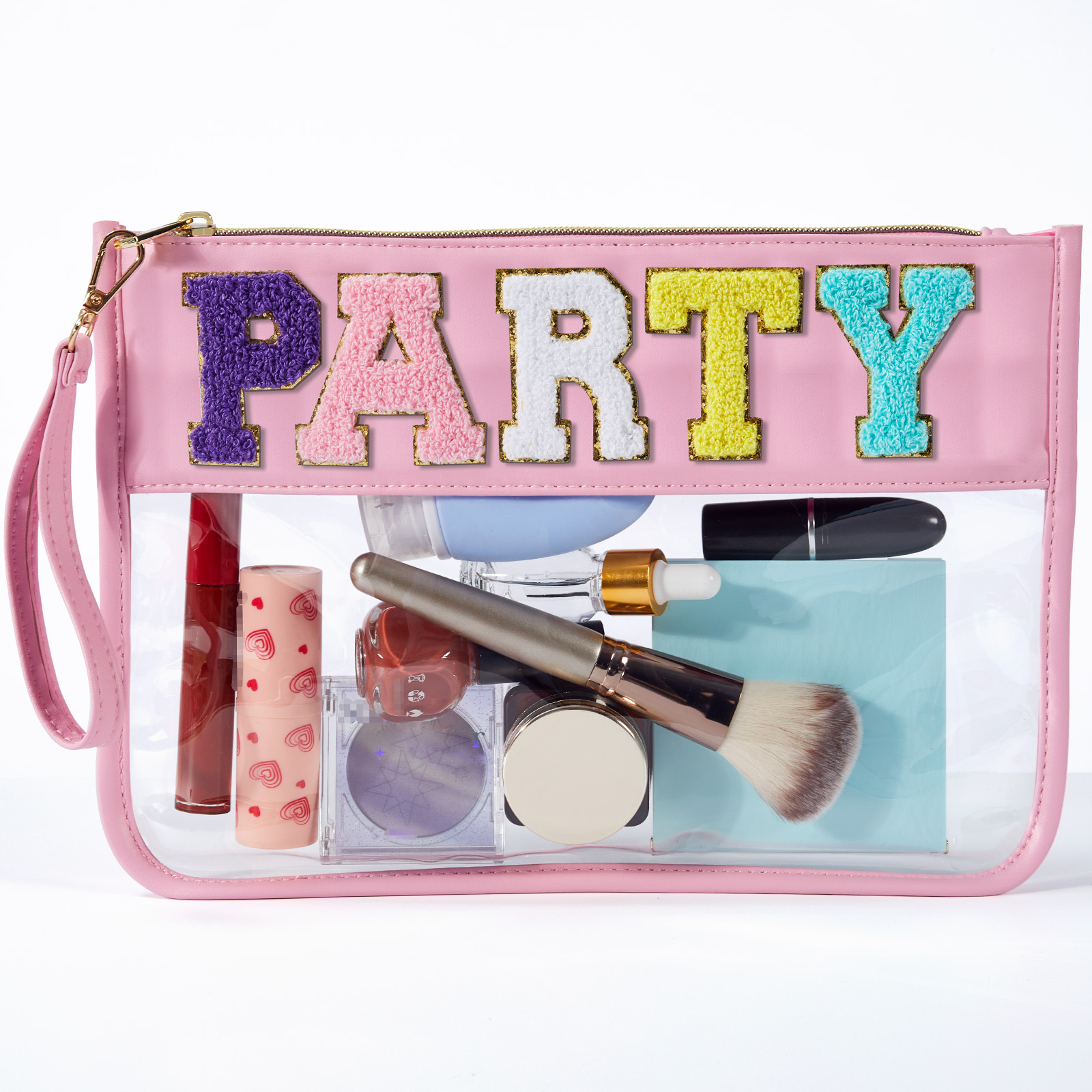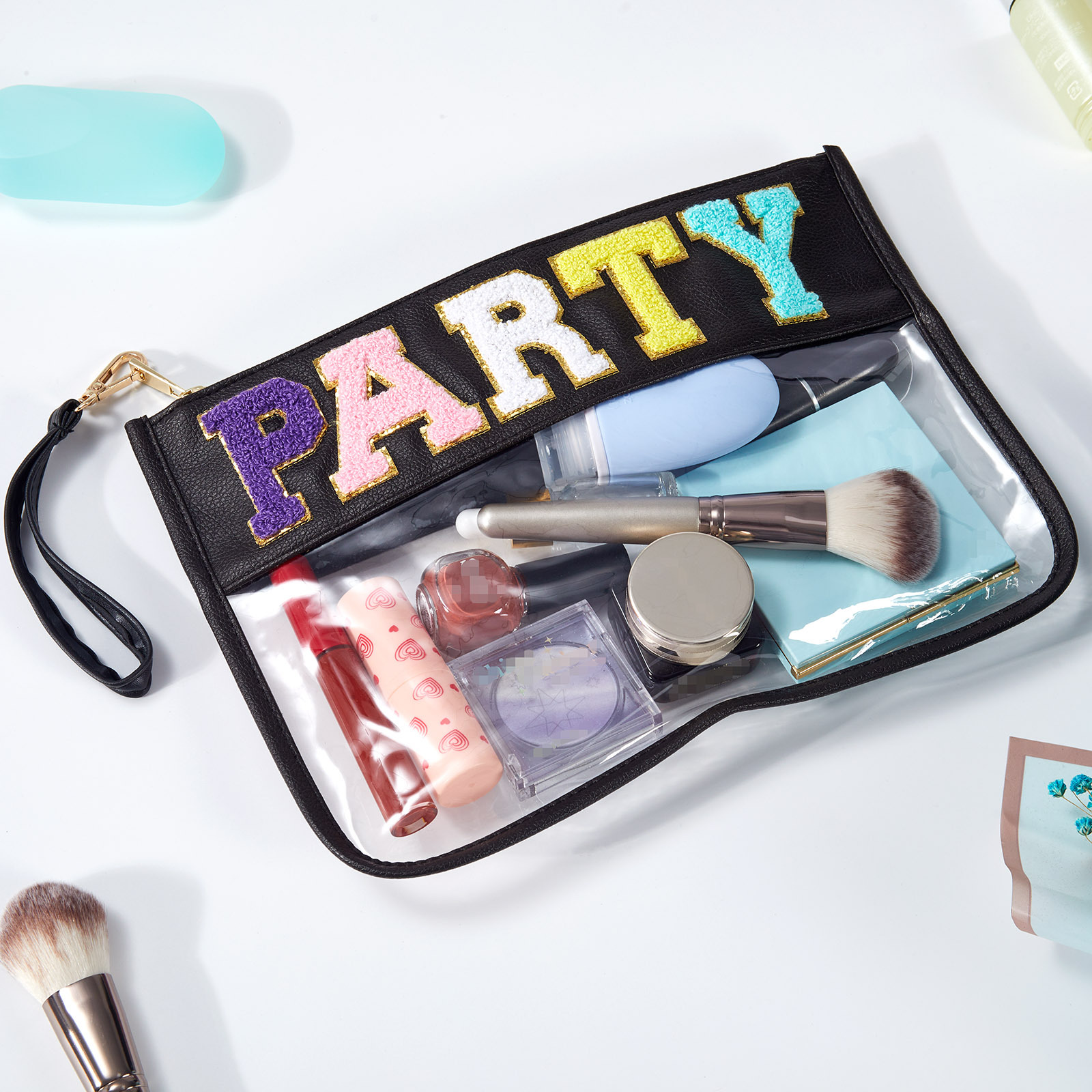 아마존 타월 자수 알파벳 스티커 화장품 가방 체육관 화장품 가방 투명 야외 여행 투명 보관 가방