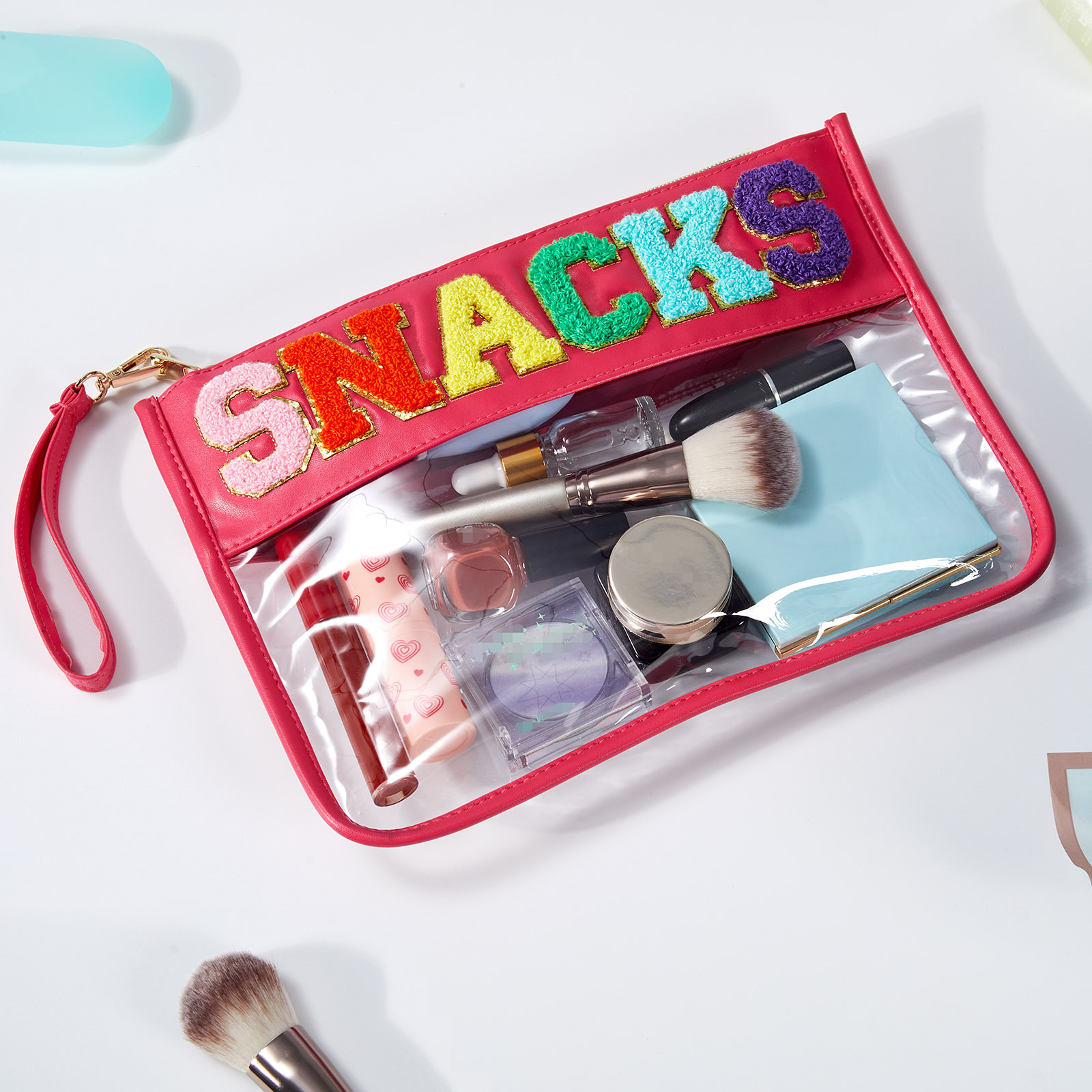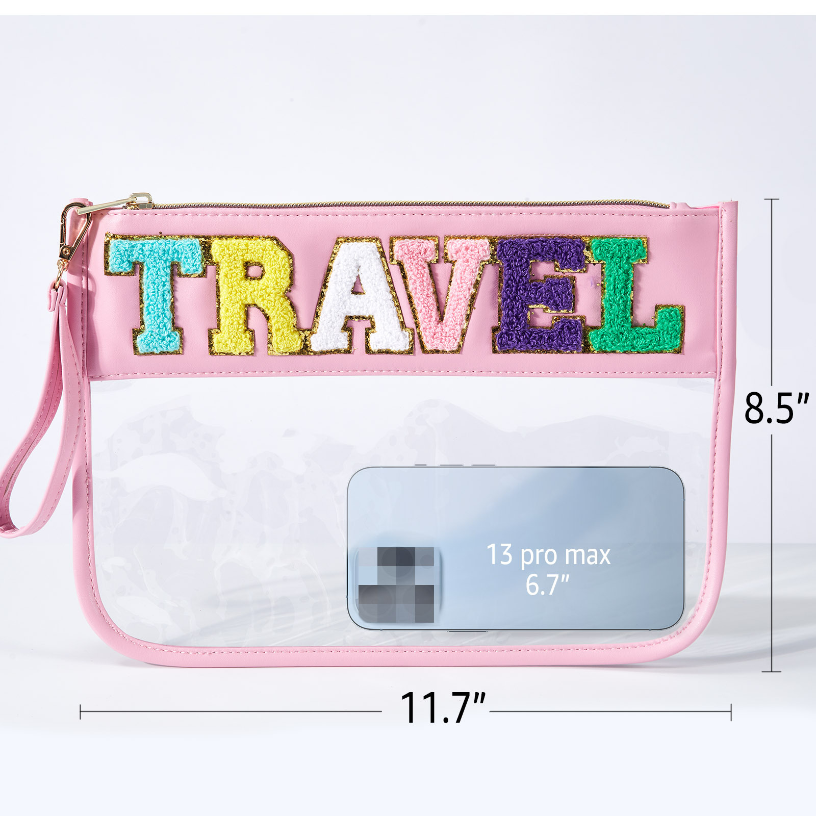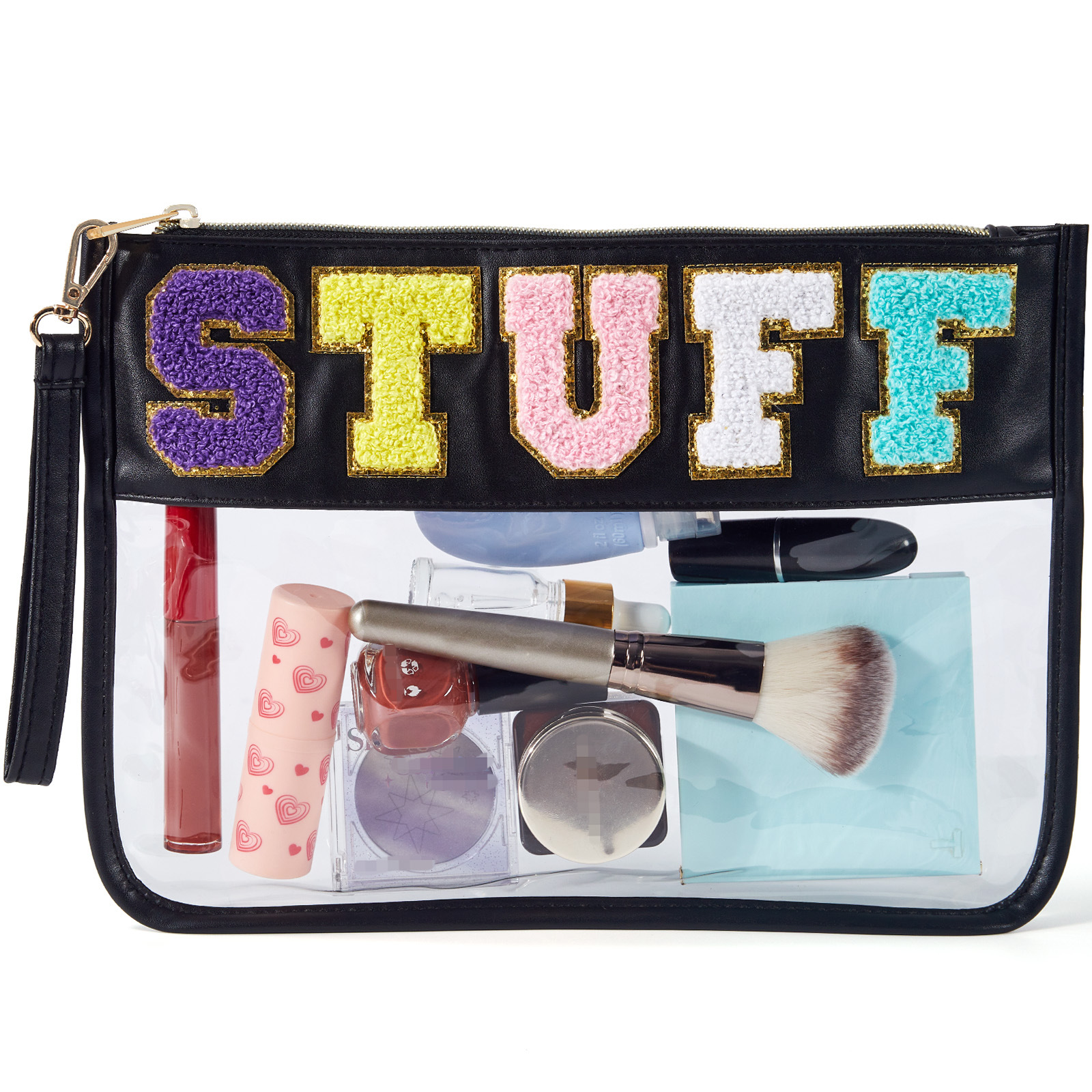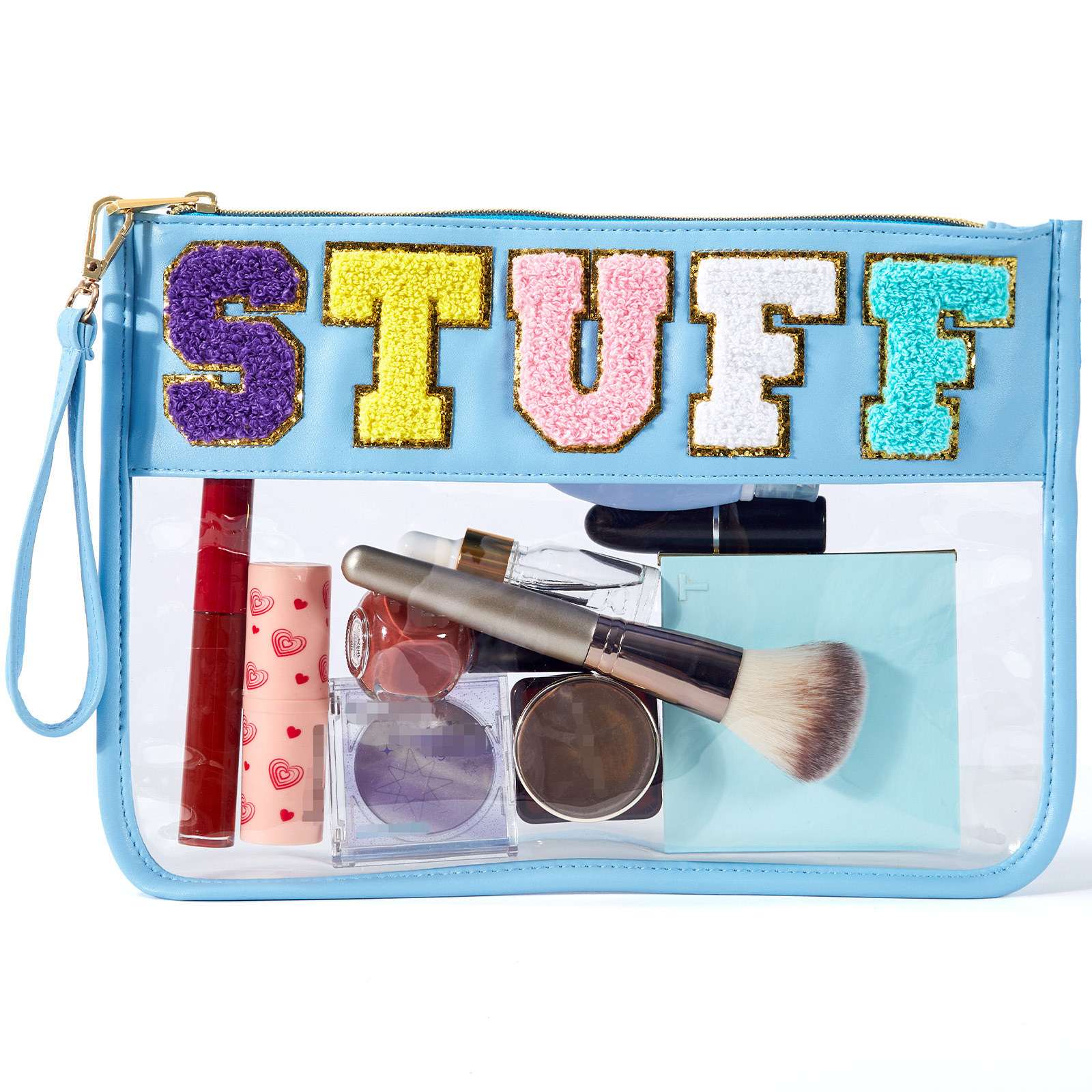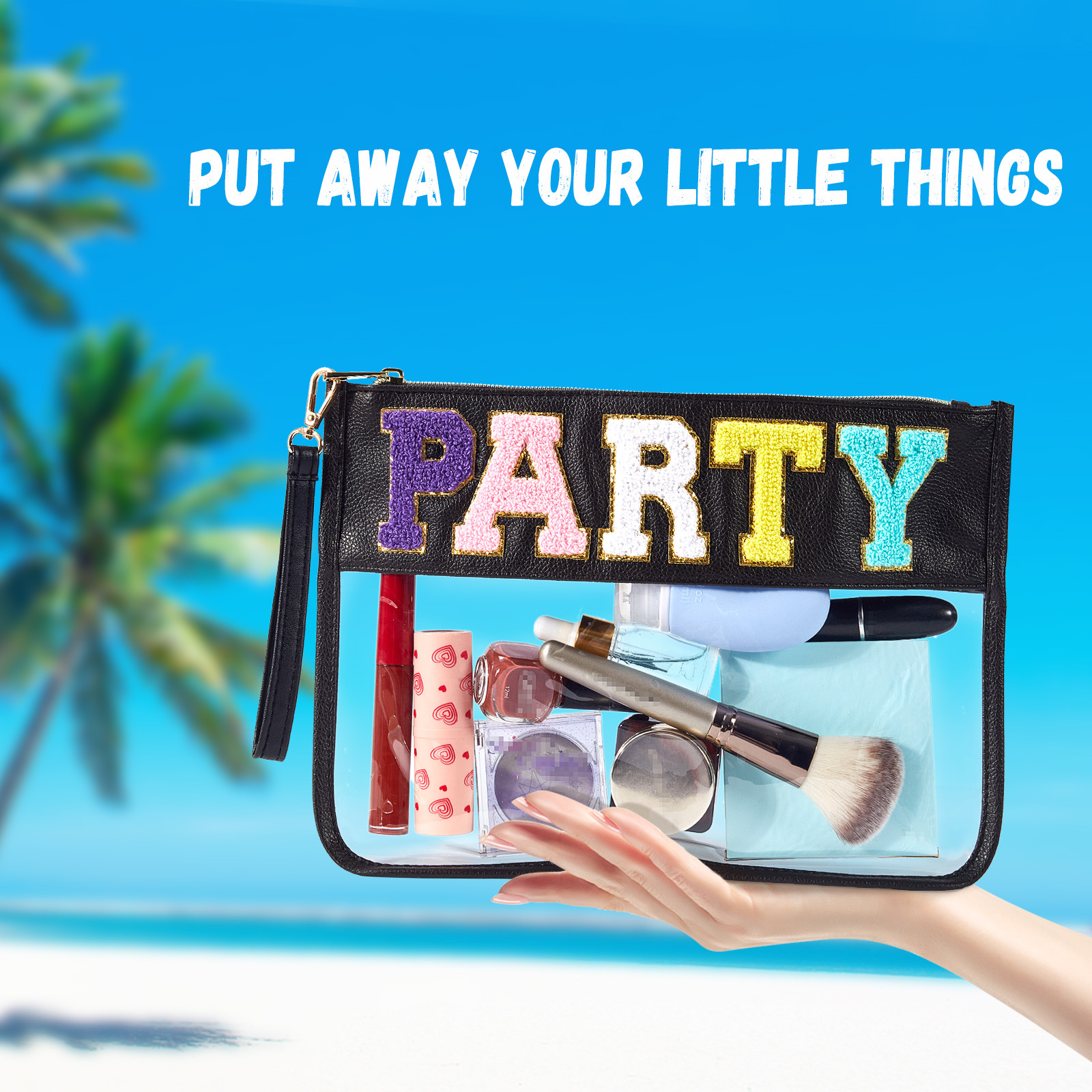 아마존 타월 자수 알파벳 스티커 화장품 가방 체육관 화장품 가방 투명 야외 여행 투명 보관 가방