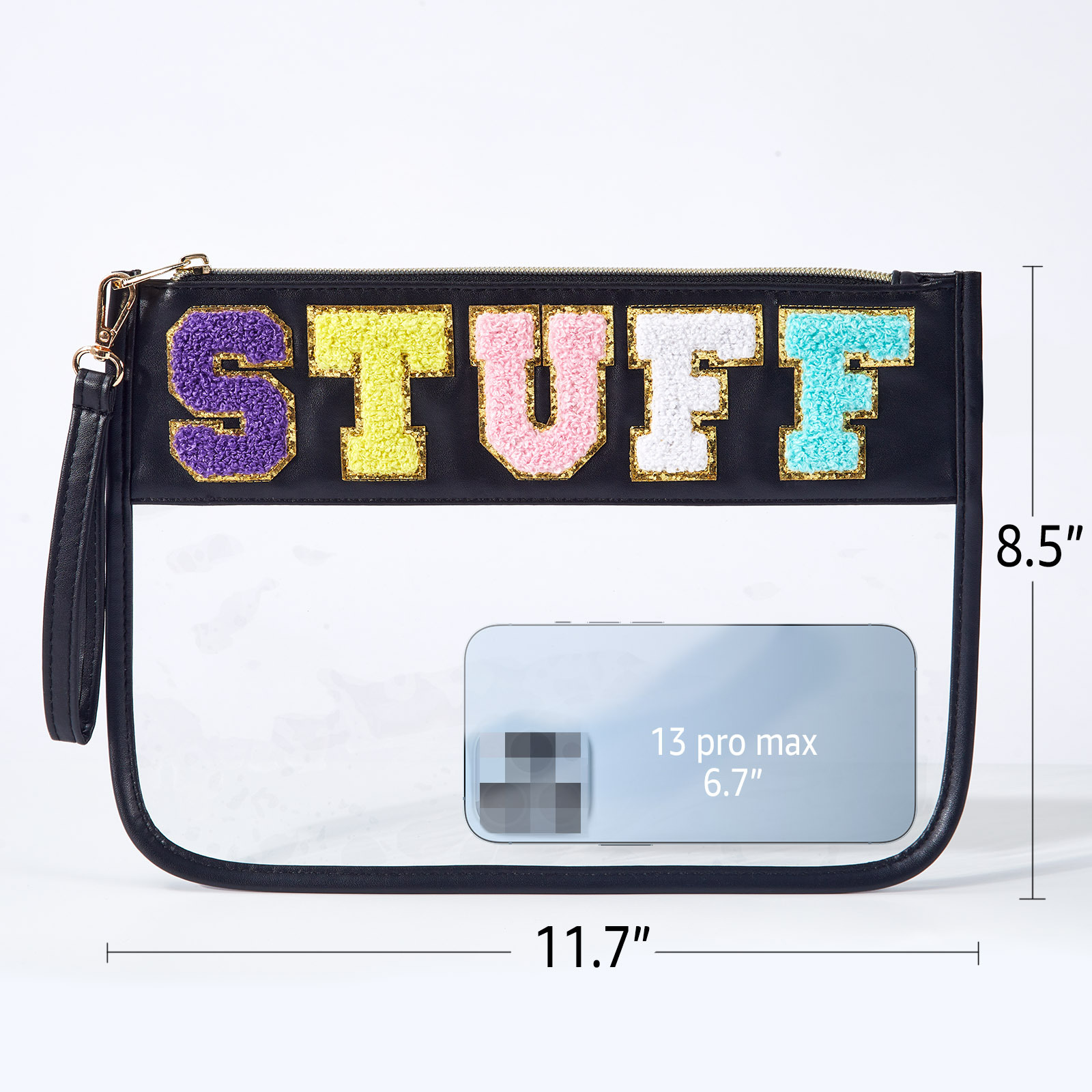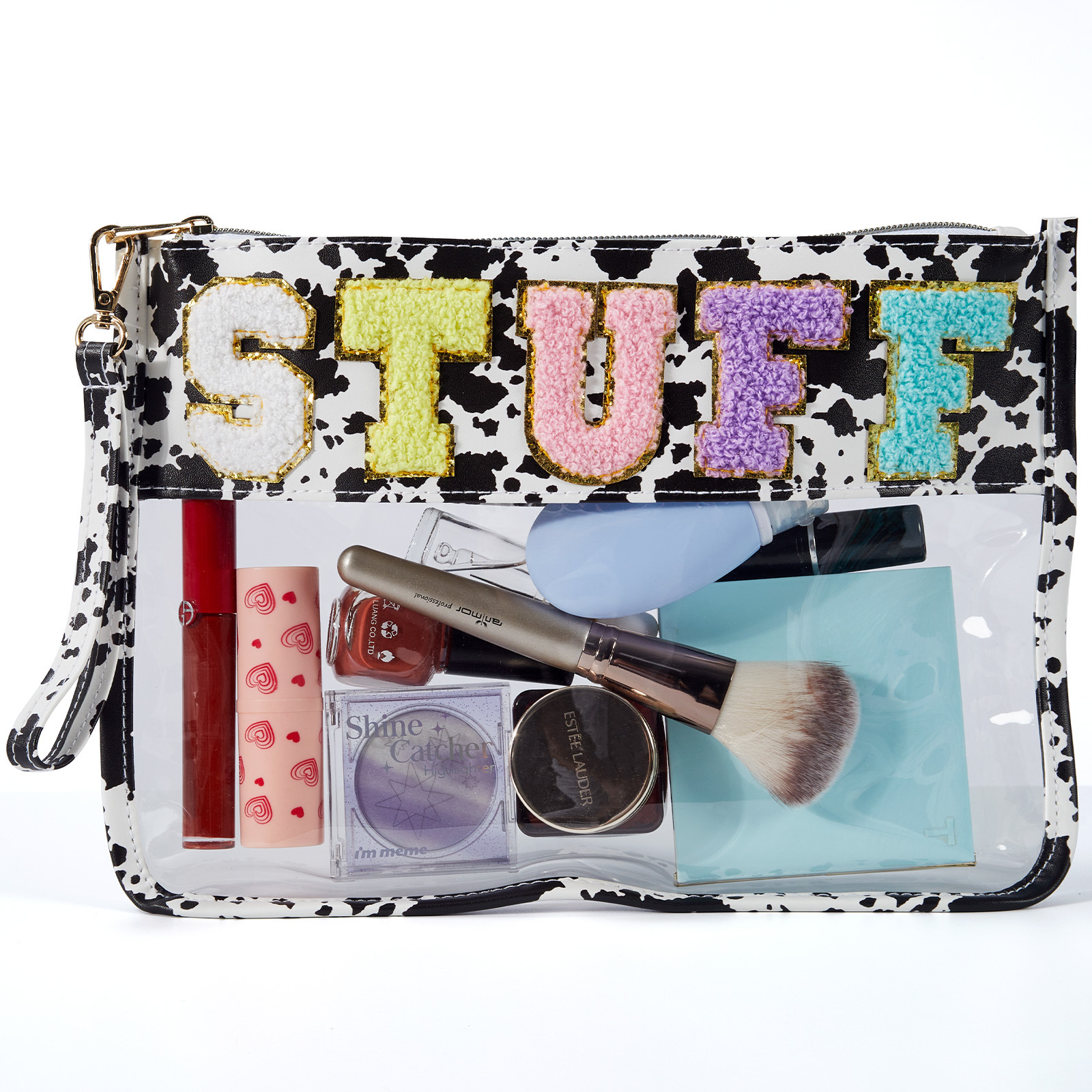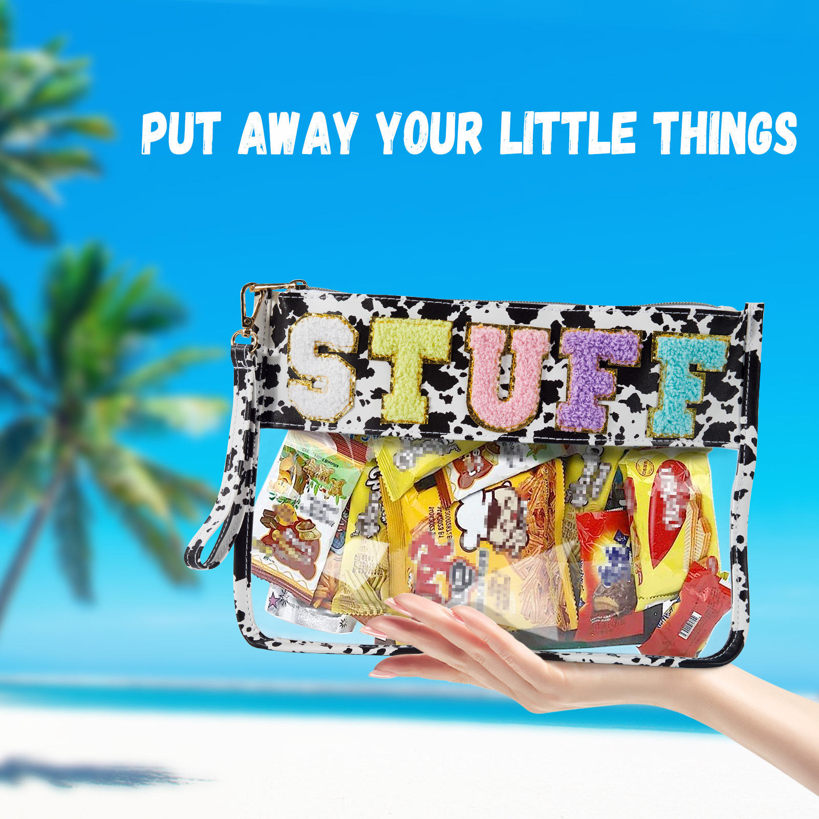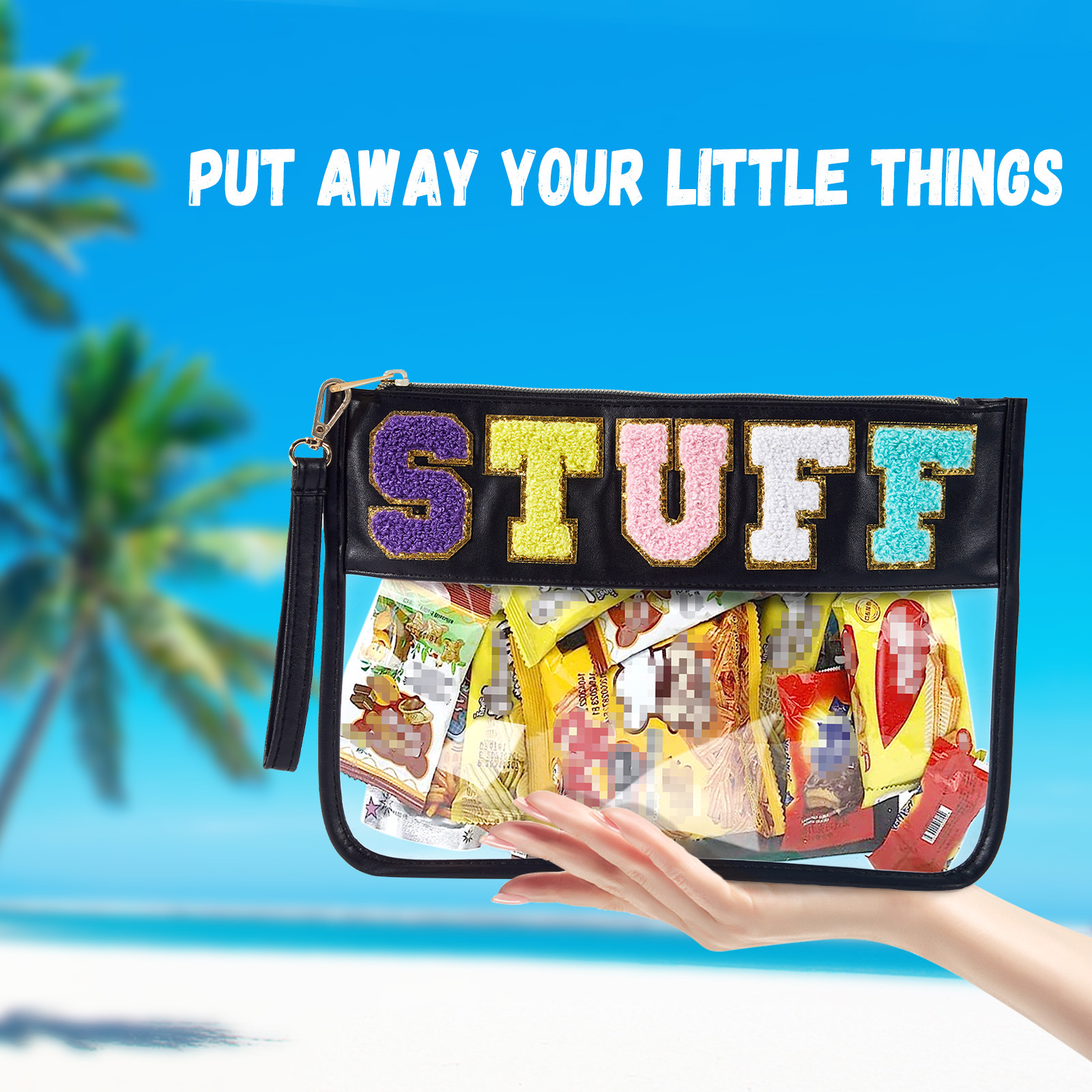 아마존 타월 자수 알파벳 스티커 화장품 가방 체육관 화장품 가방 투명 야외 여행 투명 보관 가방
