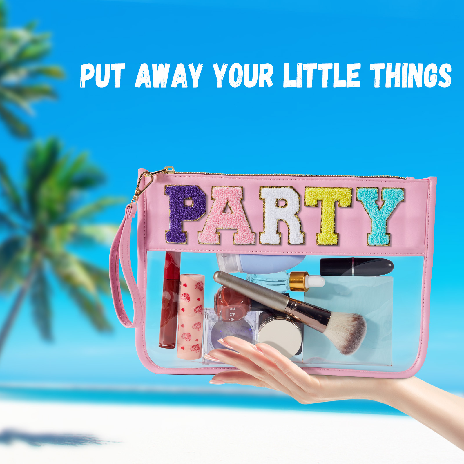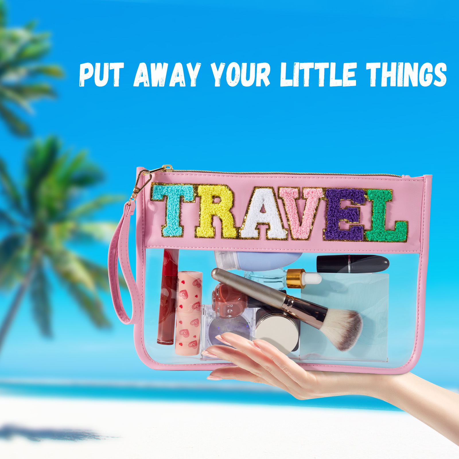 아마존 타월 자수 알파벳 스티커 화장품 가방 체육관 화장품 가방 투명 야외 여행 투명 보관 가방스토어 가기