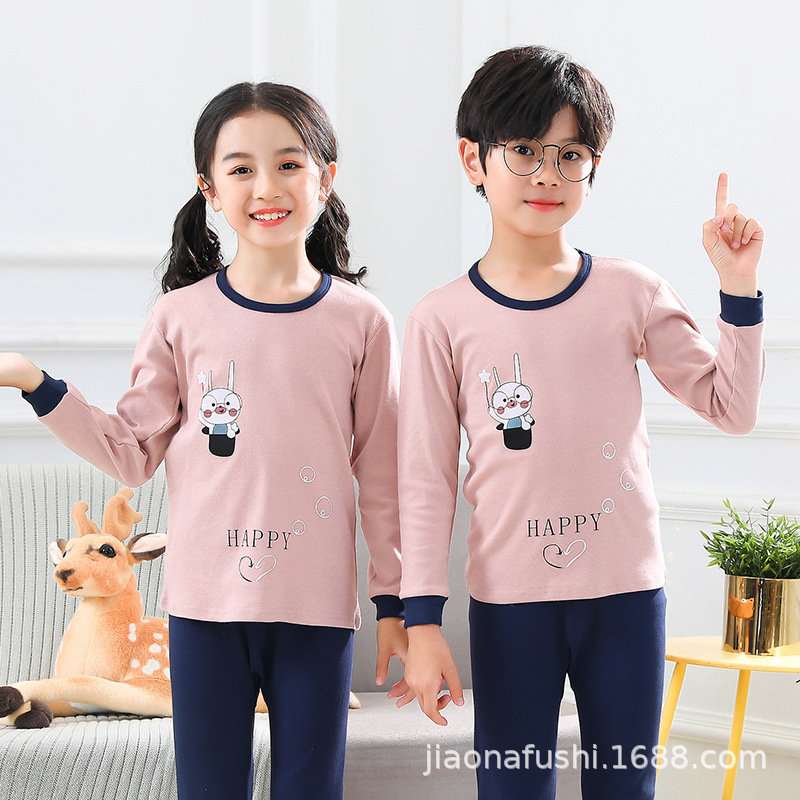 새로운 어린이 열 속옷 세트 남성과 여성의 중간 및 큰 어린이 잠옷 순면 가을 옷 가을 바지 아기 어린이 가정 의류