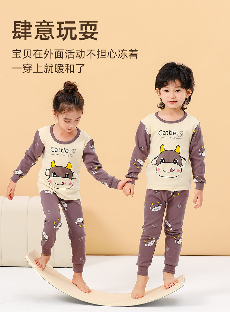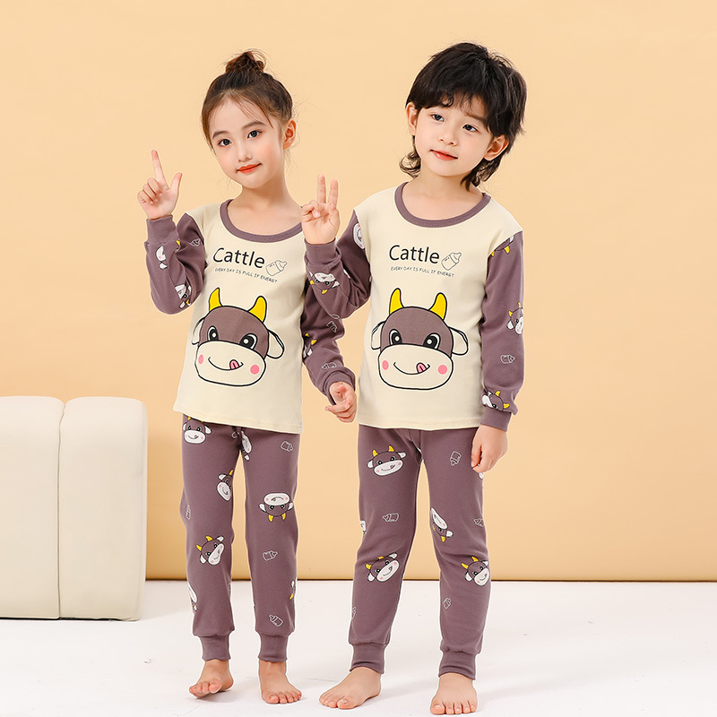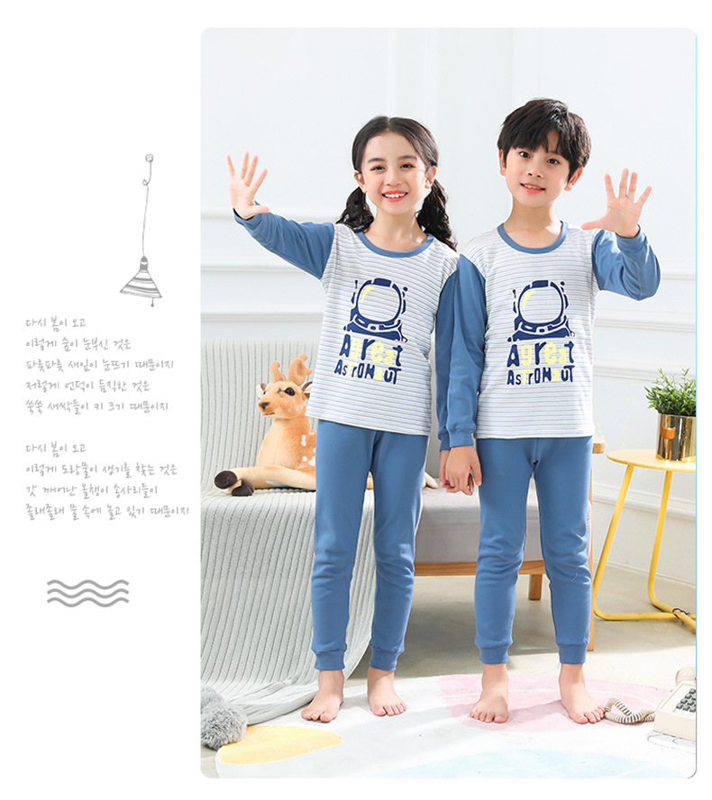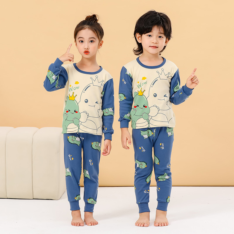 새로운 어린이 열 속옷 세트 남성과 여성의 중간 및 큰 어린이 잠옷 순면 가을 옷 가을 바지 아기 어린이 가정 의류스토어 가기