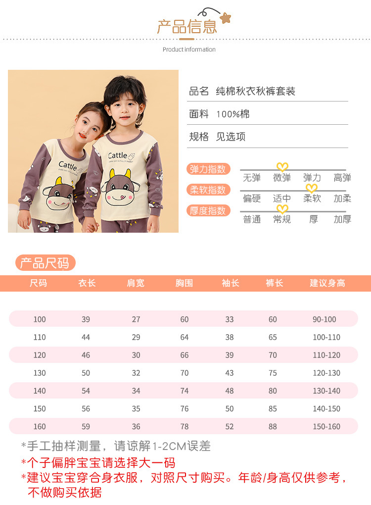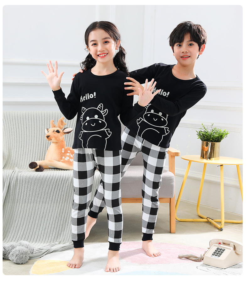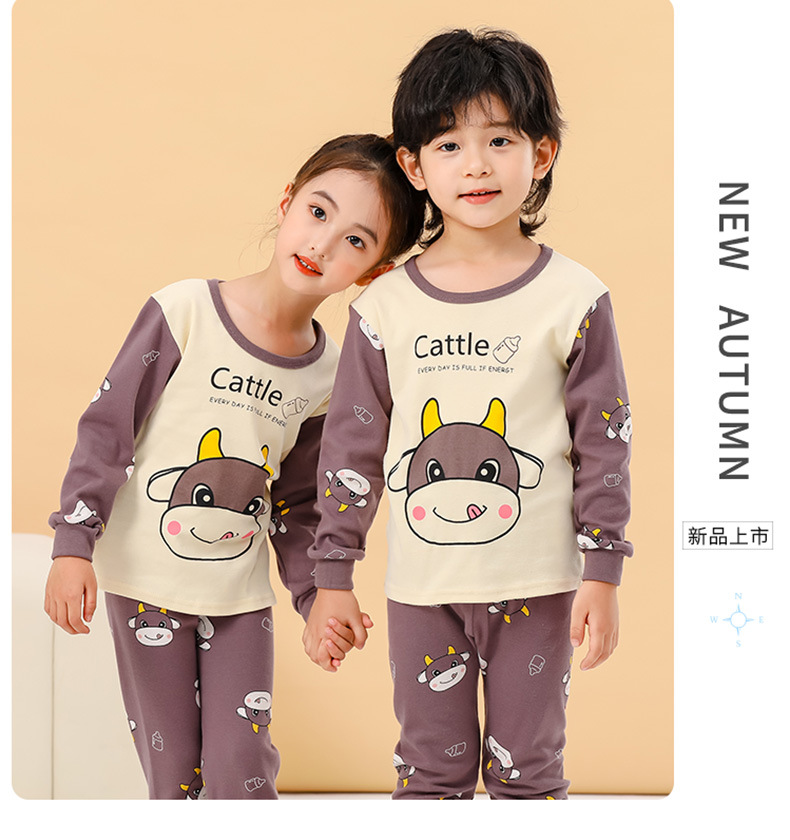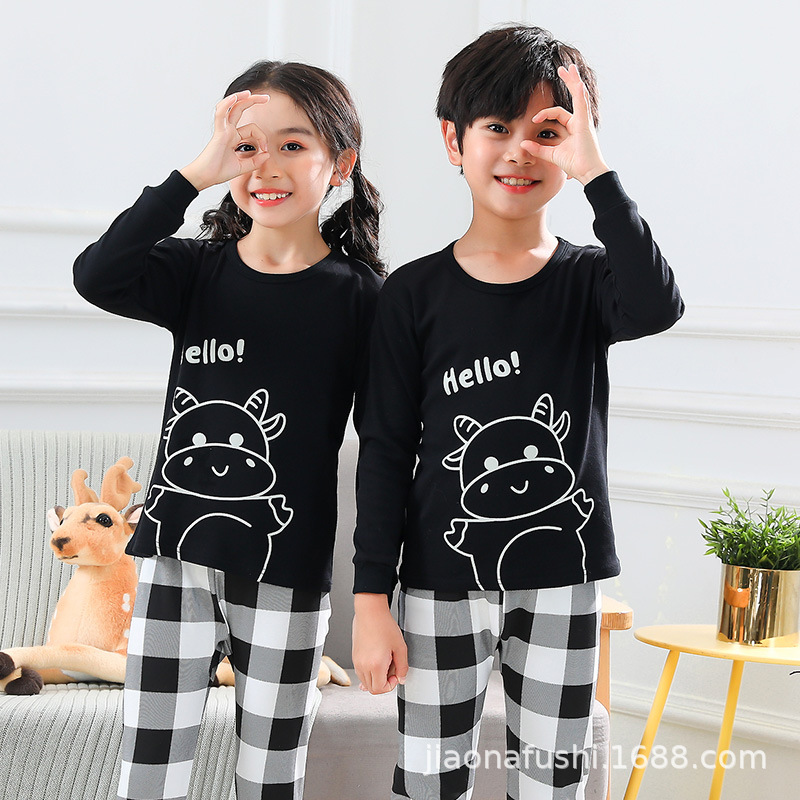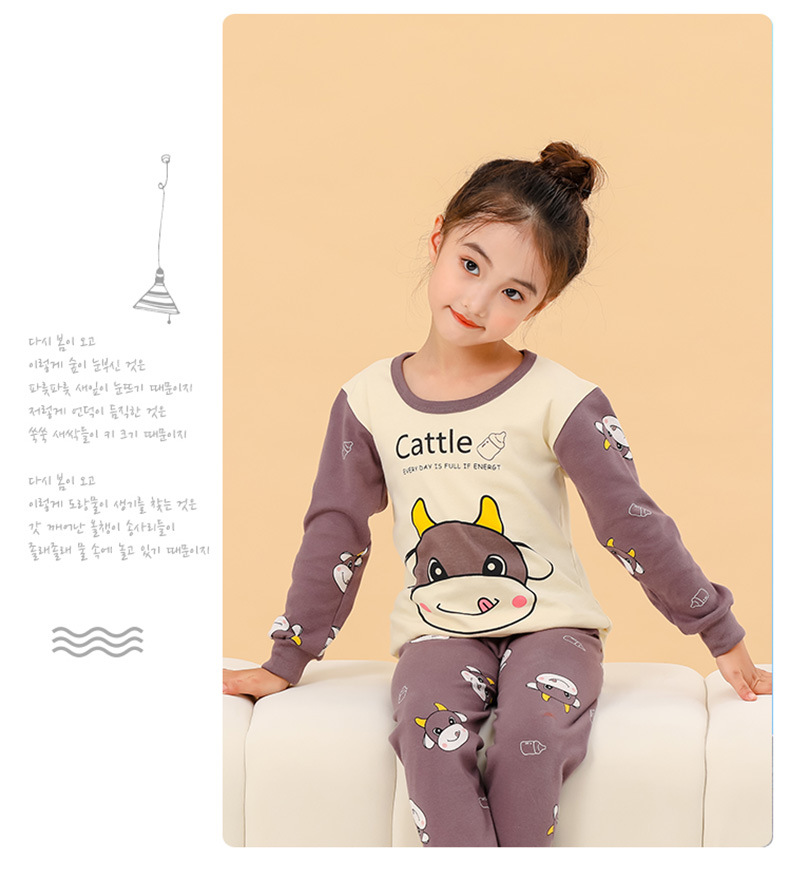새로운 어린이 열 속옷 세트 남성과 여성의 중간 및 큰 어린이 잠옷 순면 가을 옷 가을 바지 아기 어린이 가정 의류스토어 가기