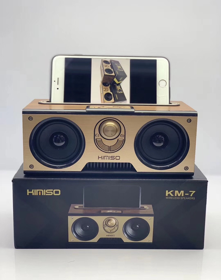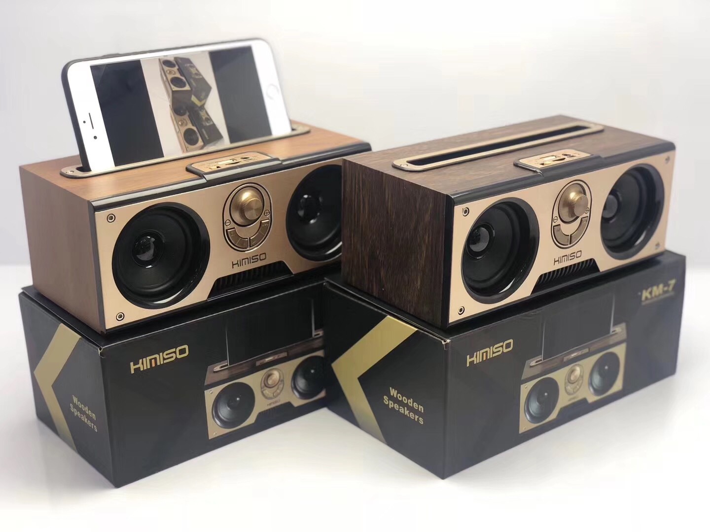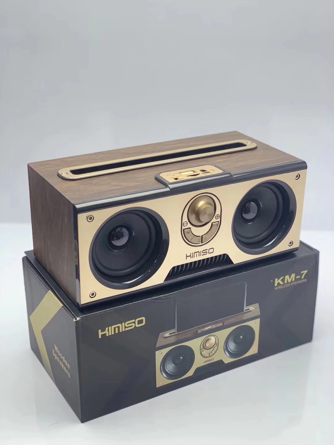 KM7 레트로 우드 무선 블루투스 스피커 휴대용 야외 서브 우퍼 라디오 카드 우드 그레인 블루투스 스테레오스토어 가기