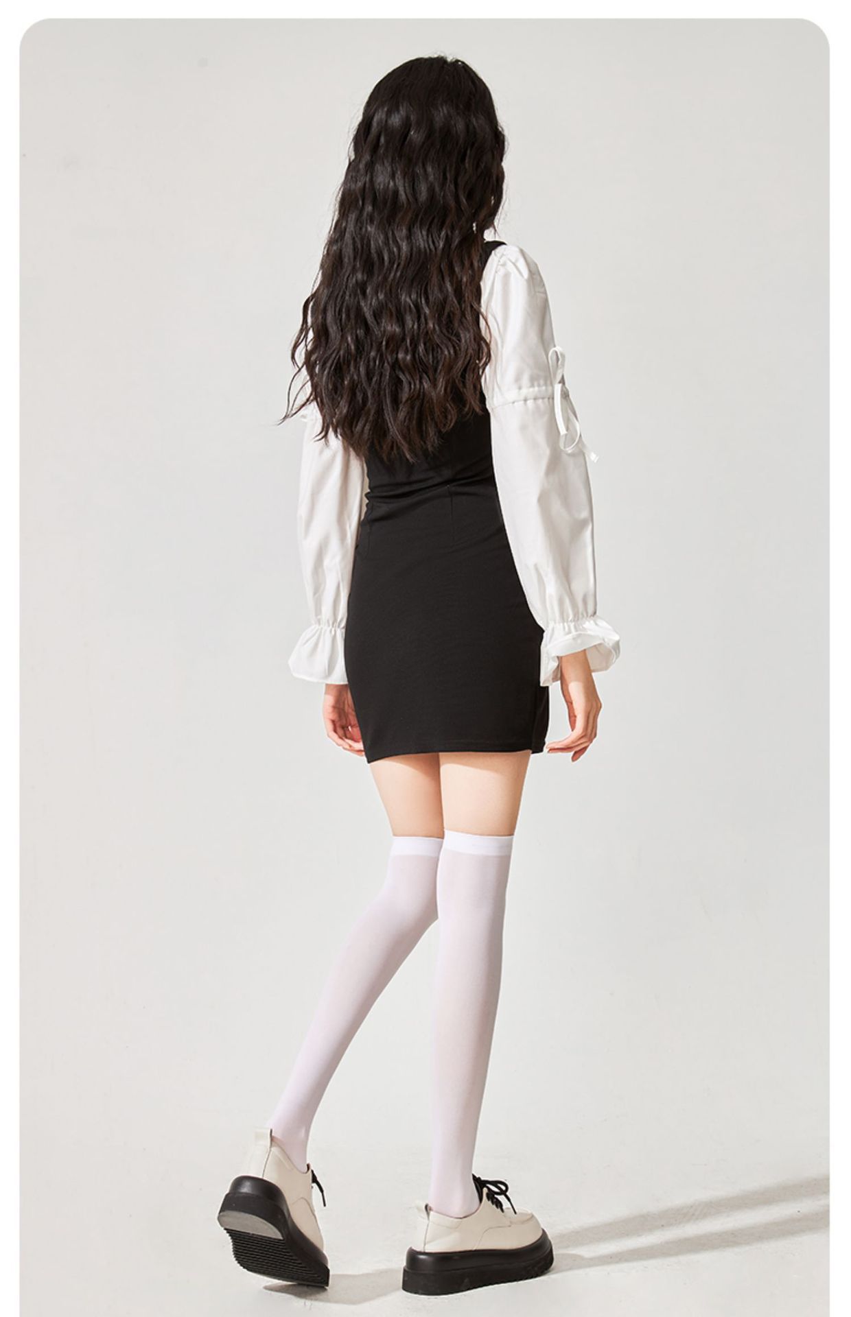 • 벨벳 무릎 양말-흰색 [약간 얇음]