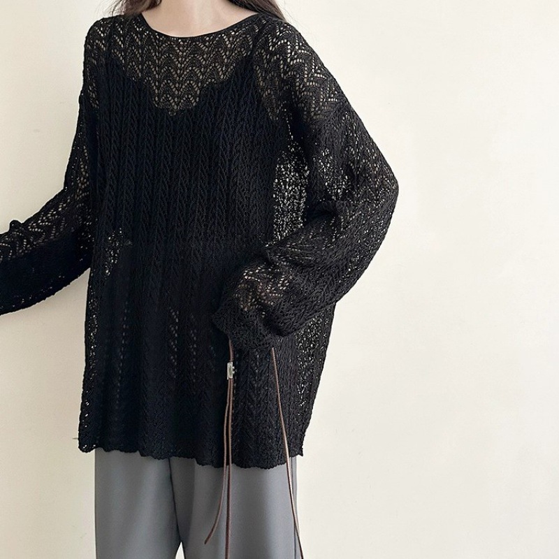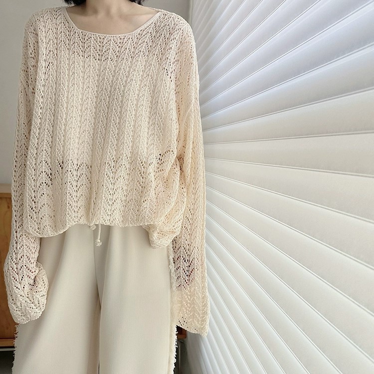 레이지 스타일 루즈핏 긴팔 니트 블라우스 2026 봄 가을 신상 여성 패션 트렌디한 컷아웃 스플릿 탑