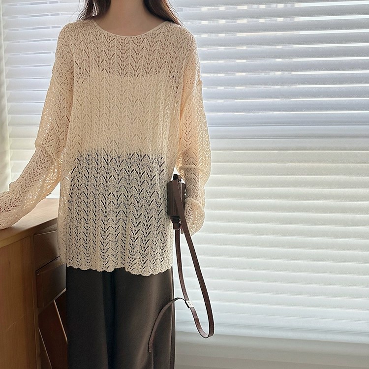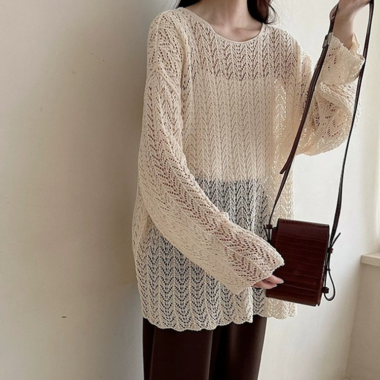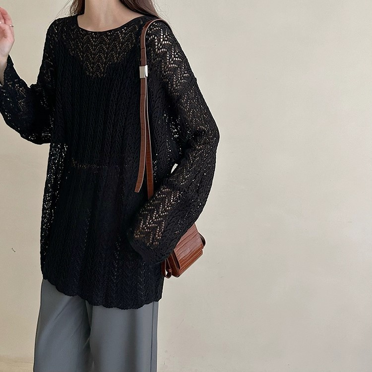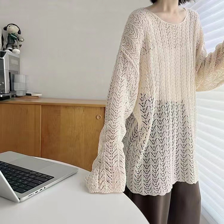 레이지 스타일 루즈핏 긴팔 니트 블라우스 2026 봄 가을 신상 여성 패션 트렌디한 컷아웃 스플릿 탑스토어 가기