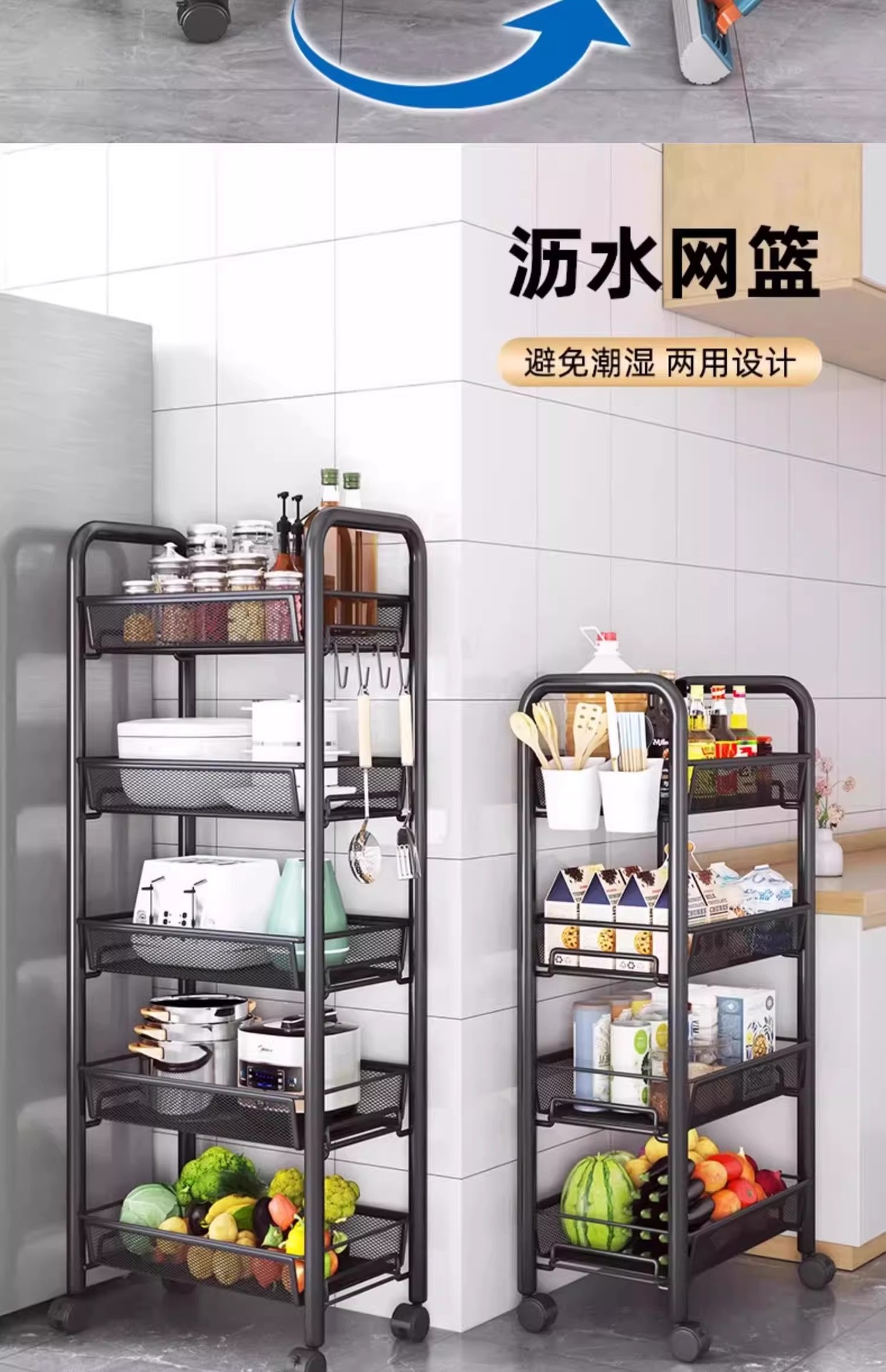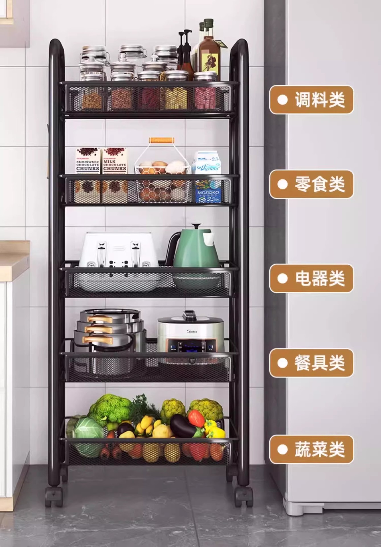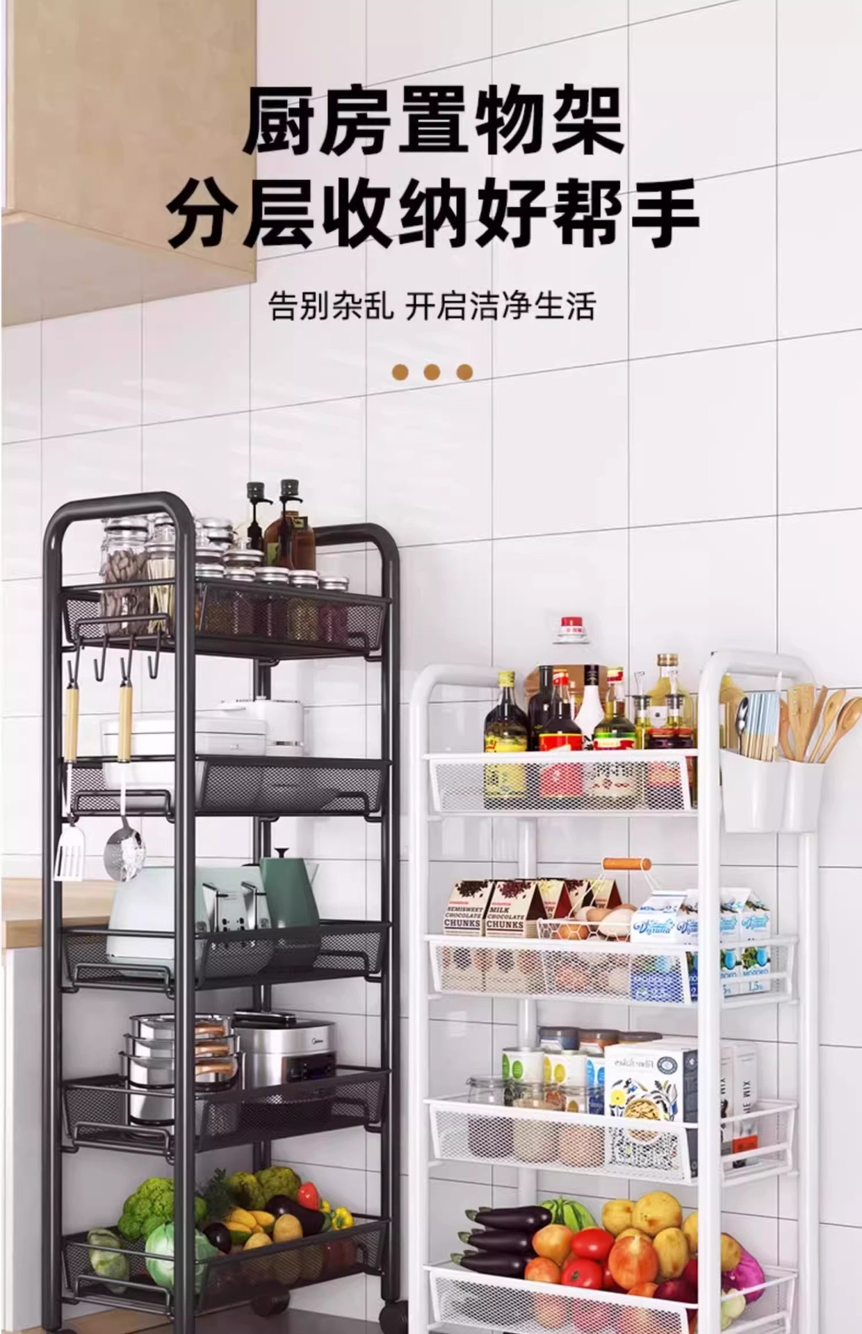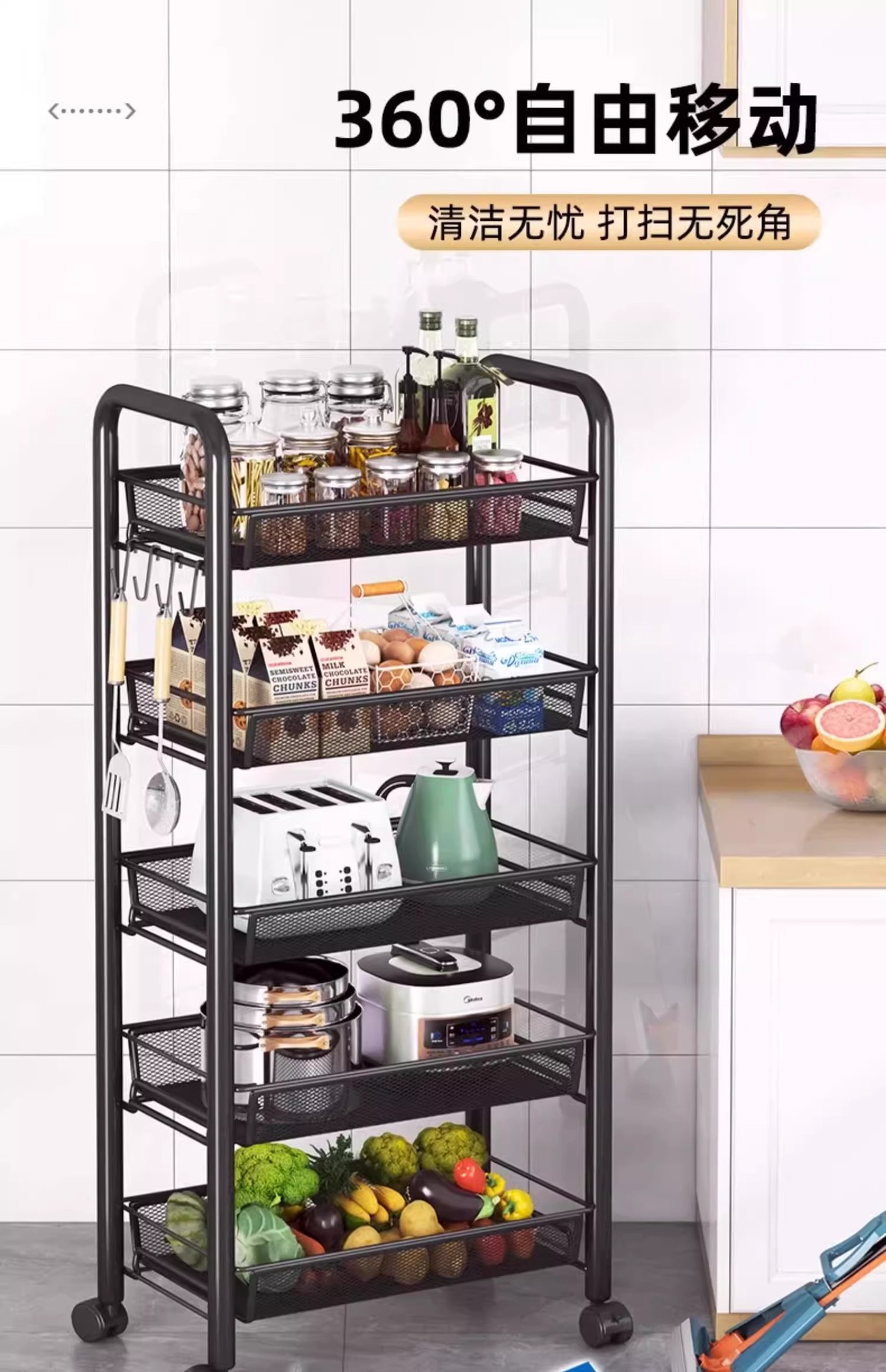 주방 수납 선반, 가정용 수납 선반, 다층 이동식 야채 바구니, 침실용 소형 트롤리, 다기능 수납 선반