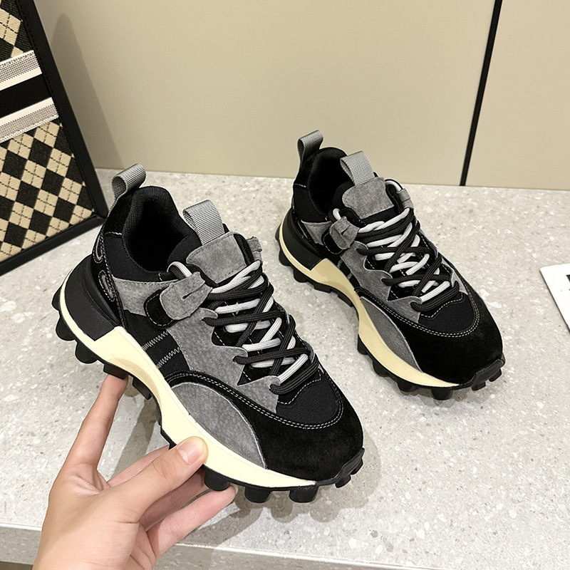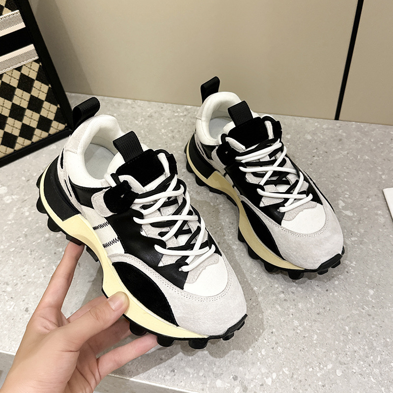 2024 신상 패션 캐주얼 슈즈, 두꺼운 밑창의 아빠 신발, 다용도 천연 가죽 아가니 신발, 키높이 운동화, 학생 신발스토어 가기