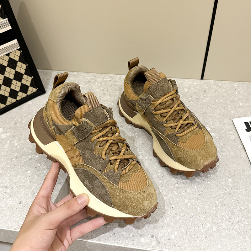 2024 신상 패션 캐주얼 슈즈, 두꺼운 밑창의 아빠 신발, 다용도 천연 가죽 아가니 신발, 키높이 운동화, 학생 신발