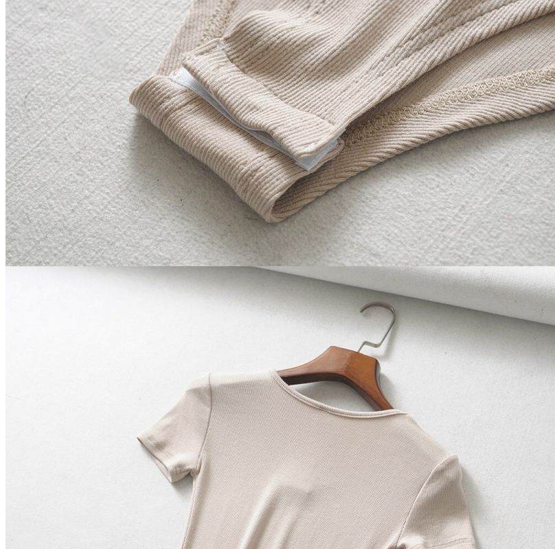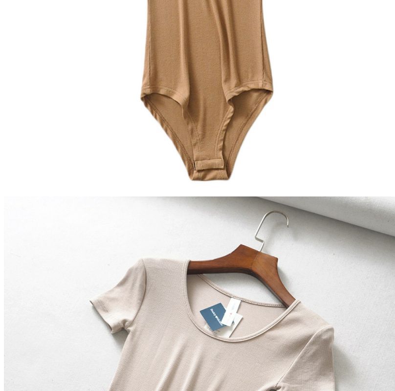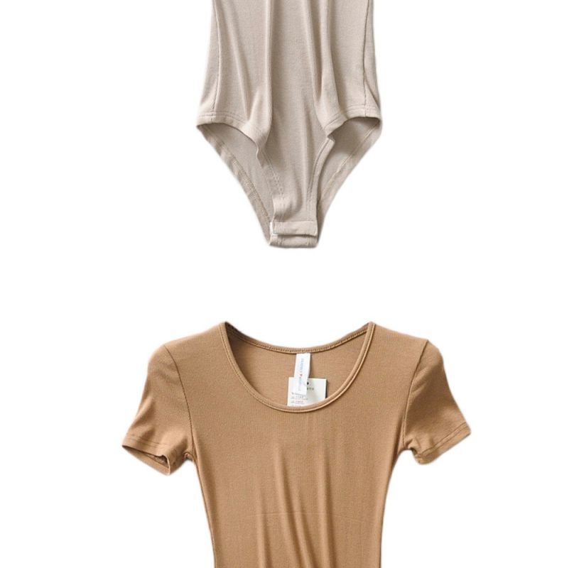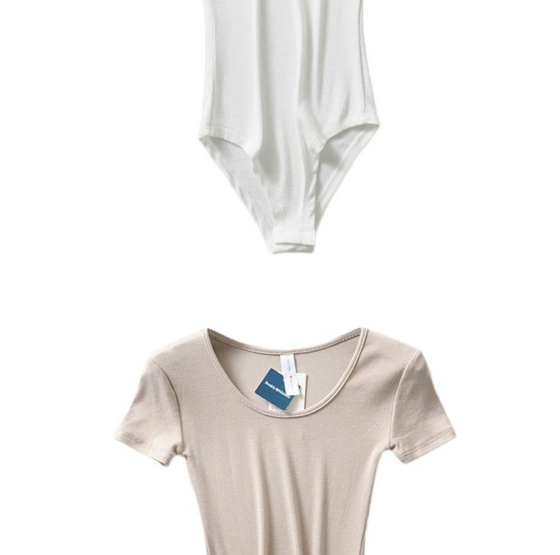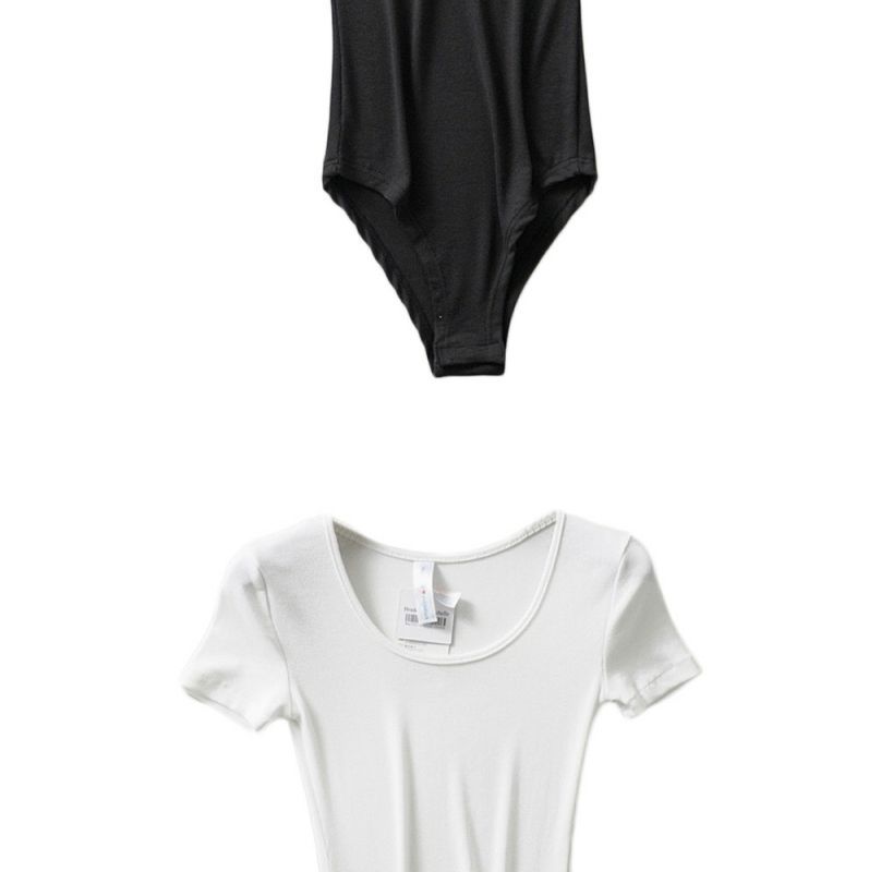 틈새 유럽과 미국 INS 레트로 슬림 핏 슬리밍 낮은 라운드 넥 반팔 티셔츠 점프 수트 여성의 여름 유행 인테리어 원피스스토어 가기