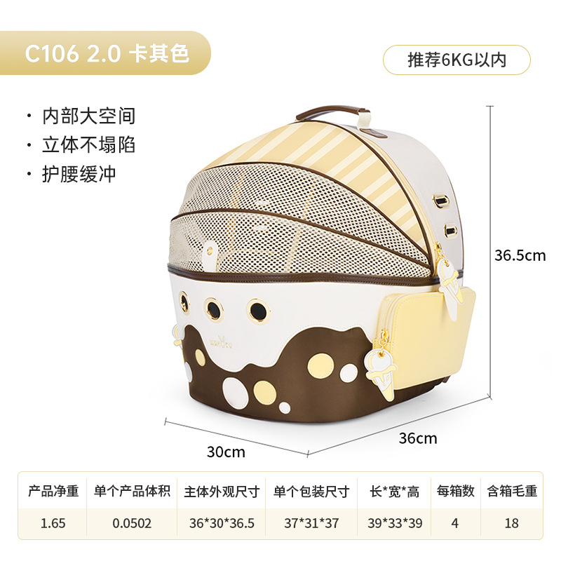 Wakytu 영국 아이스크림 작은 고양이 가방 나가는 어깨 통기성 고양이 애완 동물 가방 미니 개 배낭