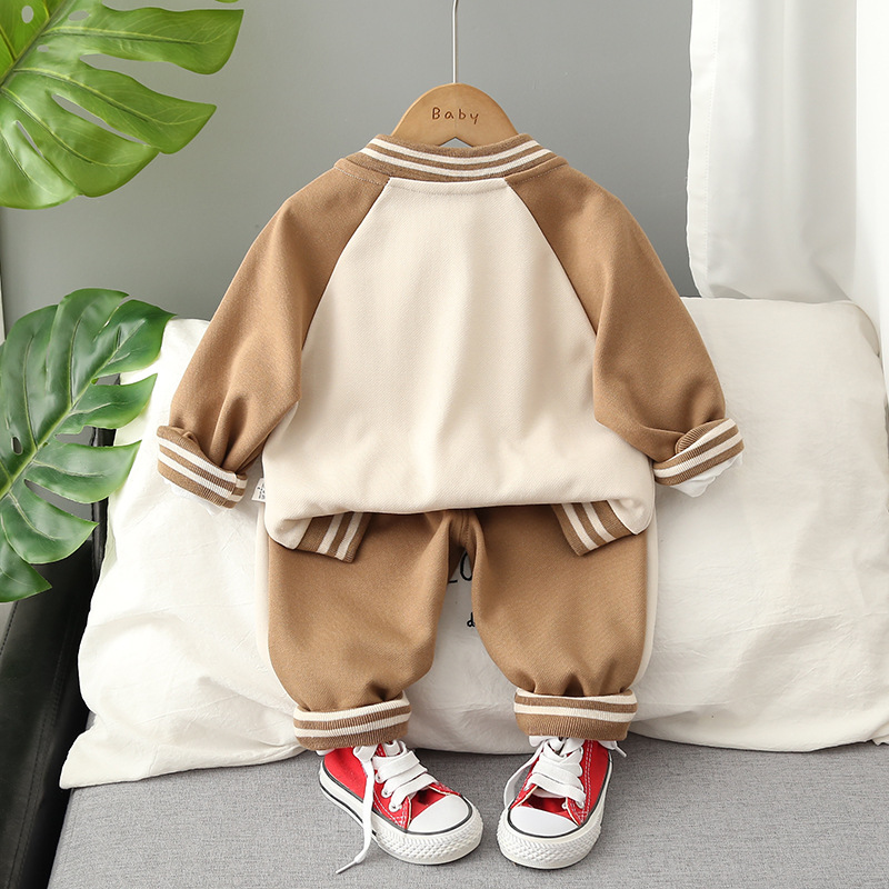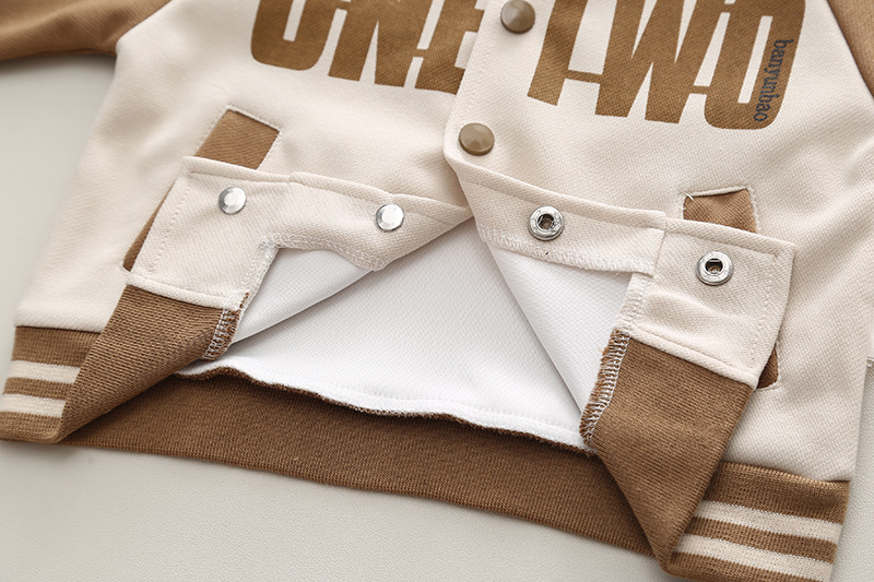어린이 가을 3 피스 세트 제조 업체 도매 소년 색상 일치 영어 문자 인쇄 긴 소매 코트 편안한 바지스토어 가기