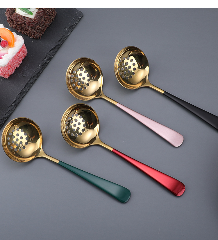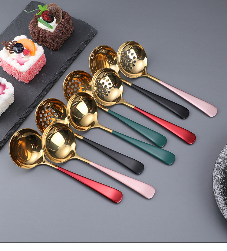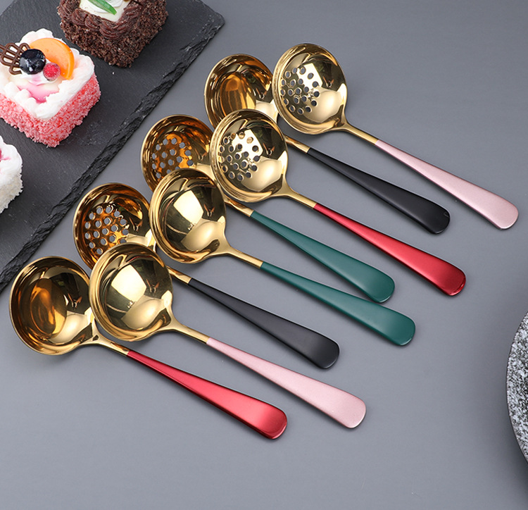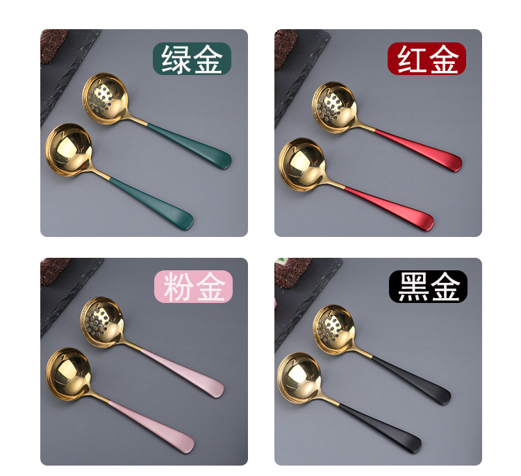 304 스테인레스 스틸 수프 스푼 냄비 숟가락 숟가락 숟가락 소쿠리 세트 대형 두꺼운 인터넷 연예인 숟가락 요리 도구 공장스토어 가기
