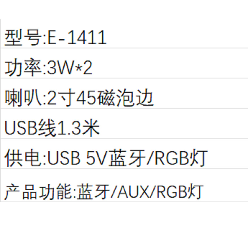 풀 컬러 조명 USB 전원 공급 장치 E-1411 블루투스 케이블 스피커 서브 우퍼 컴퓨터 홈 크로스 보더 아마존 폭발스토어 가기