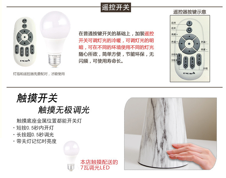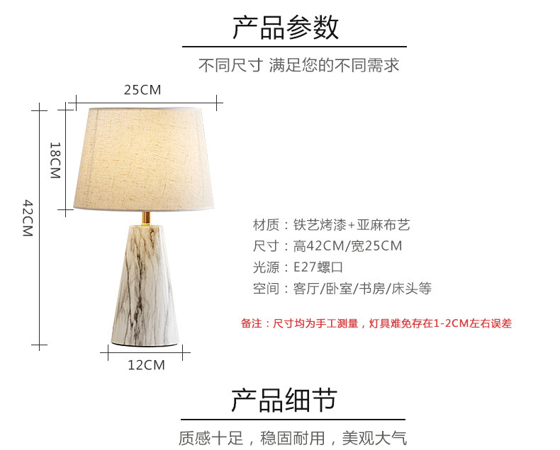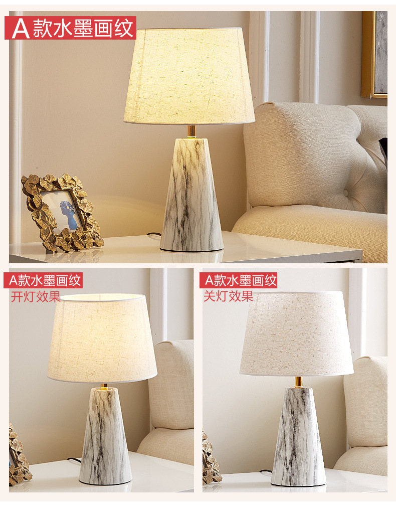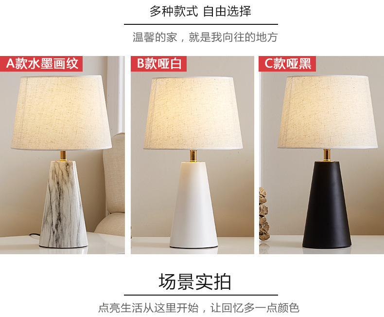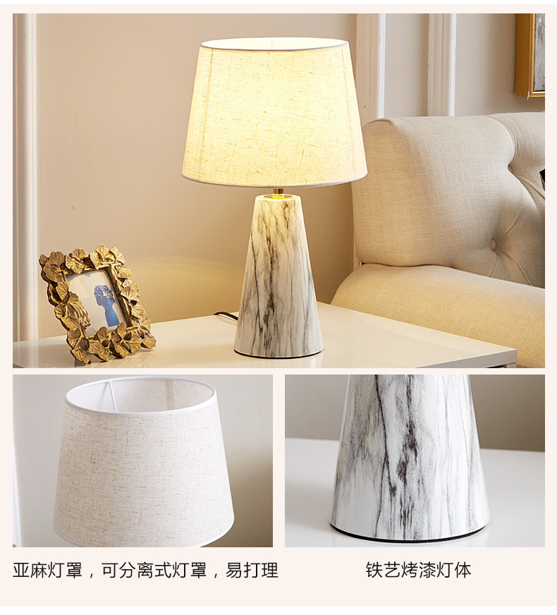 북유럽 테이블 램프 침실 침대 옆 램프 포스트 모던 라이트 럭셔리 간단한 현대 낭만적 인 따뜻한 모조 대리석 터치 테이블 램프