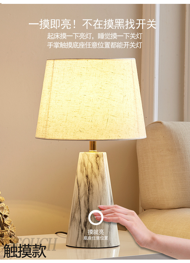 북유럽 테이블 램프 침실 침대 옆 램프 포스트 모던 라이트 럭셔리 간단한 현대 낭만적 인 따뜻한 모조 대리석 터치 테이블 램프스토어 가기