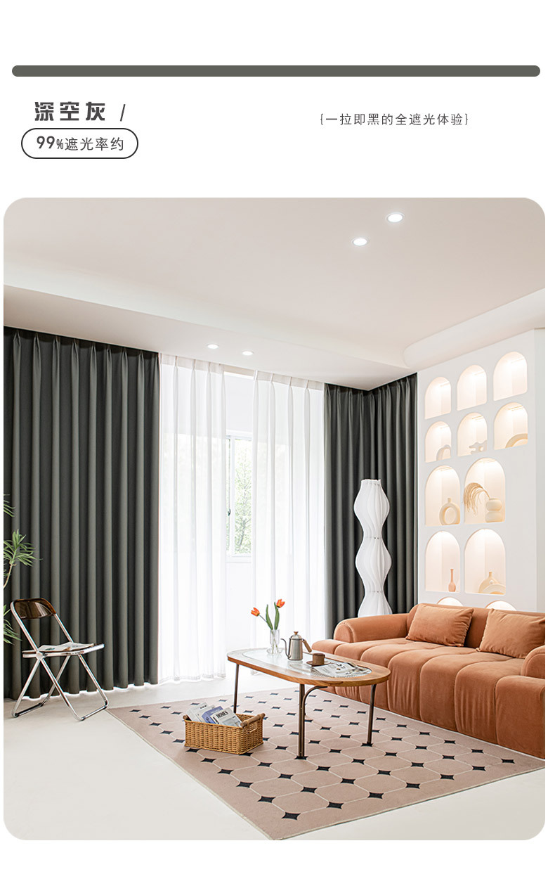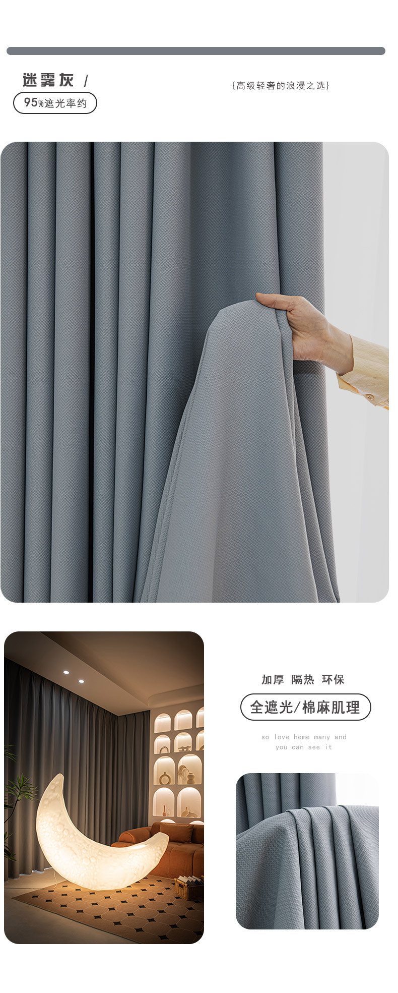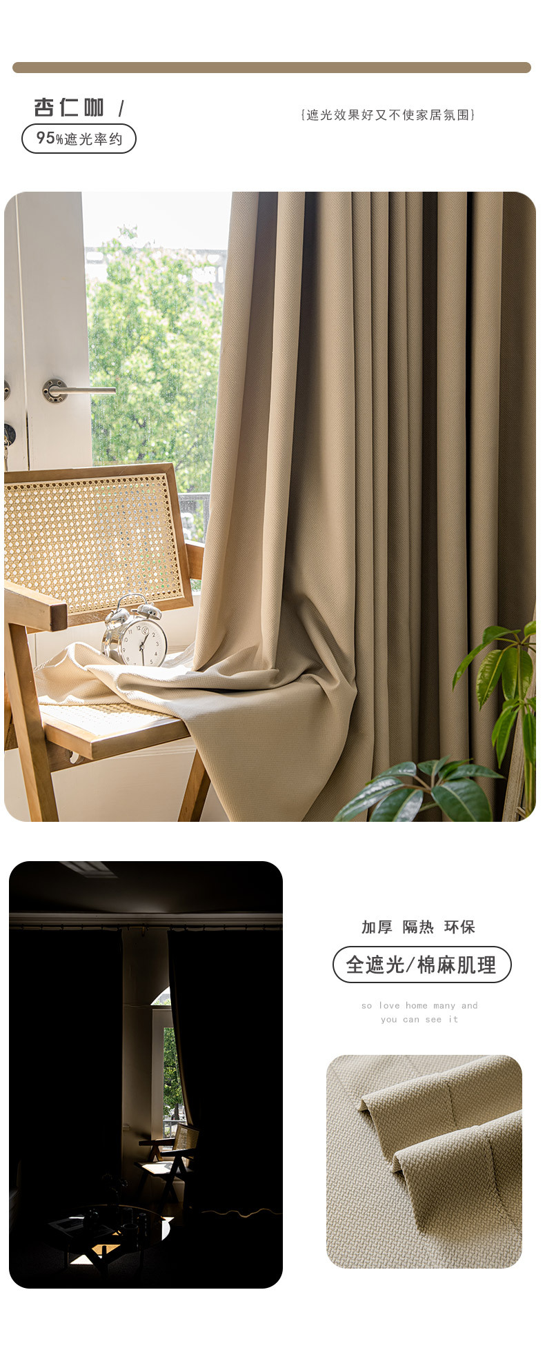 새로운 완전 암막 커튼, 거실, 침실, 발코니, 방음, 차양, 자외선 차단, 면과 린넨 소재, 창문 커튼, 모던하고 심플한 디자인