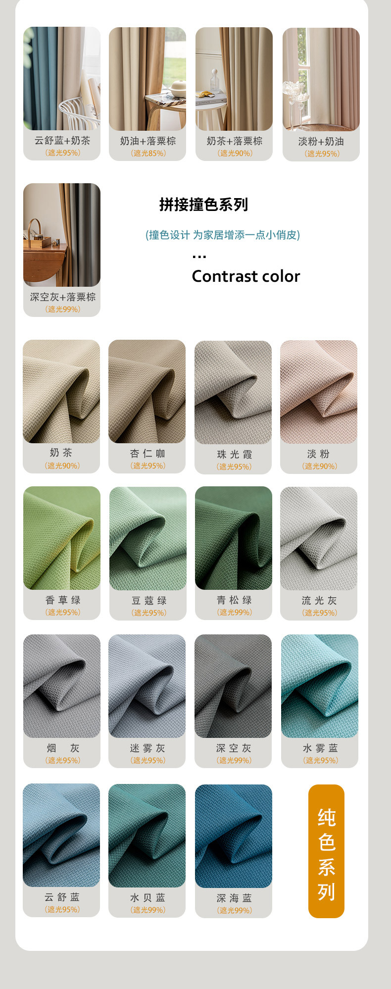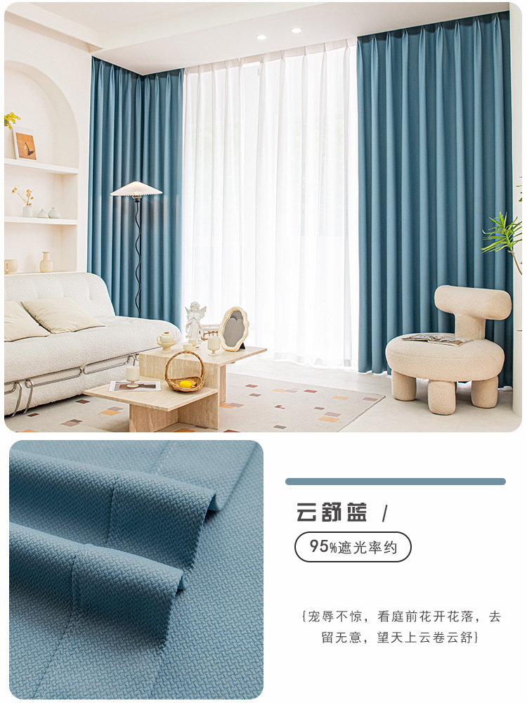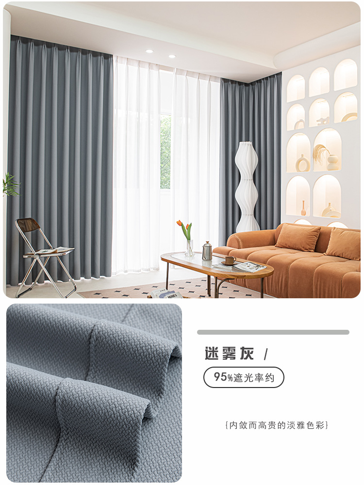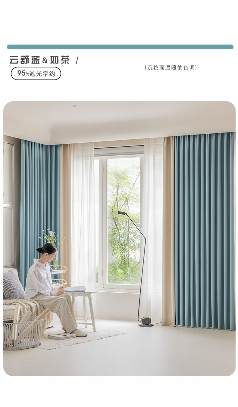 새로운 완전 암막 커튼, 거실, 침실, 발코니, 방음, 차양, 자외선 차단, 면과 린넨 소재, 창문 커튼, 모던하고 심플한 디자인