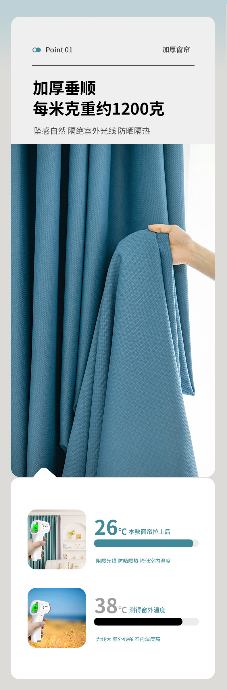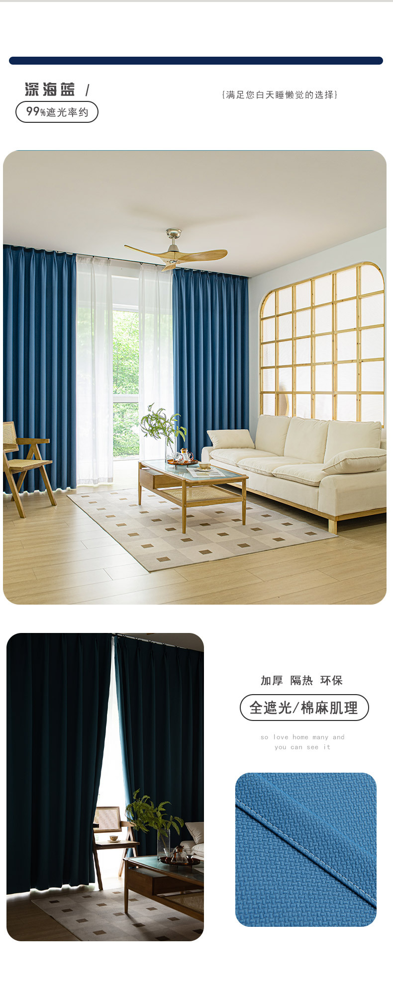 새로운 완전 암막 커튼, 거실, 침실, 발코니, 방음, 차양, 자외선 차단, 면과 린넨 소재, 창문 커튼, 모던하고 심플한 디자인스토어 가기