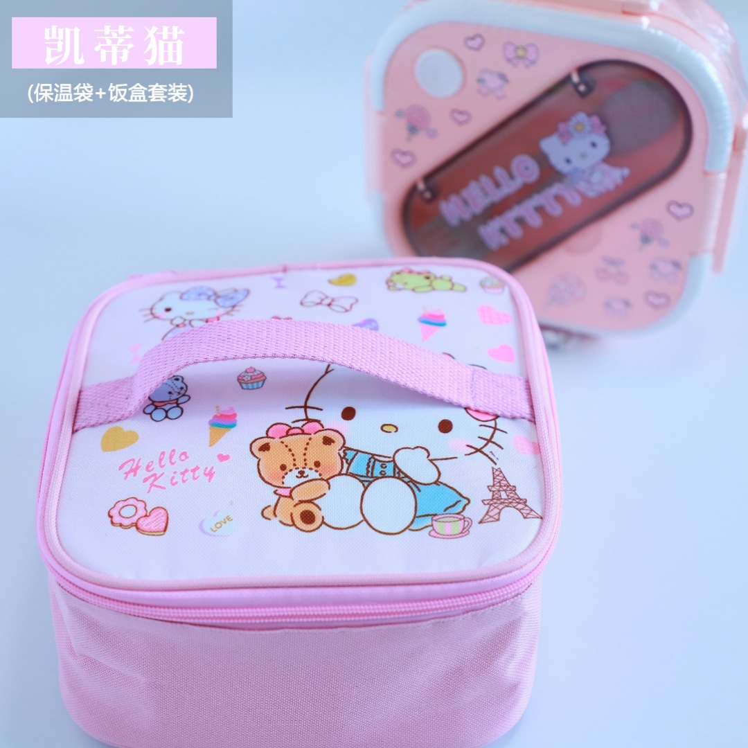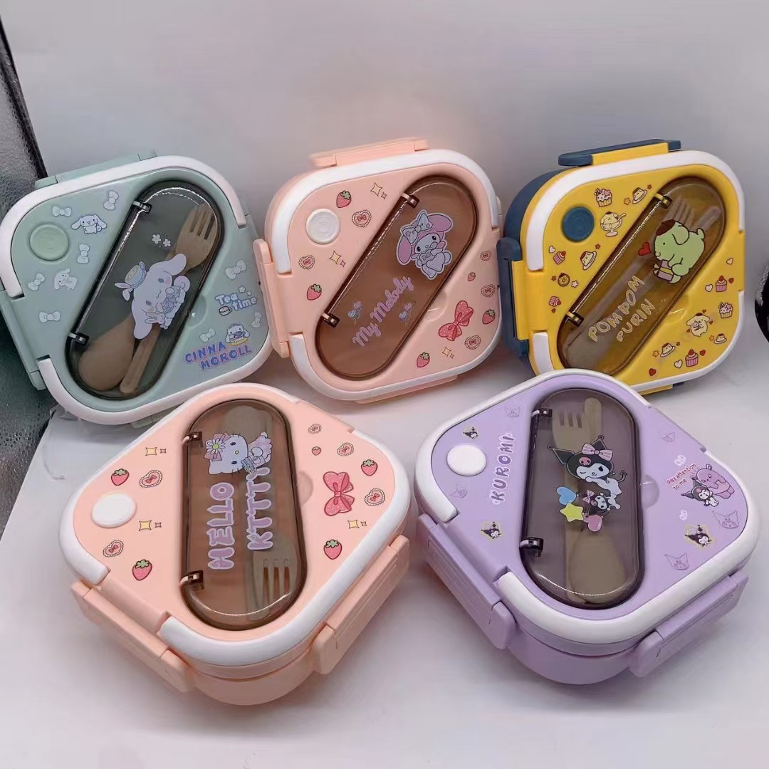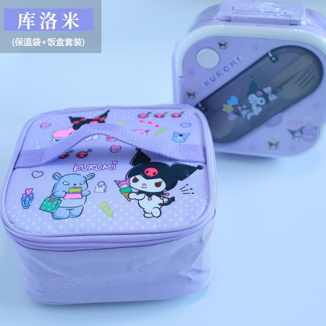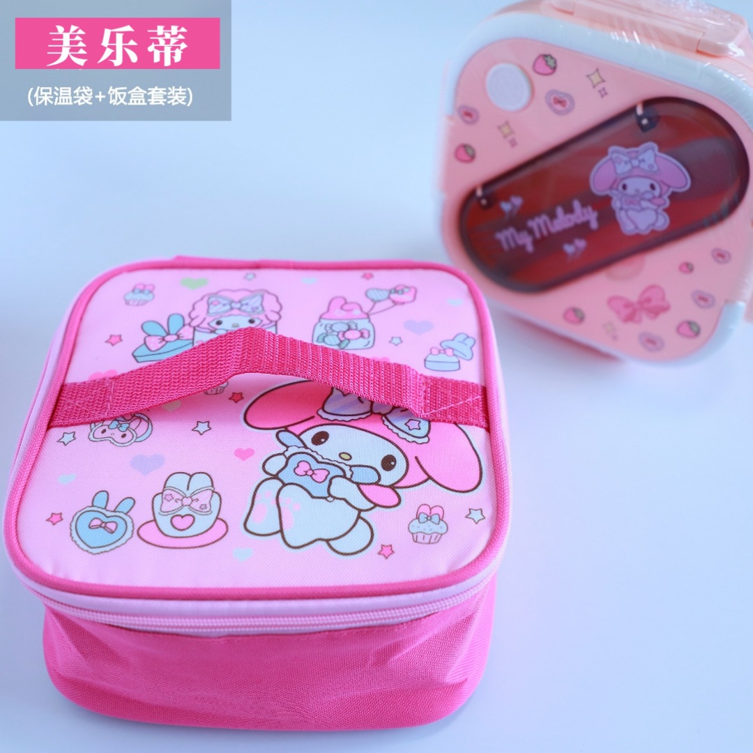 새로운 산리오 플라스틱 전자 레인지 3 칸 학생 도시락 회사원 귀여운 단열 가방 도시락 세트