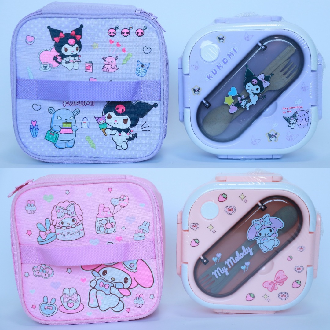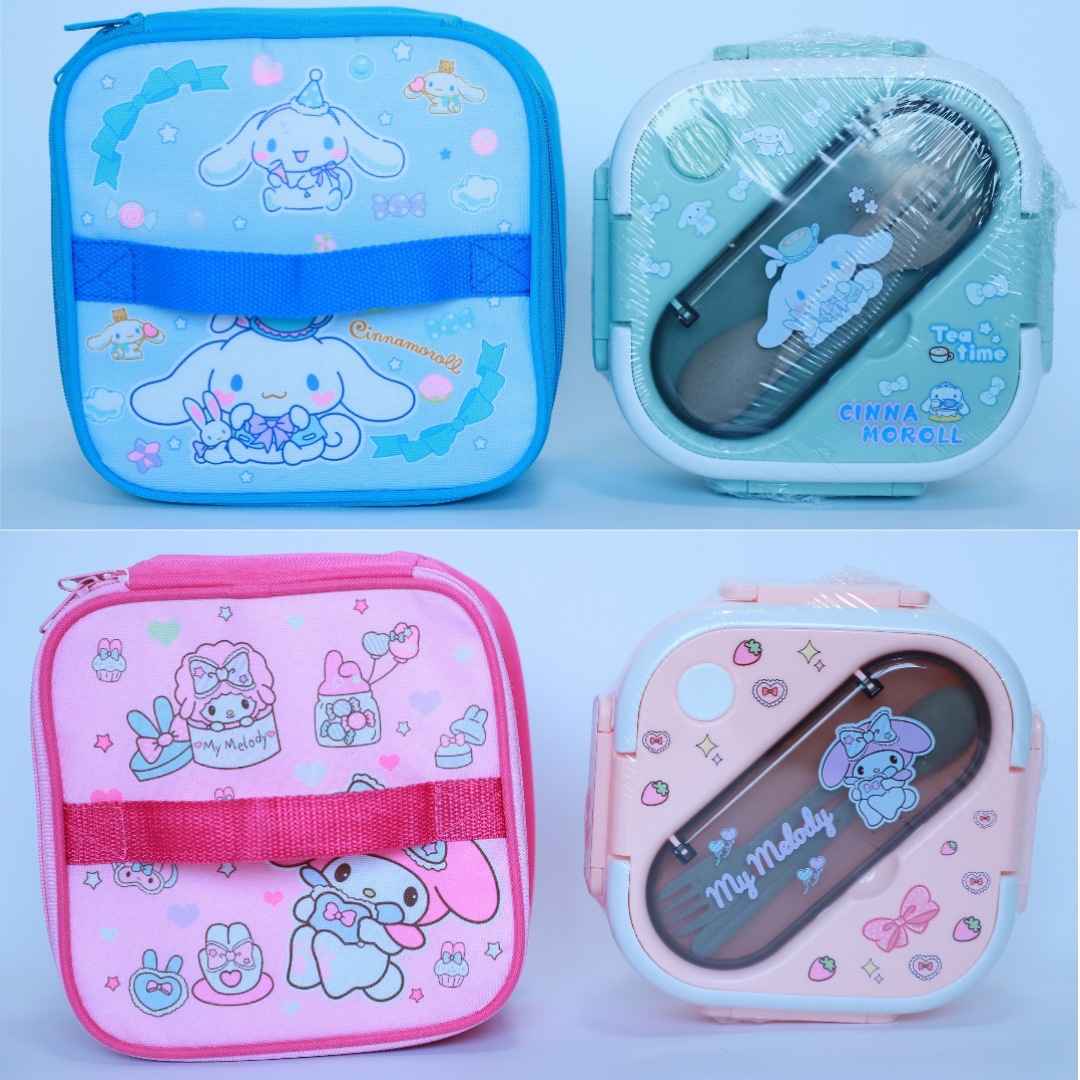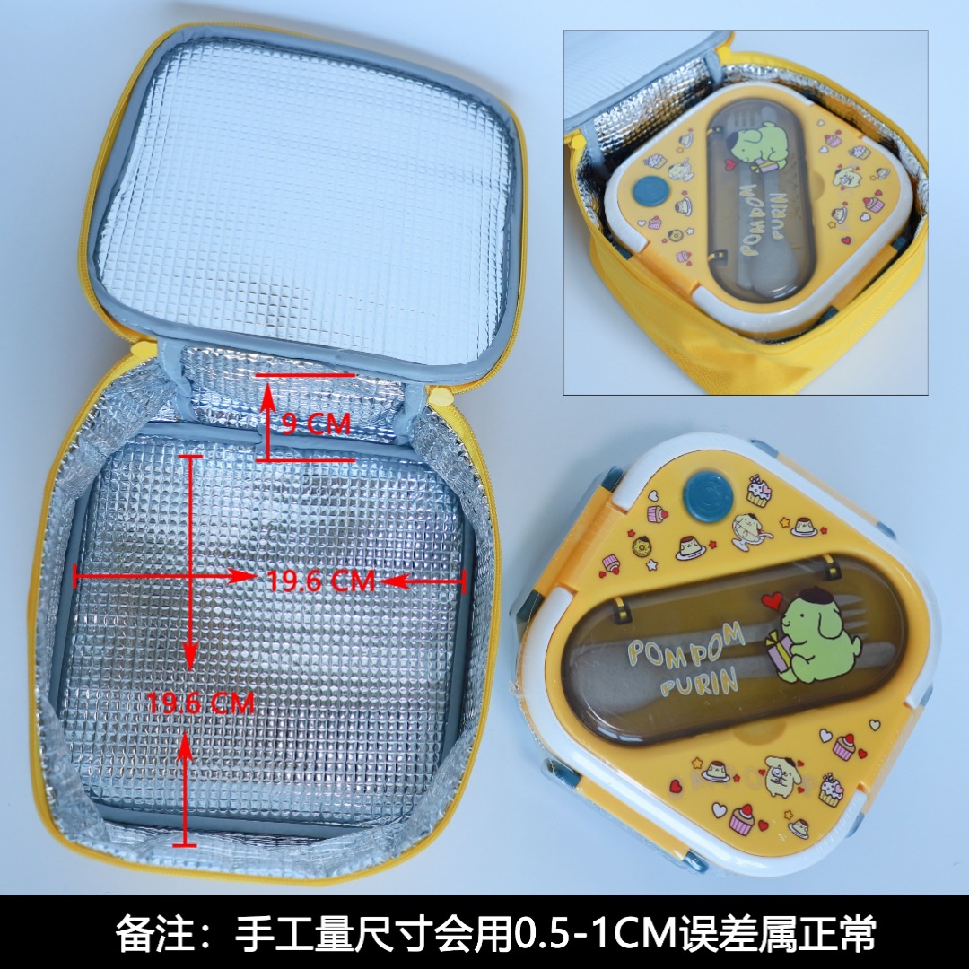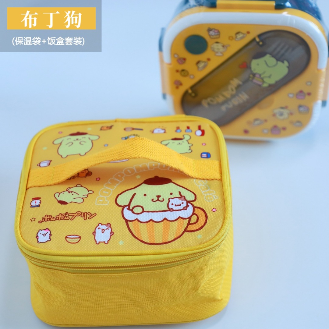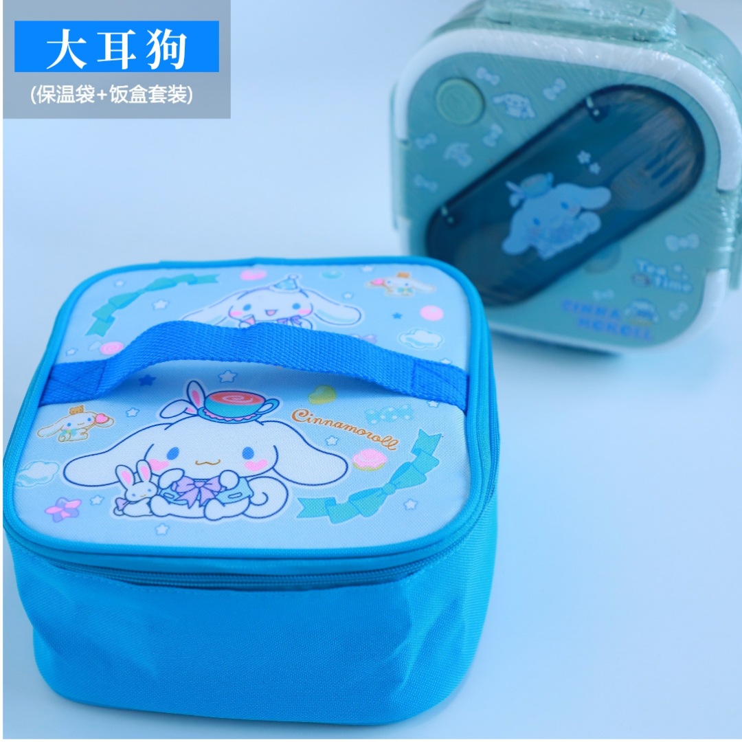 새로운 산리오 플라스틱 전자 레인지 3 칸 학생 도시락 회사원 귀여운 단열 가방 도시락 세트