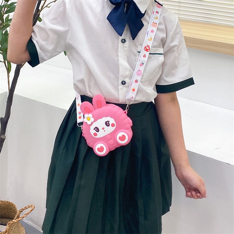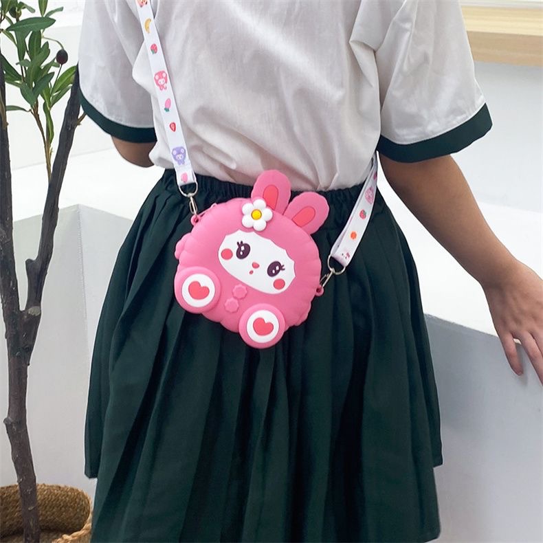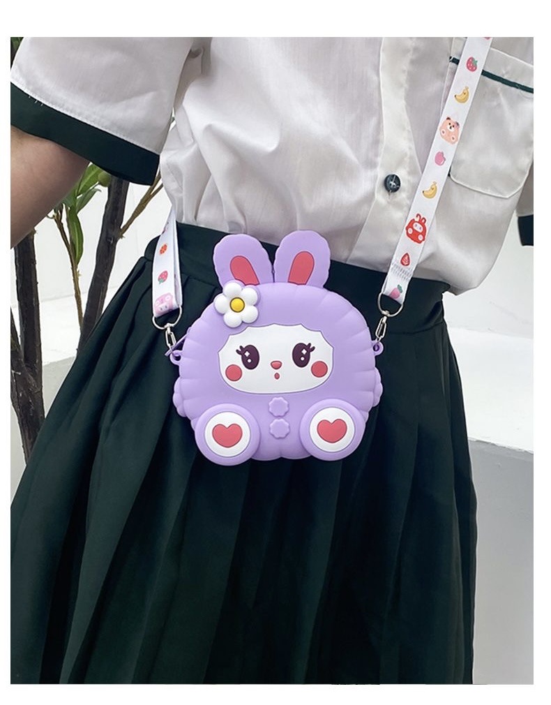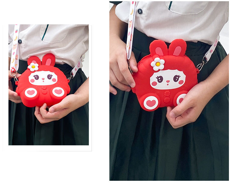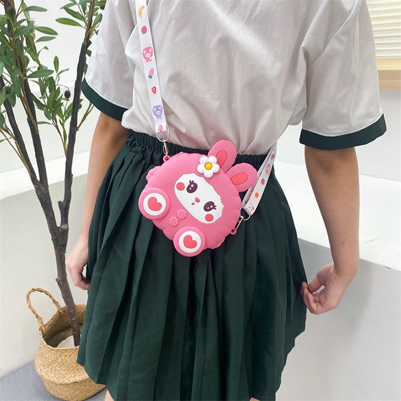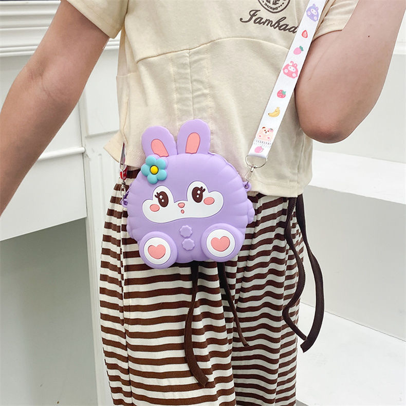 귀여운 만화 실리콘 동전 지갑 유치원 아기 가방 소녀의 나가는 장식 가방 토끼 웨스턴 스타일 크로스 바디 백