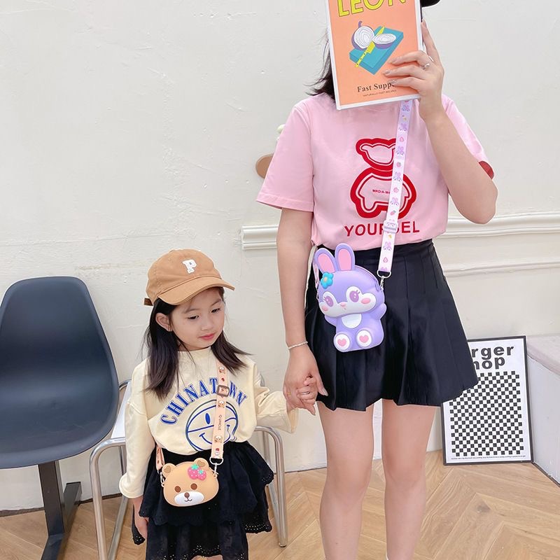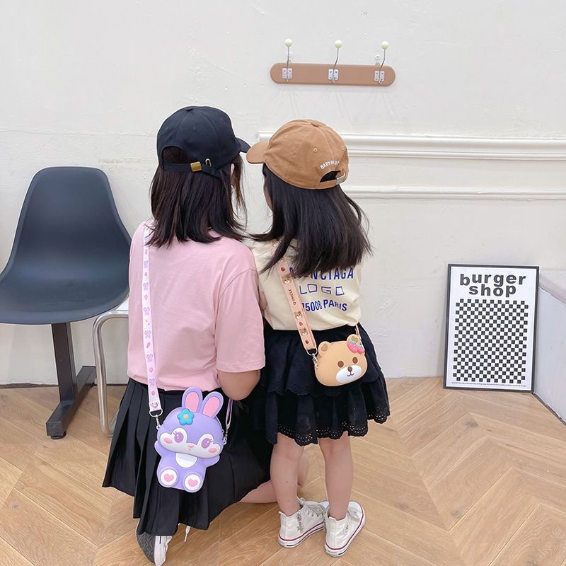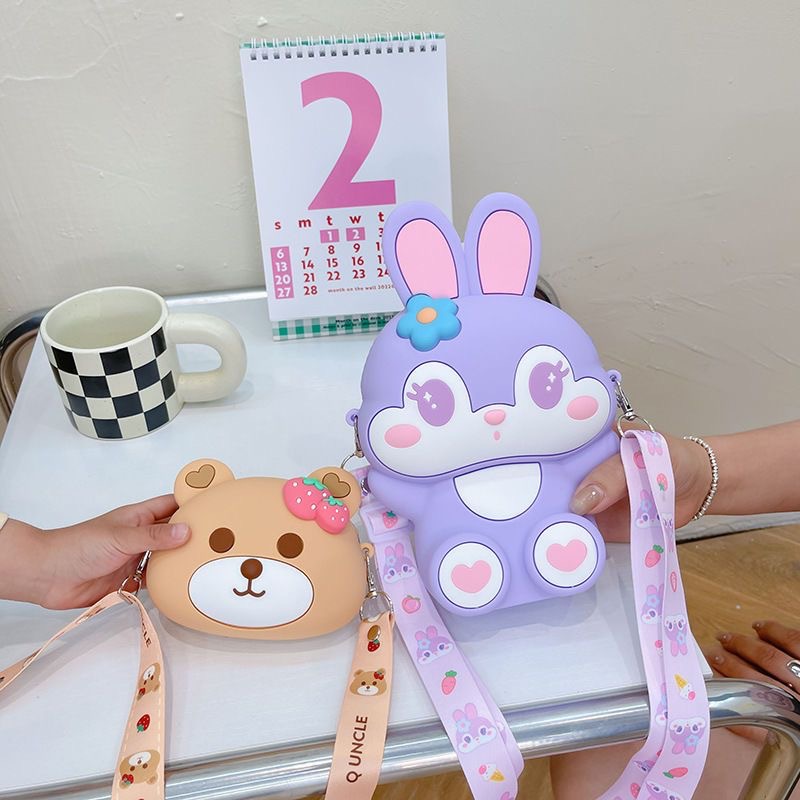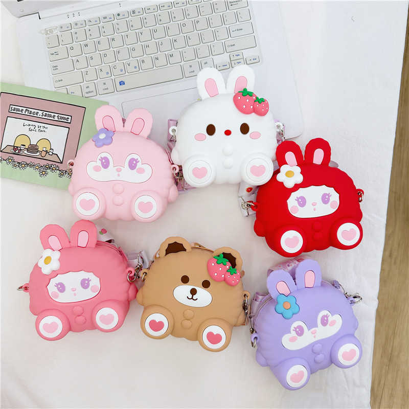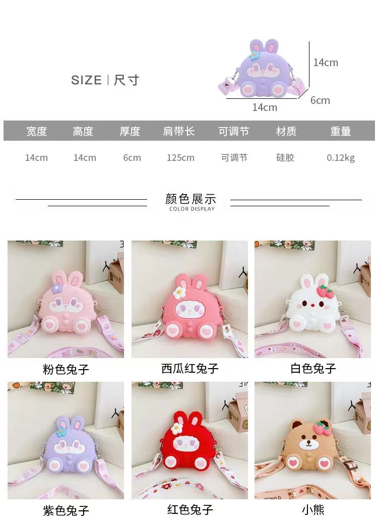 귀여운 만화 실리콘 동전 지갑 유치원 아기 가방 소녀의 나가는 장식 가방 토끼 웨스턴 스타일 크로스 바디 백스토어 가기