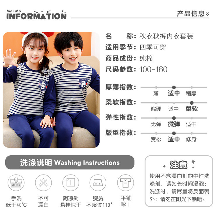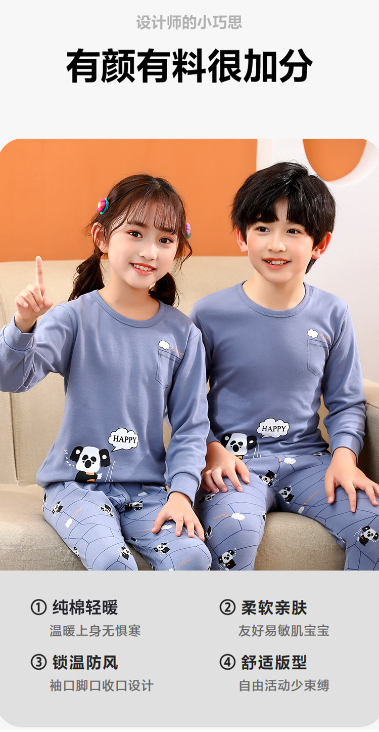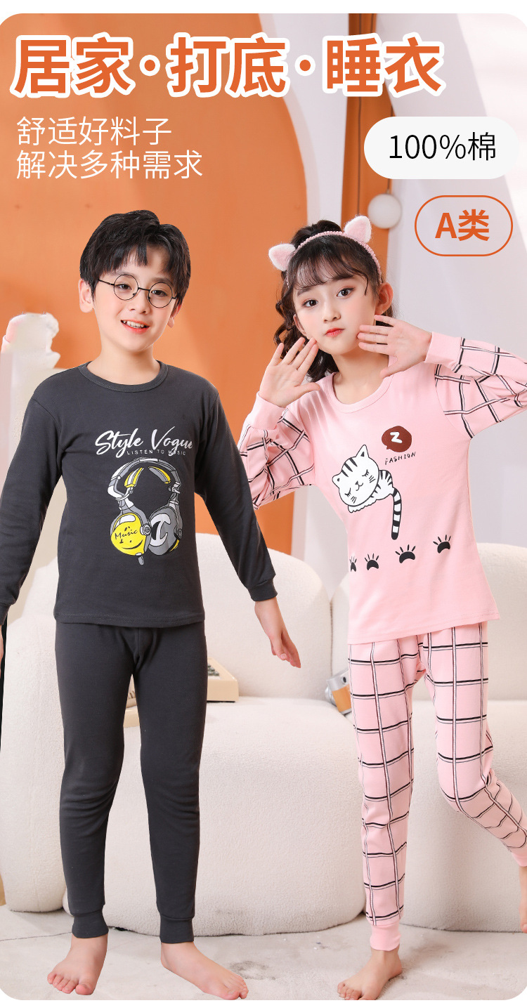 면 속옷 세트 어린이 가을과 겨울 가정복 클래스 A 바디핏 베이스 의류 면 스웨터 어린이 잠옷 면스토어 가기