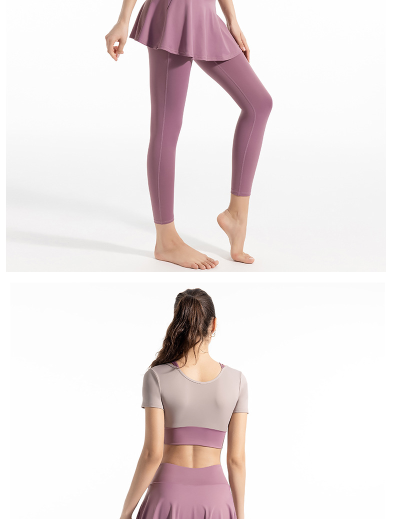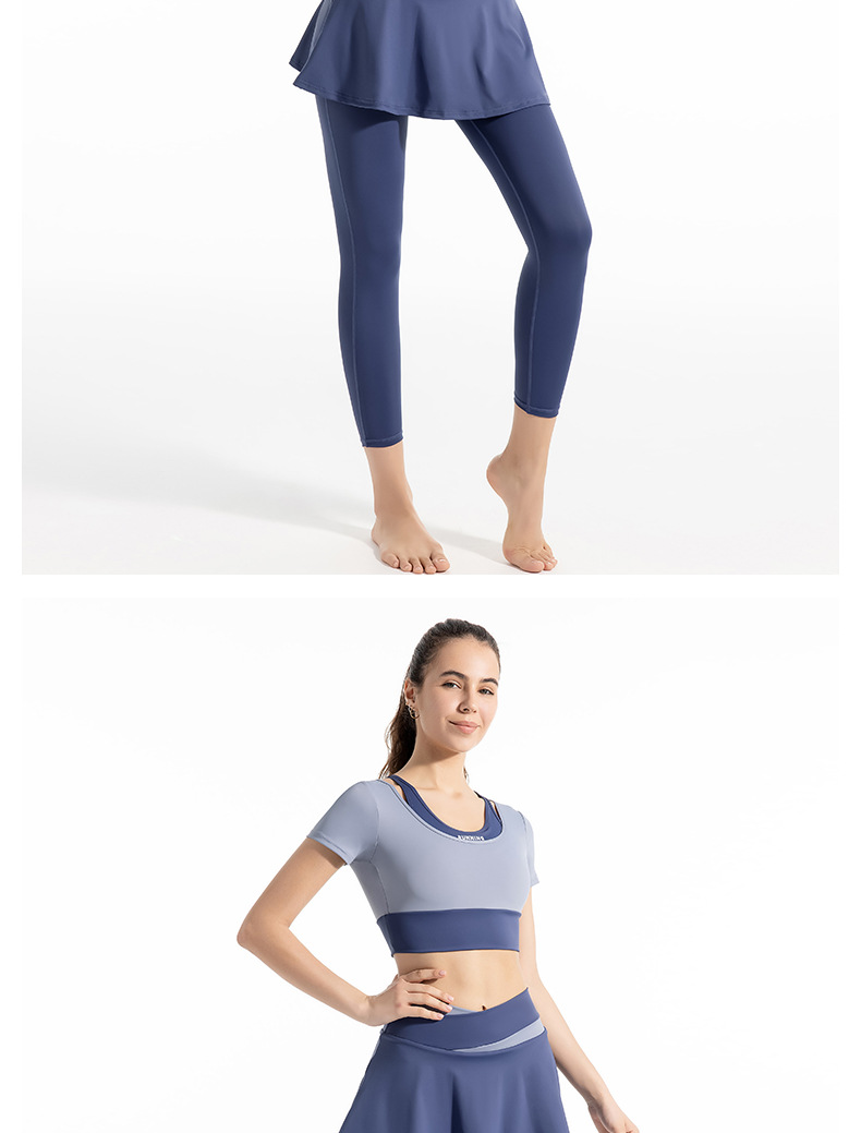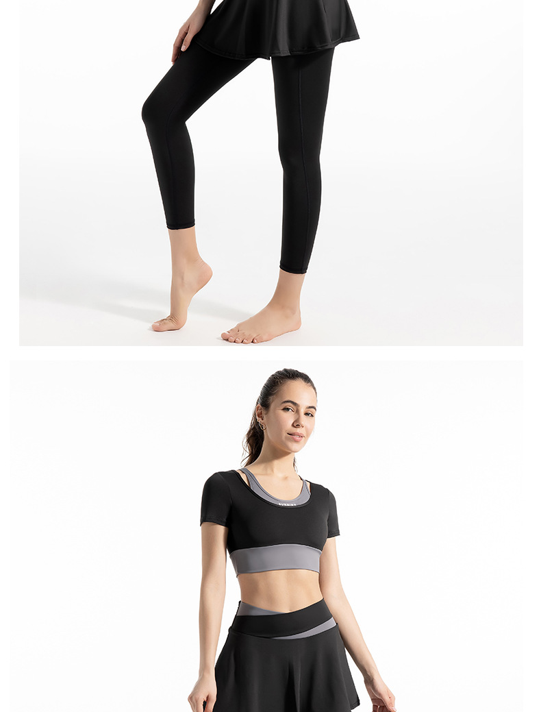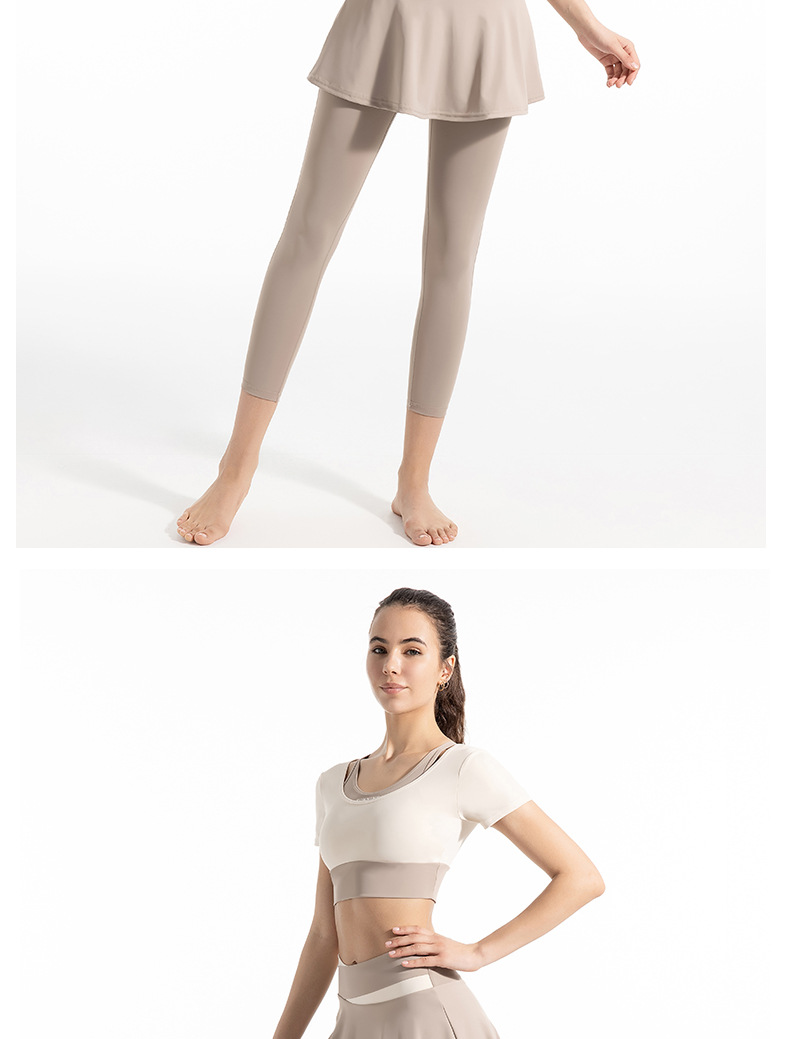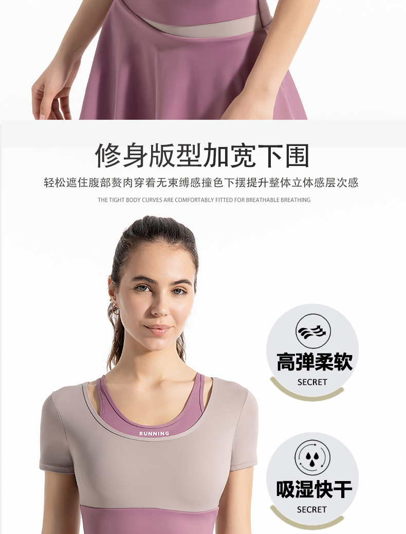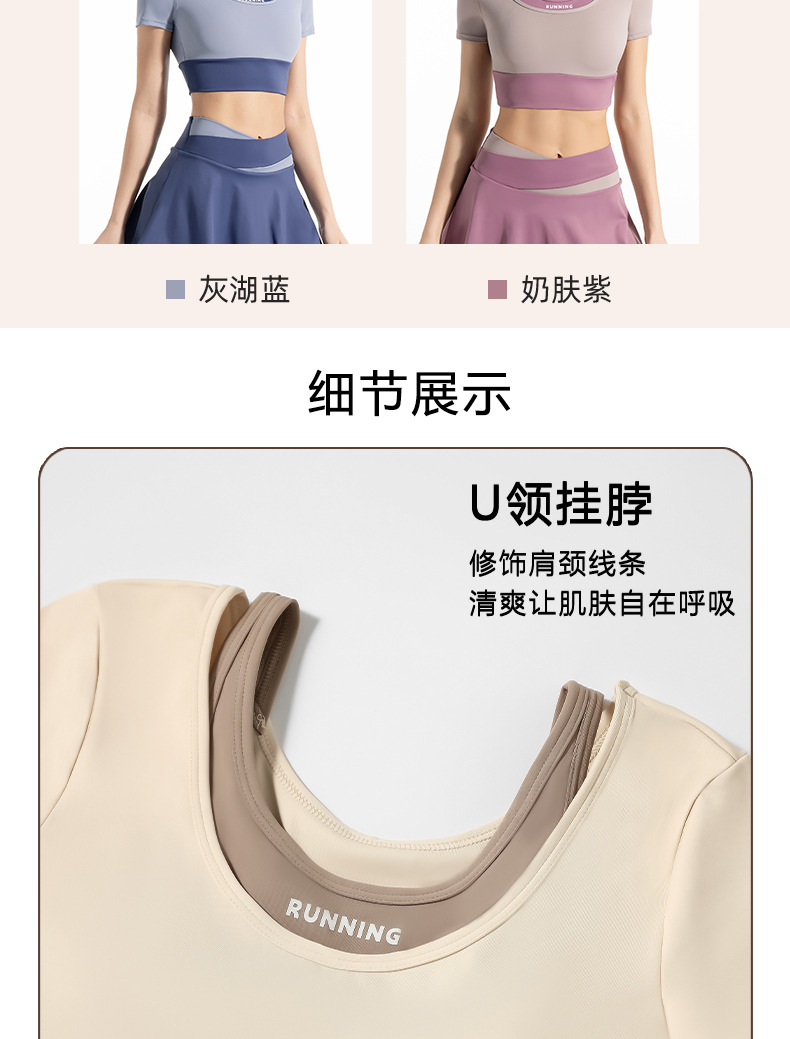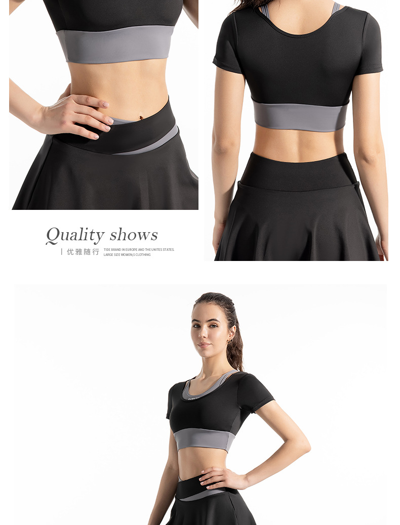 새로운 컬러 매칭 스트랩 아웃도어 웨어 가짜 투피스 스포츠 요가 세트 반팔 착용 프리 브라 고탄력 속건 피트니스 티셔츠스토어 가기