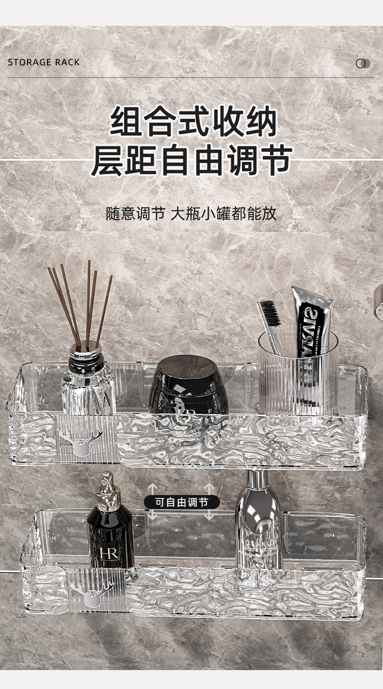 가벼운 럭셔리 물 골판지 스토리지 랙 빙하 패턴 욕실 주방 스토리지 랙 높은 색상 값 두꺼운 벽걸이 마무리 저장 상자