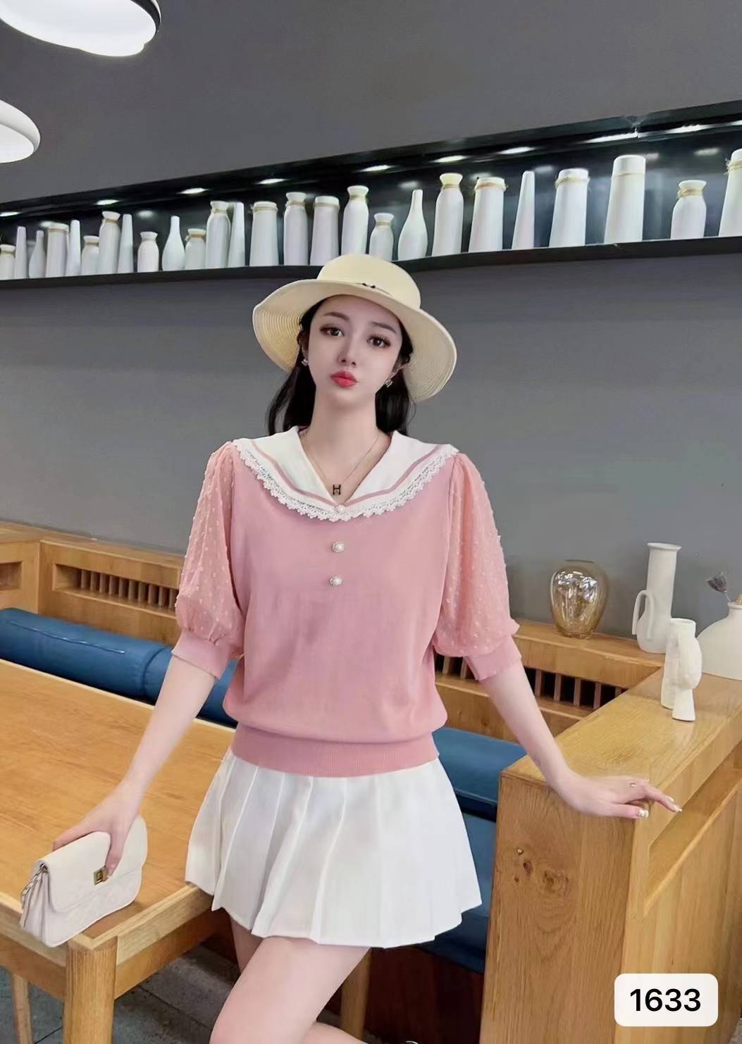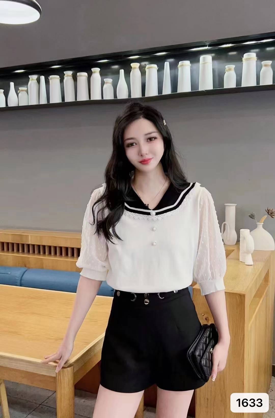 2023 여름 신상품 한국 브이넥 우아한 씬 아이스 실크 니트 셔츠 달콤한 나이 감소 쉬폰 반팔 탑스토어 가기