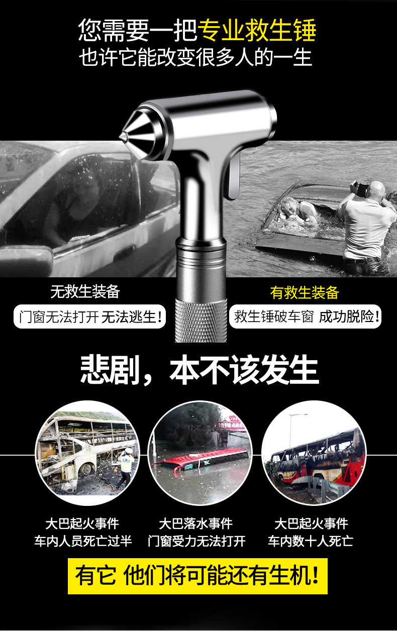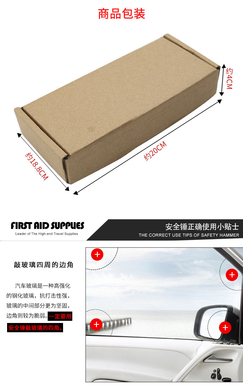 【产品特点】:宁可百年不用,不可一日不备,为您的安全保驾护航产品虽小,威力不小,轻松破窗,易于存放,越简单,越实用!危急时刻一个安全锤=一个救生的希望!