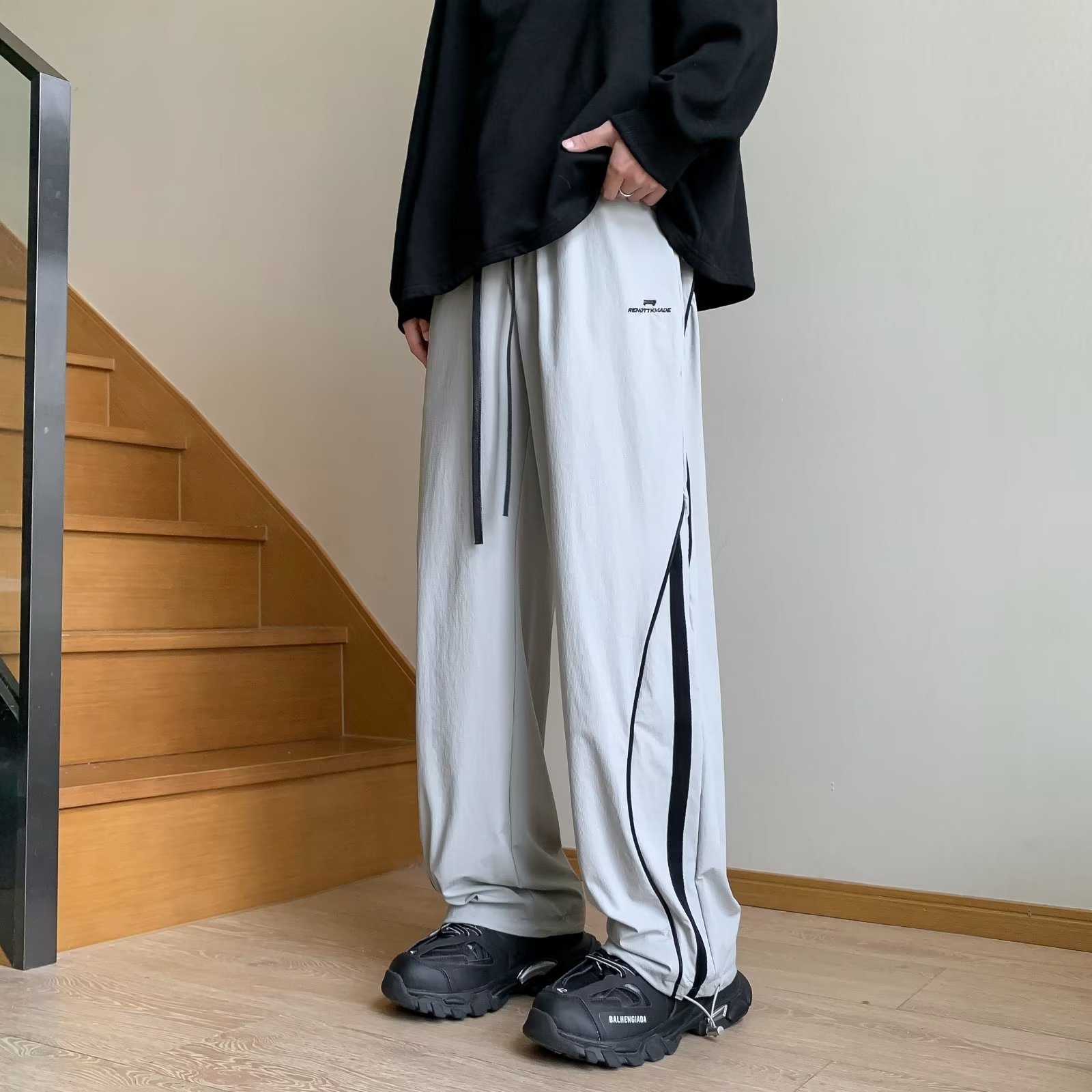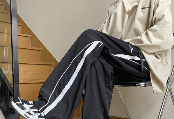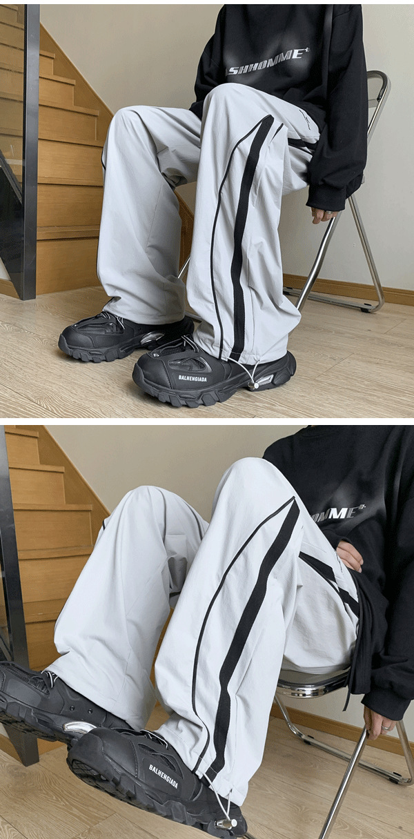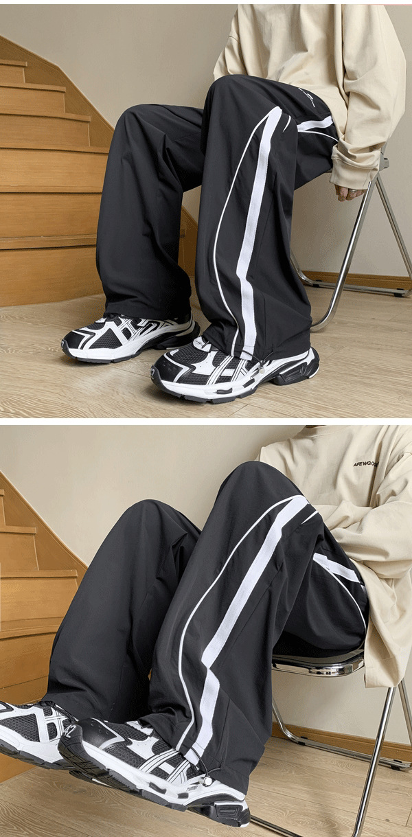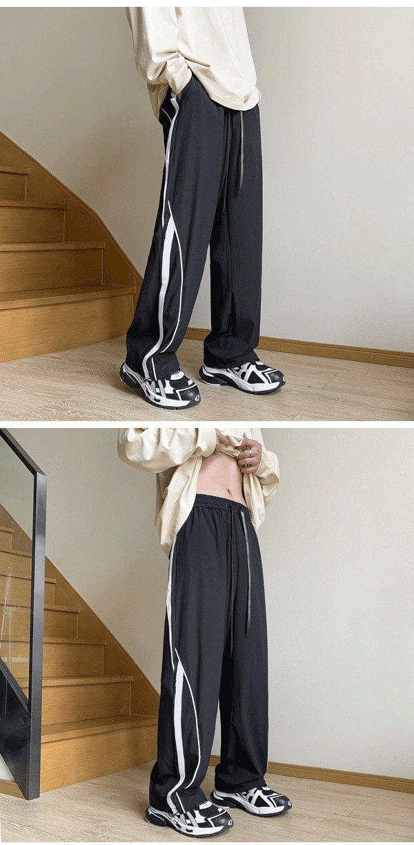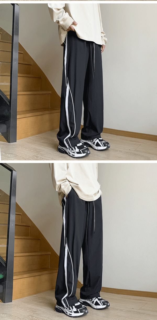남성 캐주얼 팬츠 봄 가을 신상 하이 스트리트 인스 트렌드 브랜드 캐주얼 팬츠 청소년 패션 배색 드로스트링 팬츠스토어 가기