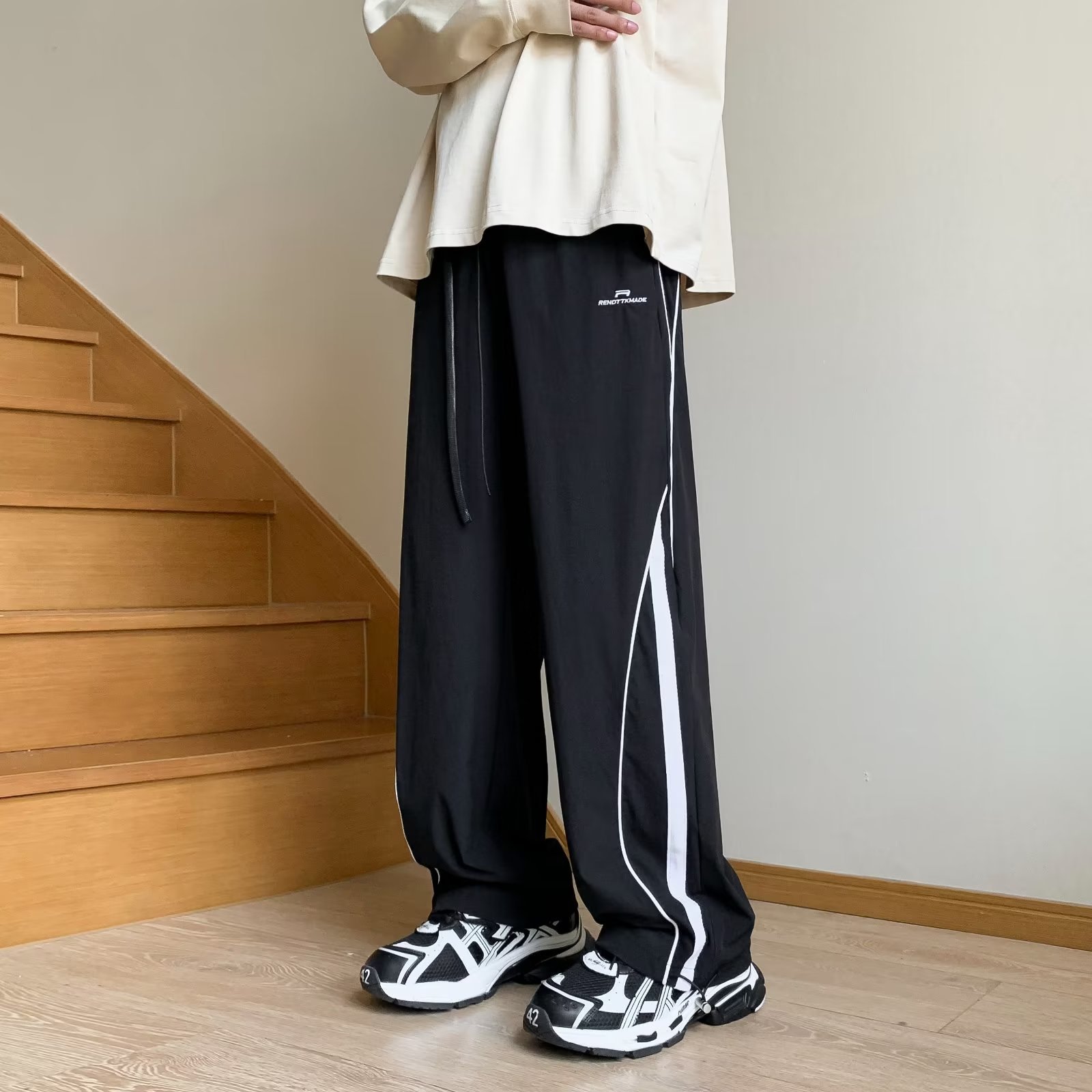 남성 캐주얼 팬츠 봄 가을 신상 하이 스트리트 인스 트렌드 브랜드 캐주얼 팬츠 청소년 패션 배색 드로스트링 팬츠