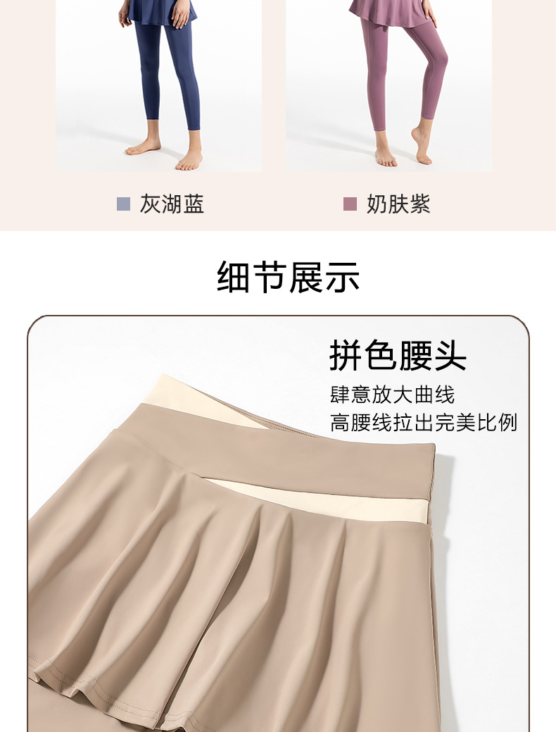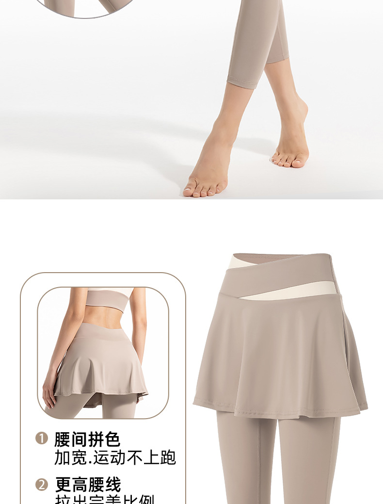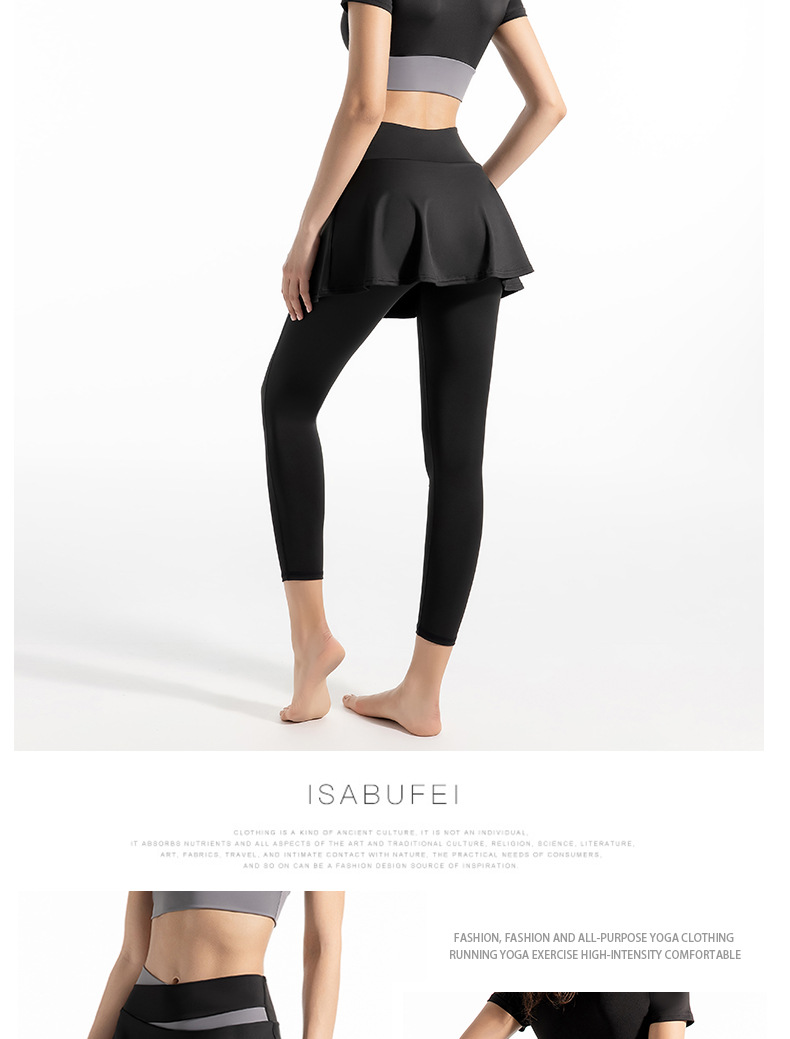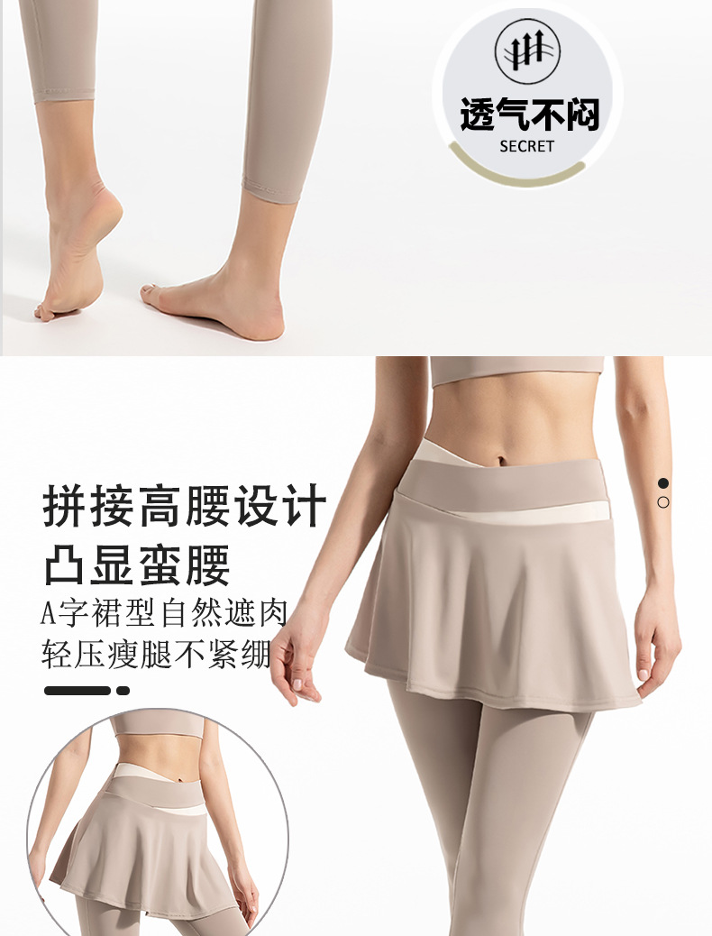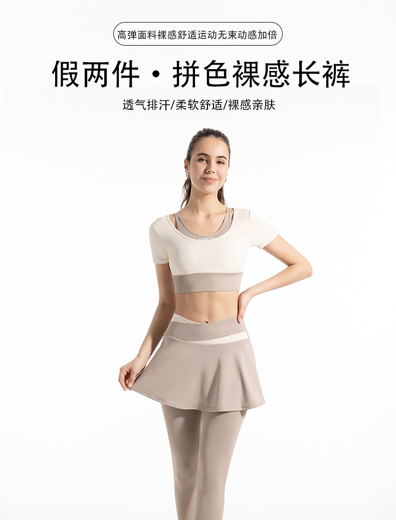 컬러 매칭 하이 웨이스트 힙 커버 가짜 투피스 요가 세트 고탄력 속건 알몸 타이트 러닝 피트니스 댄스 스포츠 퀼로트스토어 가기