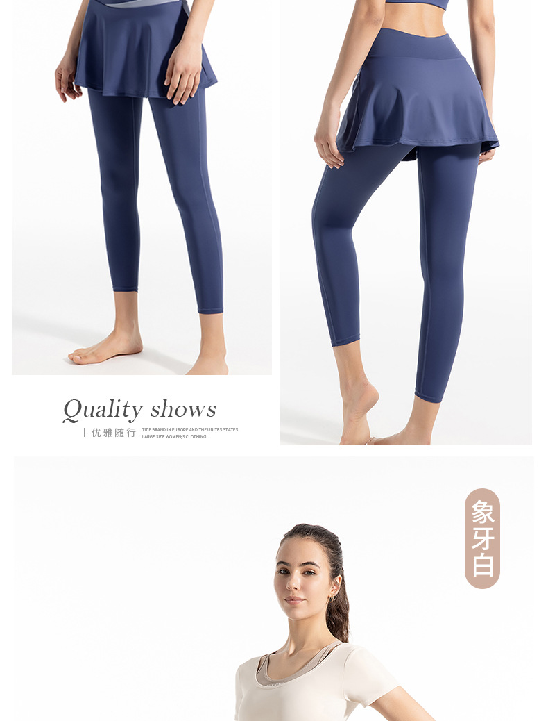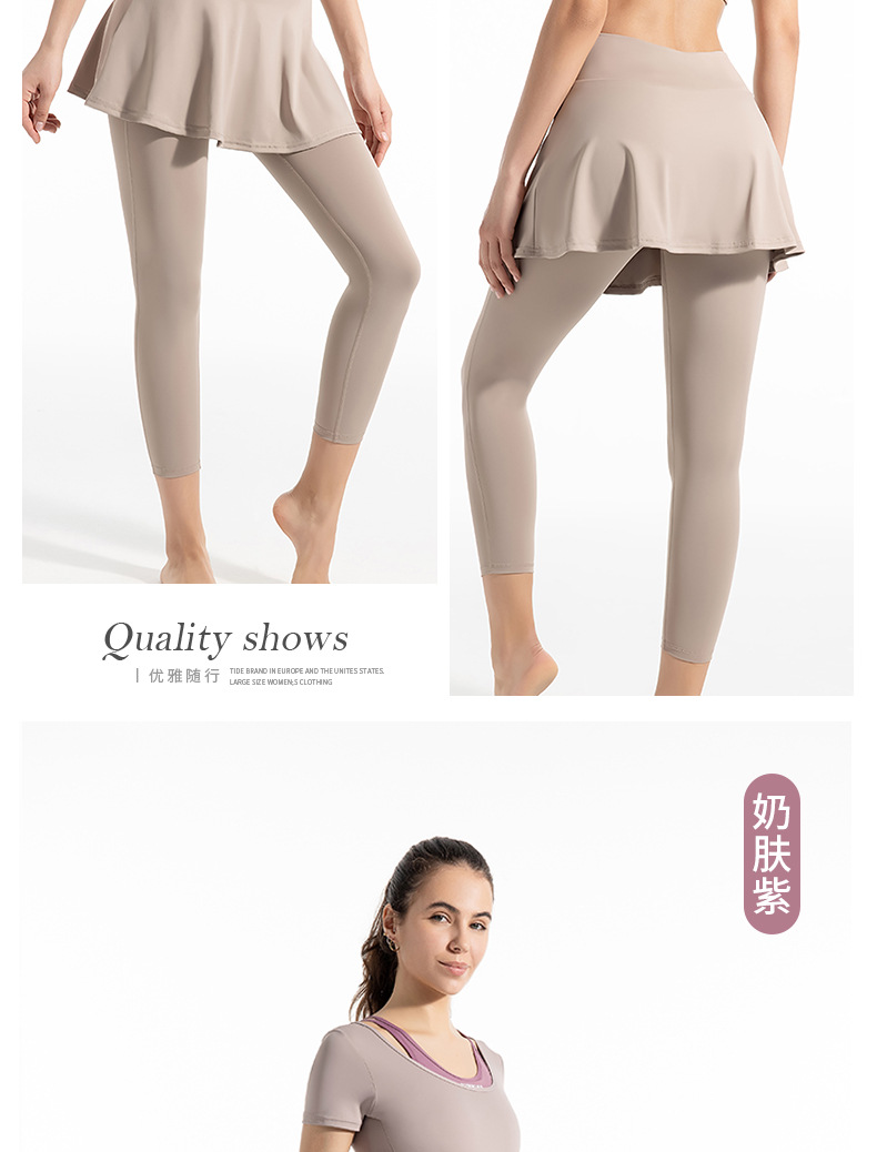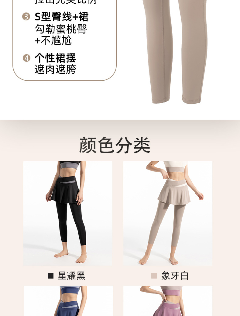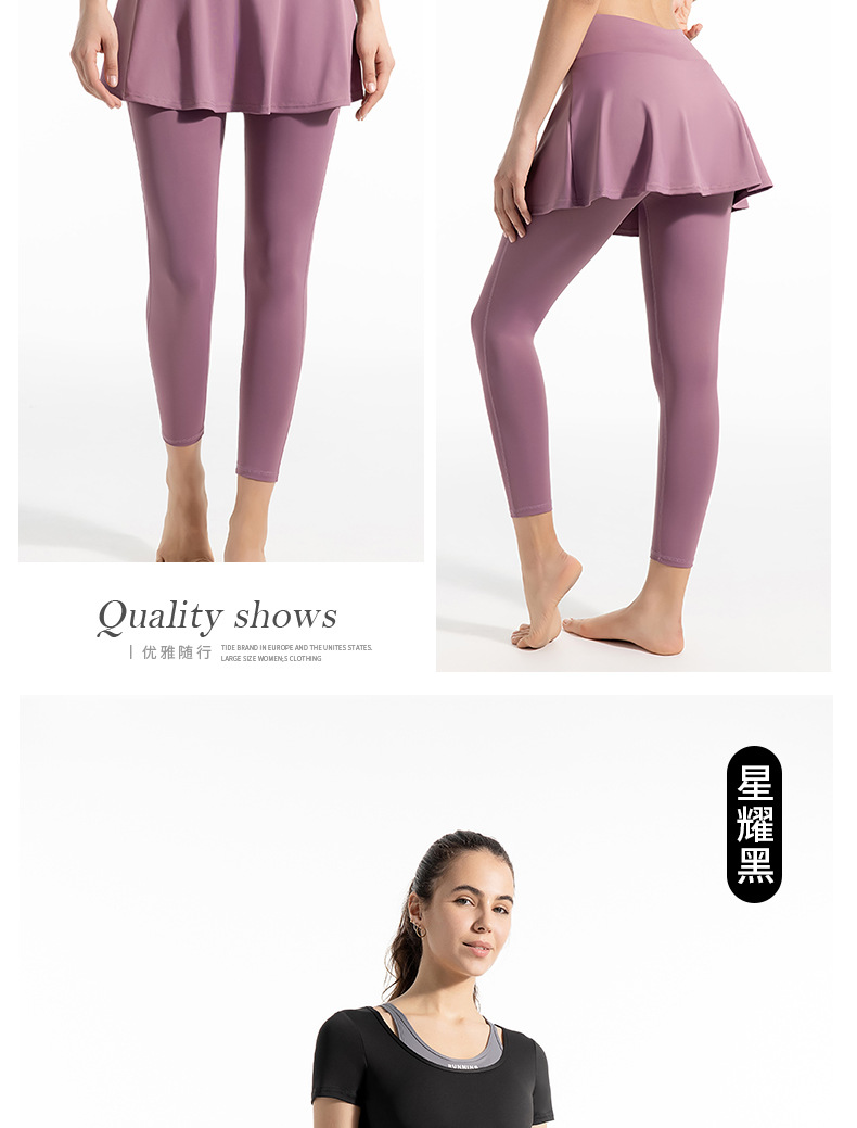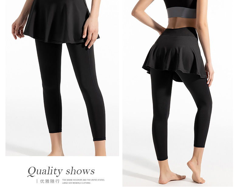 컬러 매칭 하이 웨이스트 힙 커버 가짜 투피스 요가 세트 고탄력 속건 알몸 타이트 러닝 피트니스 댄스 스포츠 퀼로트스토어 가기