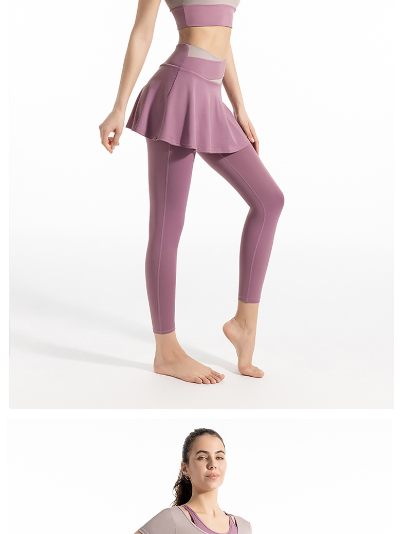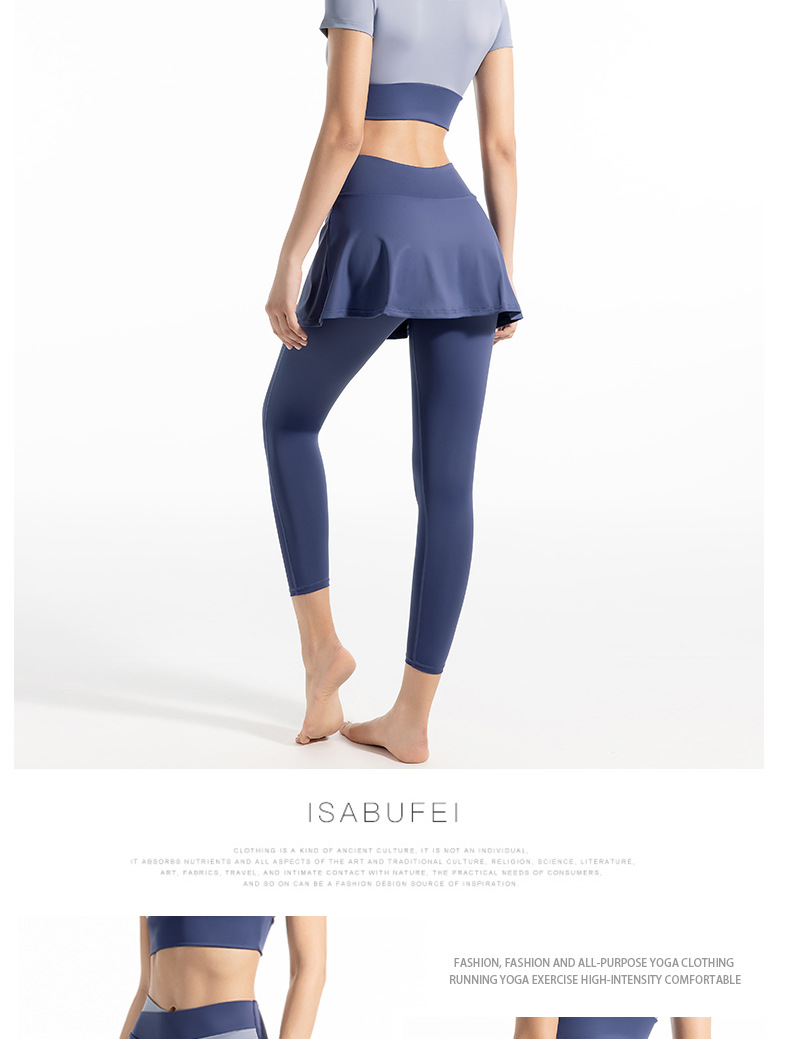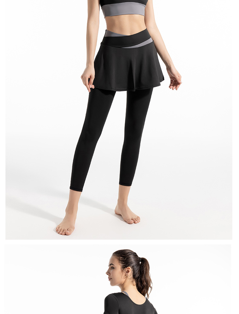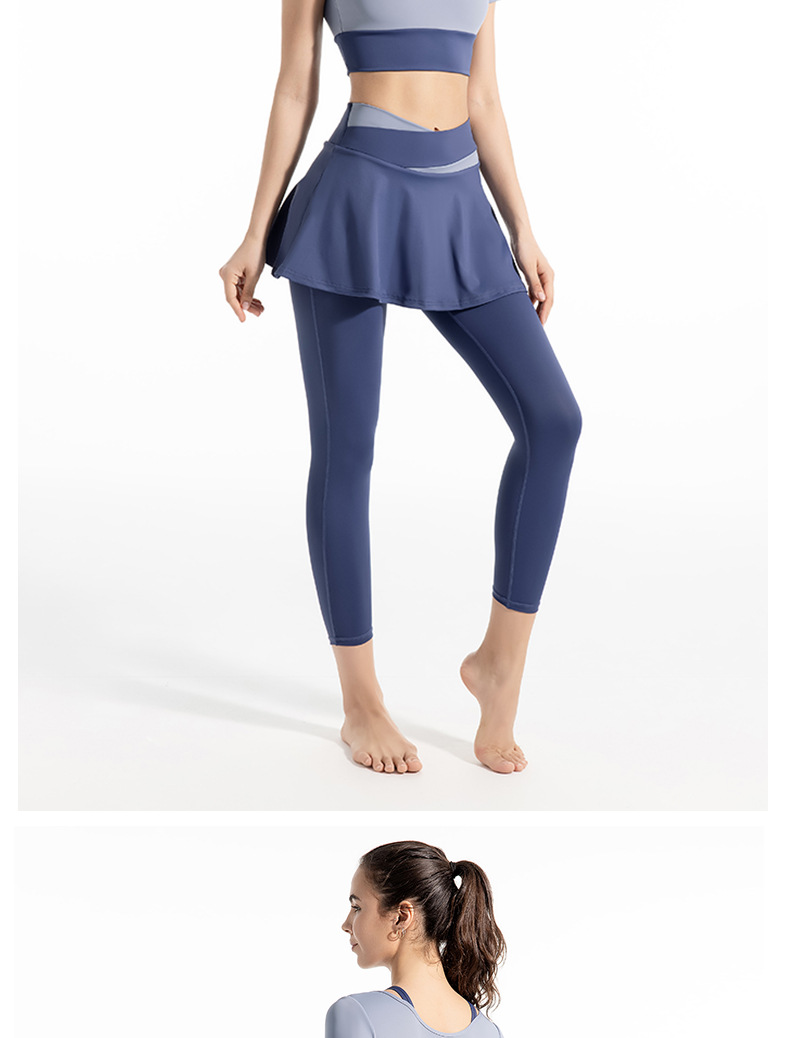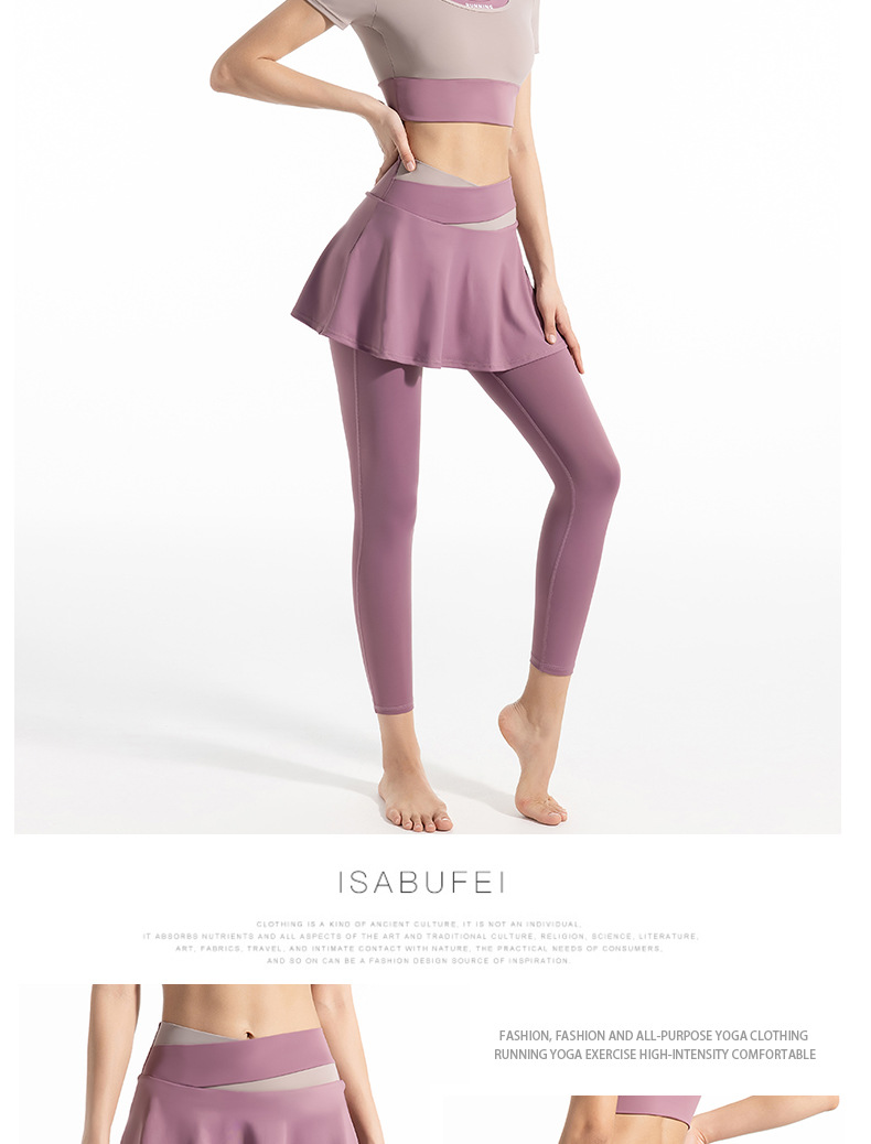 컬러 매칭 하이 웨이스트 힙 커버 가짜 투피스 요가 세트 고탄력 속건 알몸 타이트 러닝 피트니스 댄스 스포츠 퀼로트