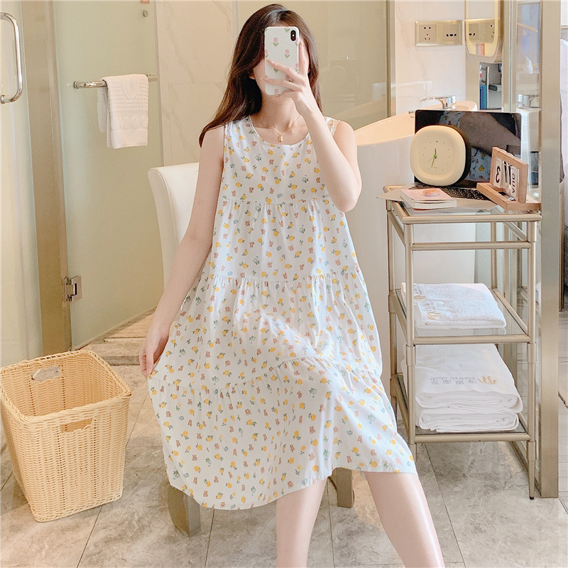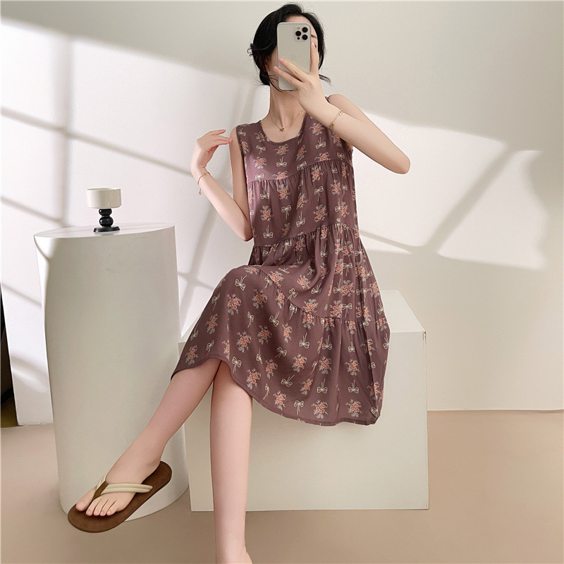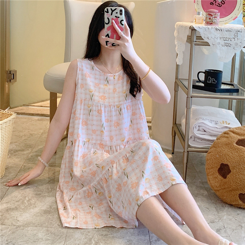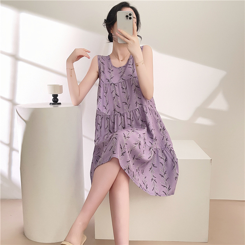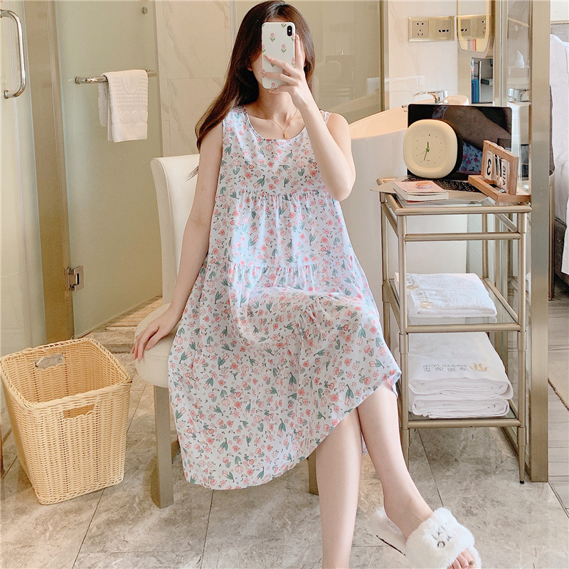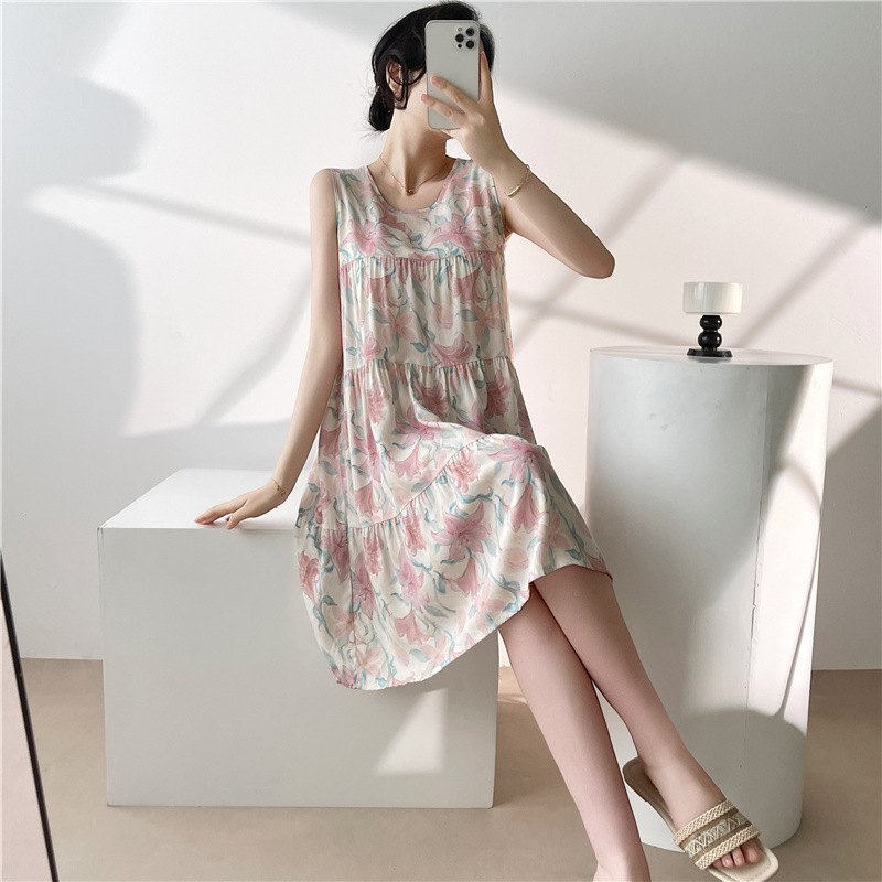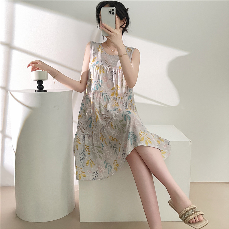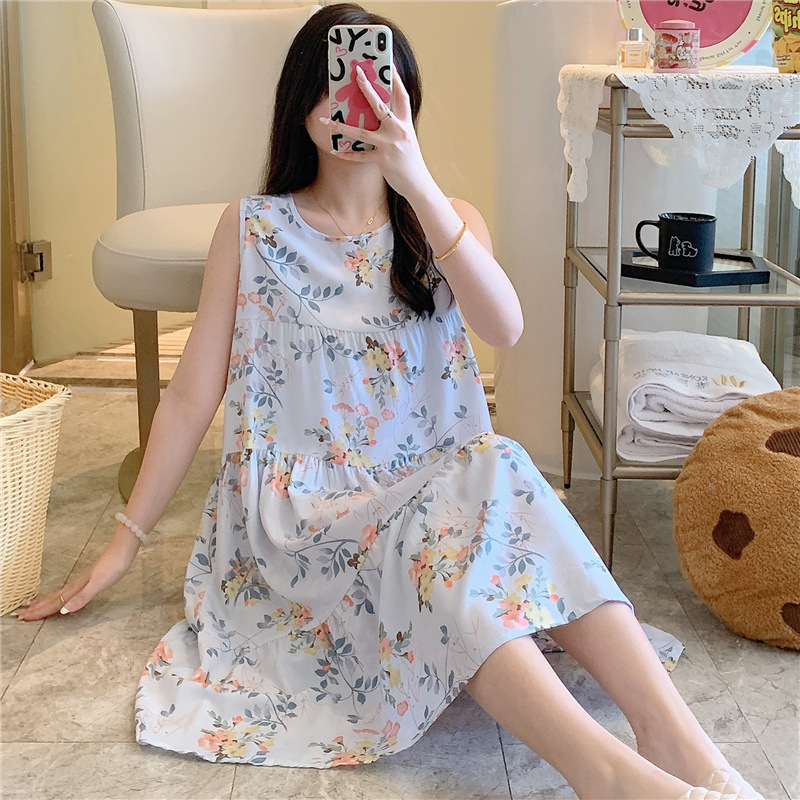 여성용 면 실크 잠옷 여름 얇은 스타일 인터넷 인기 빅사이즈 프린트 잠옷 2026년 신상 민소매 홈웨어 도매스토어 가기