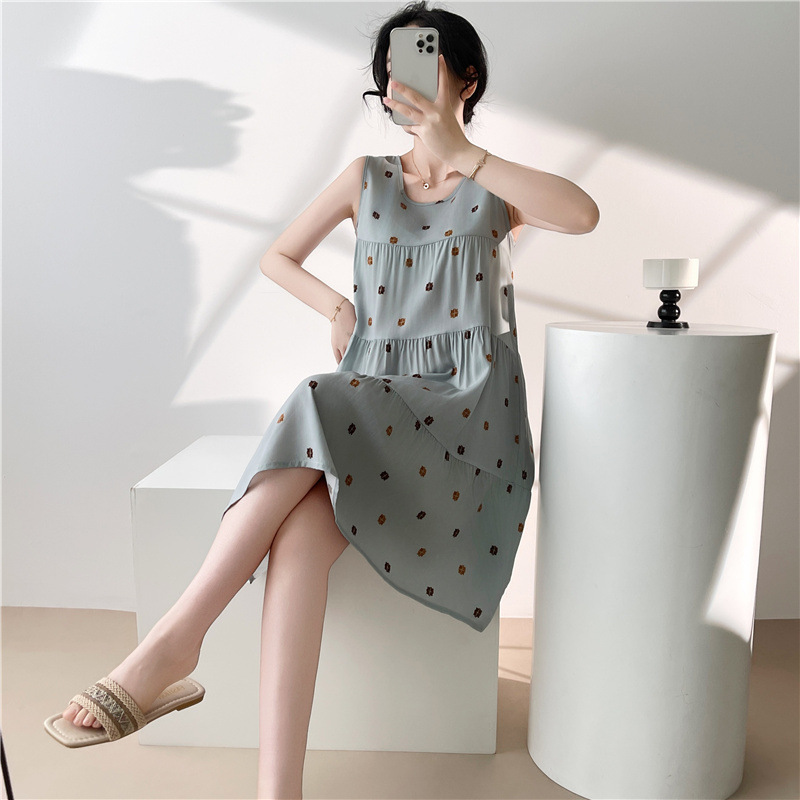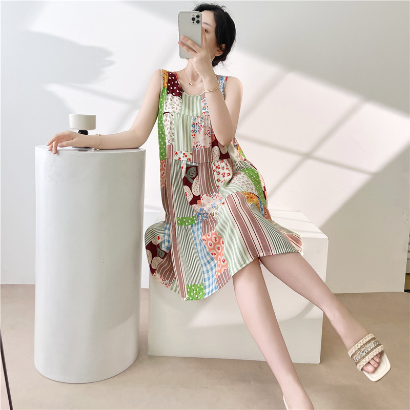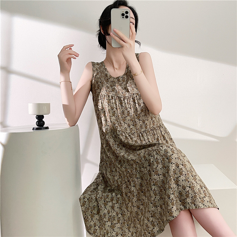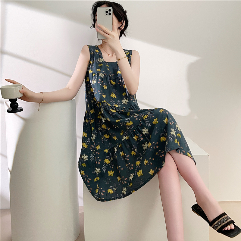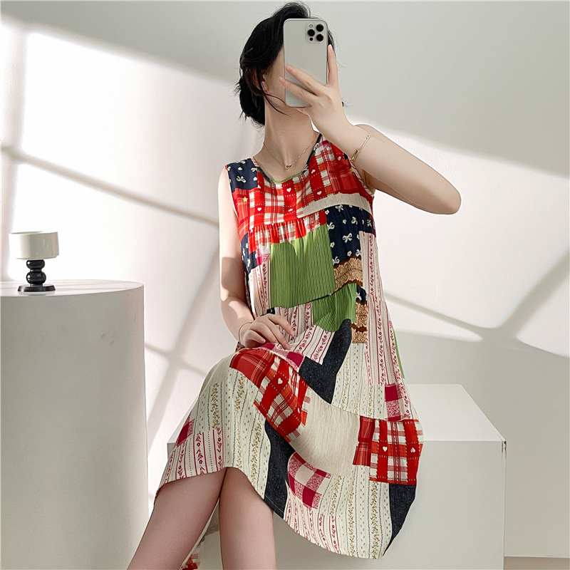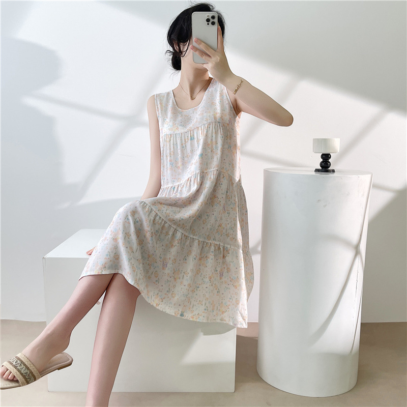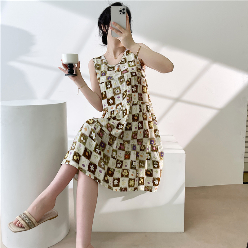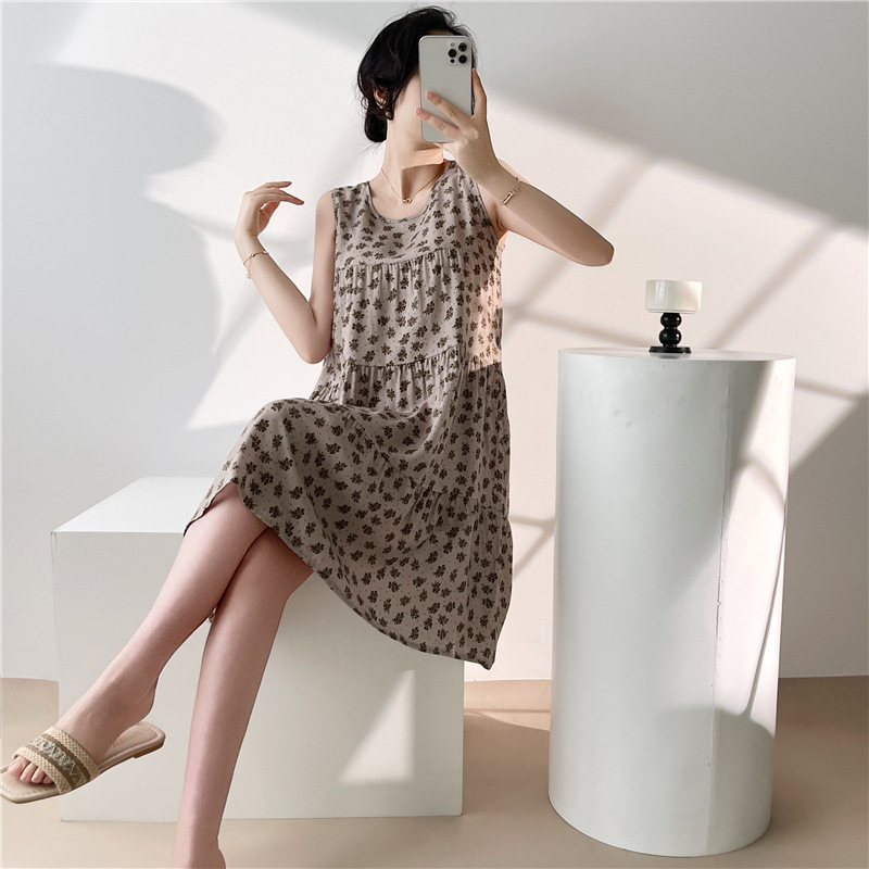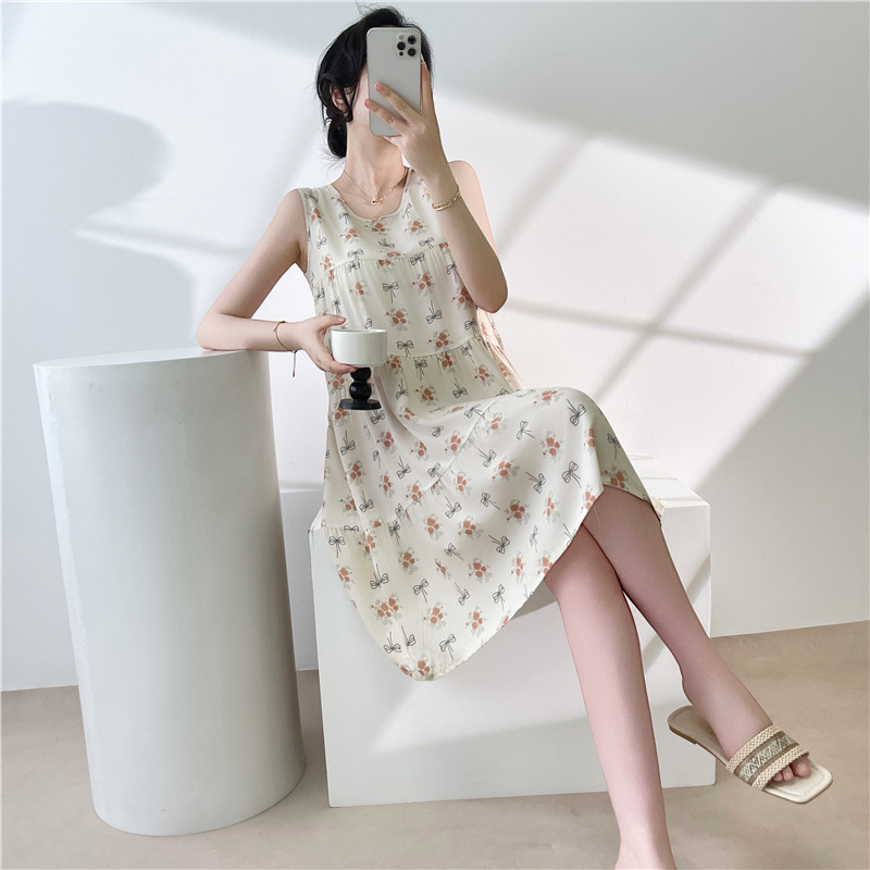 여성용 면 실크 잠옷 여름 얇은 스타일 인터넷 인기 빅사이즈 프린트 잠옷 2026년 신상 민소매 홈웨어 도매스토어 가기