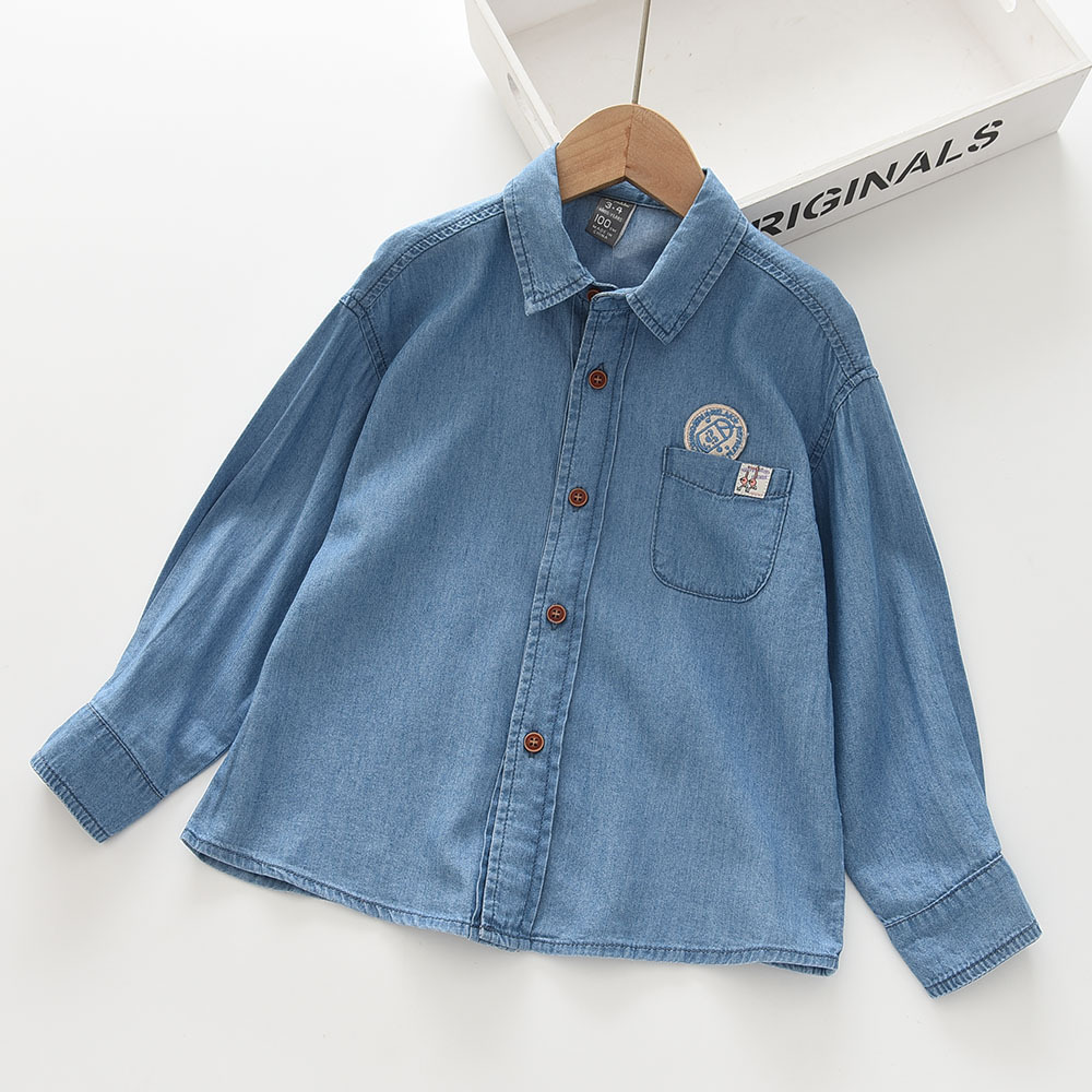 2025 가을 신상품 패치 라벨 포켓 남아용 라펠 긴팔 순면 워싱 데님 셔츠 0726-10