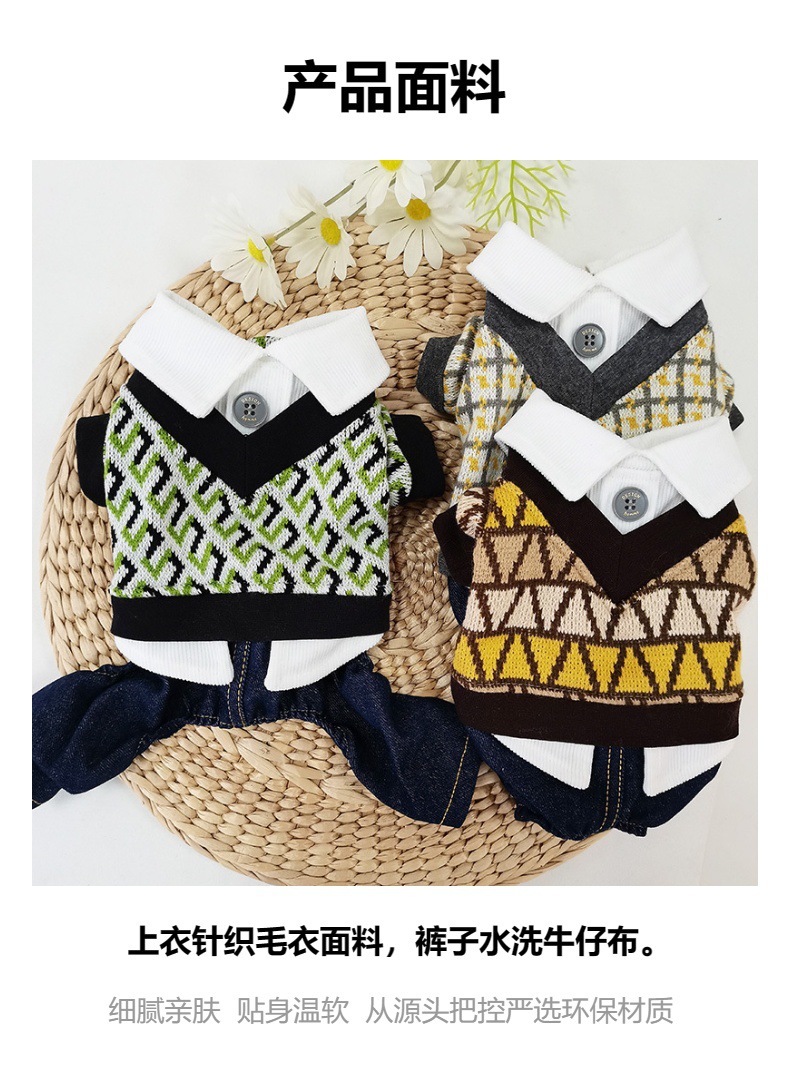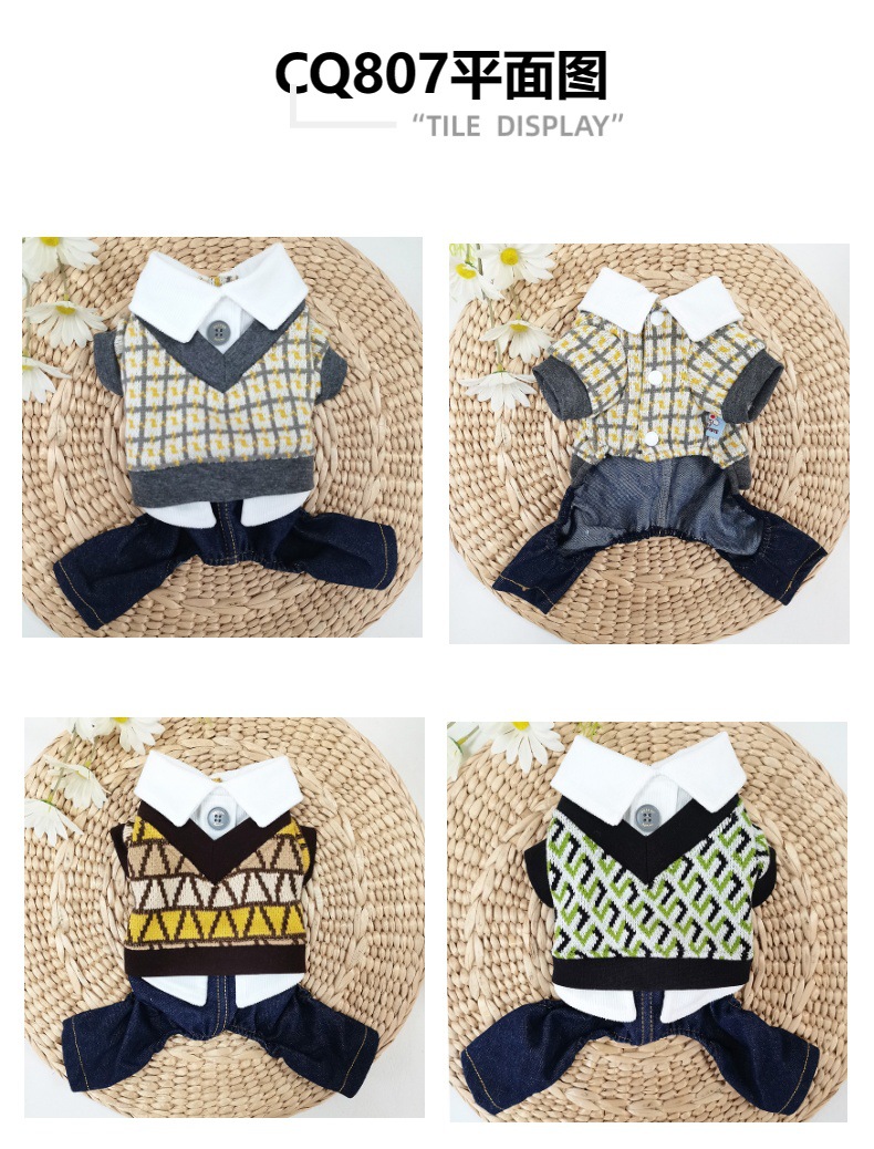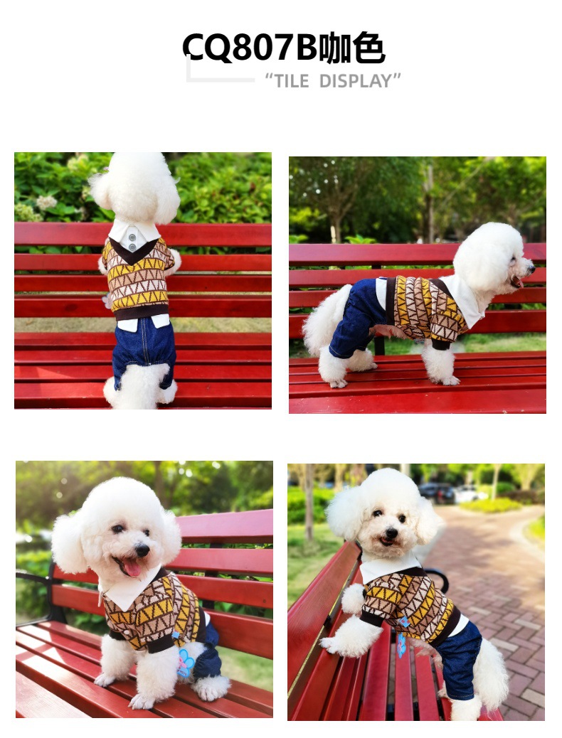 CQ807 울 캐주얼 가짜 투피스 세트 가을 바지 싱글 레이어 [귀여운 슈퍼 귀여운 애완동물 의류 강아지 옷]]