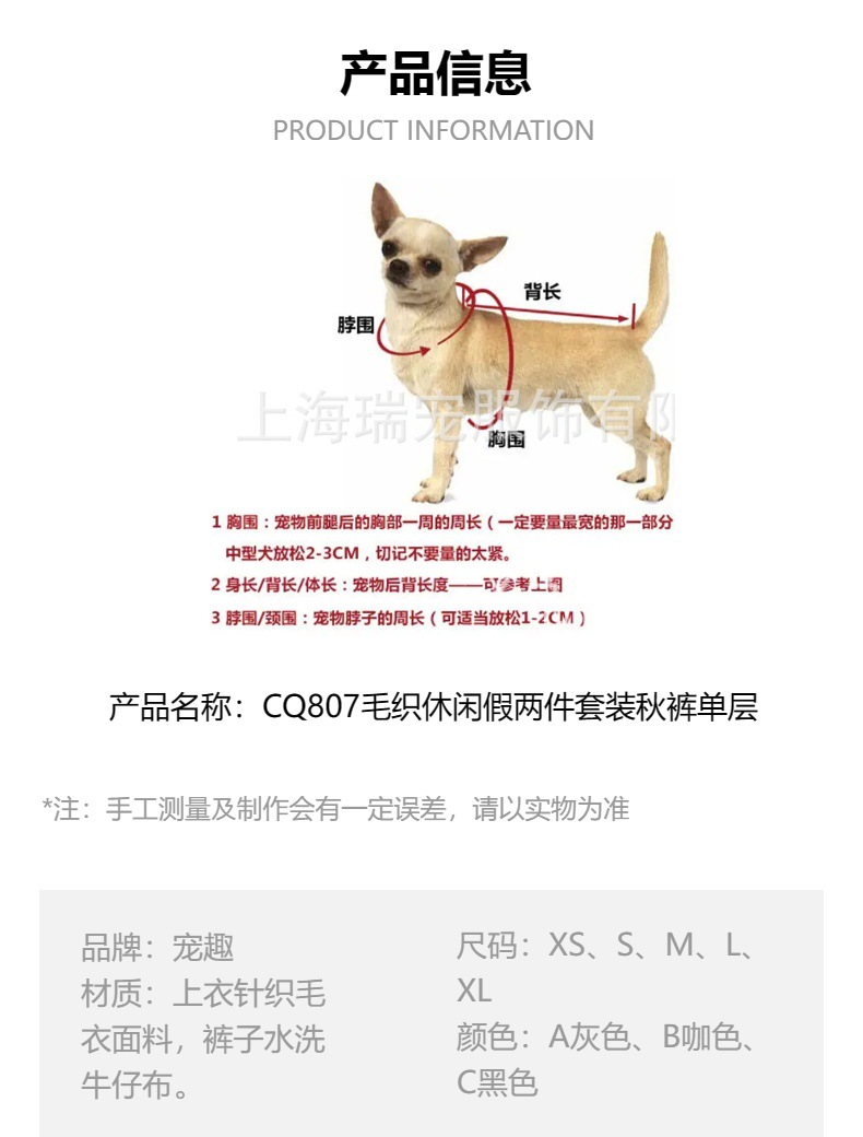CQ807 울 캐주얼 가짜 투피스 세트 가을 바지 싱글 레이어 [귀여운 슈퍼 귀여운 애완동물 의류 강아지 옷]]스토어 가기